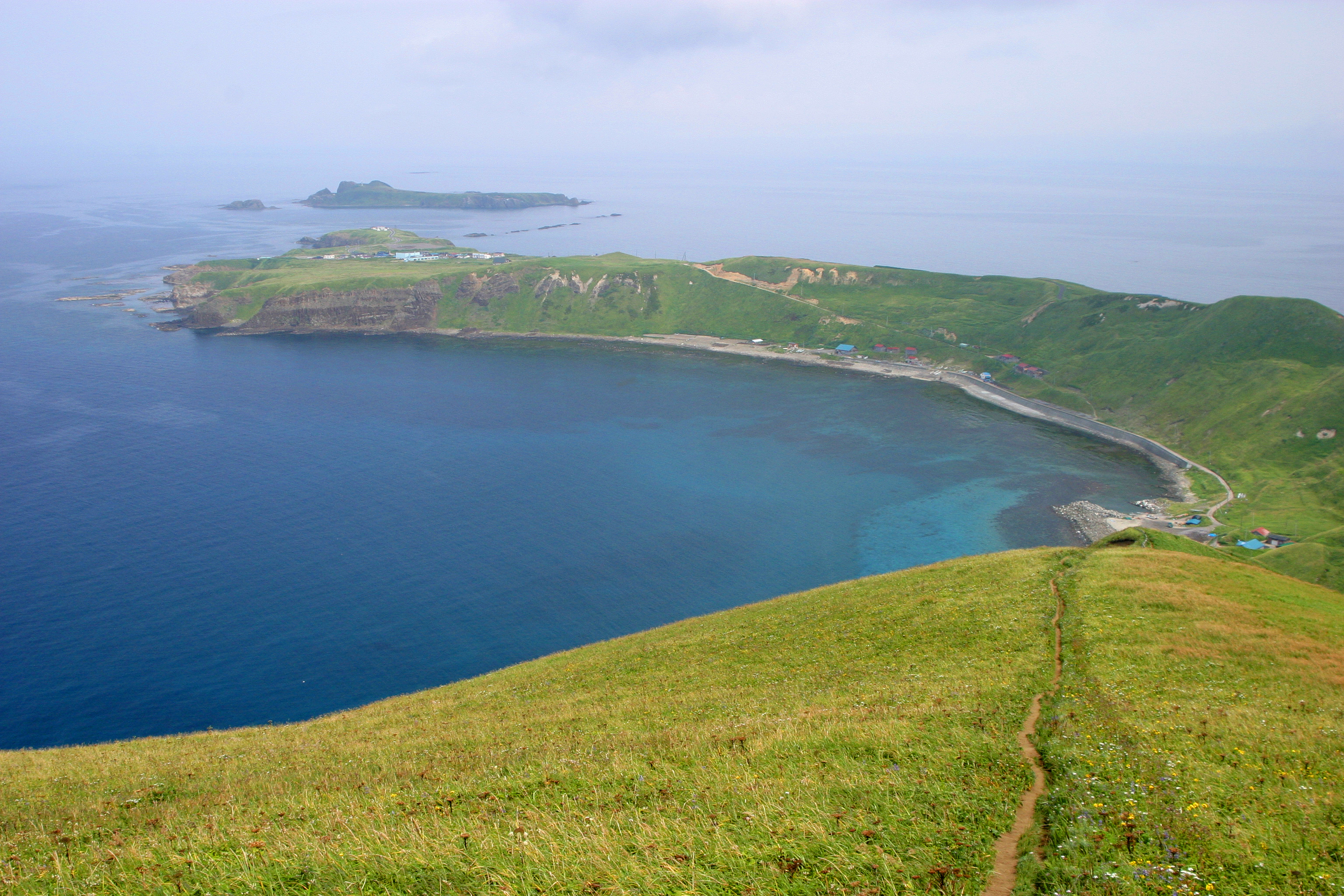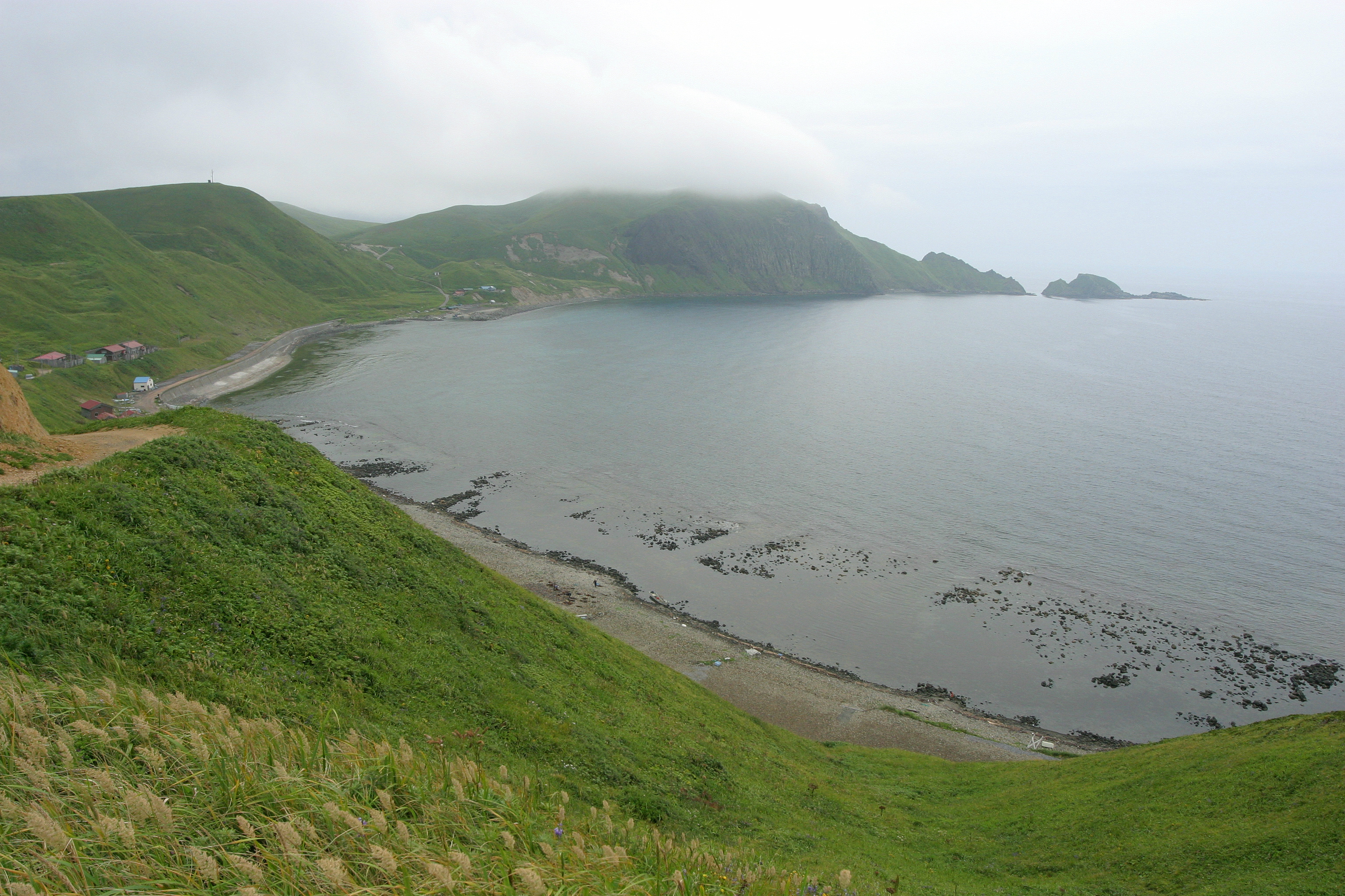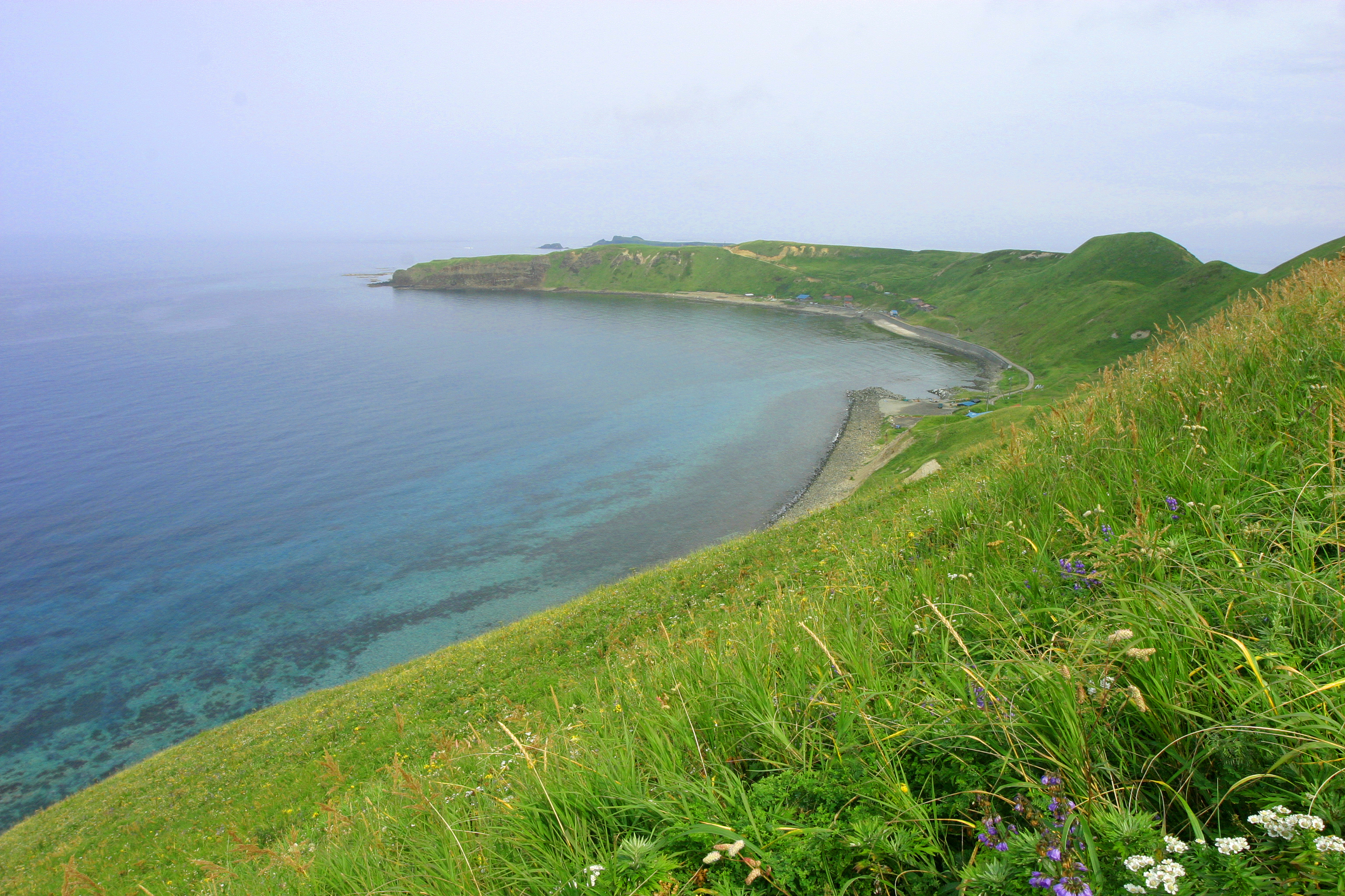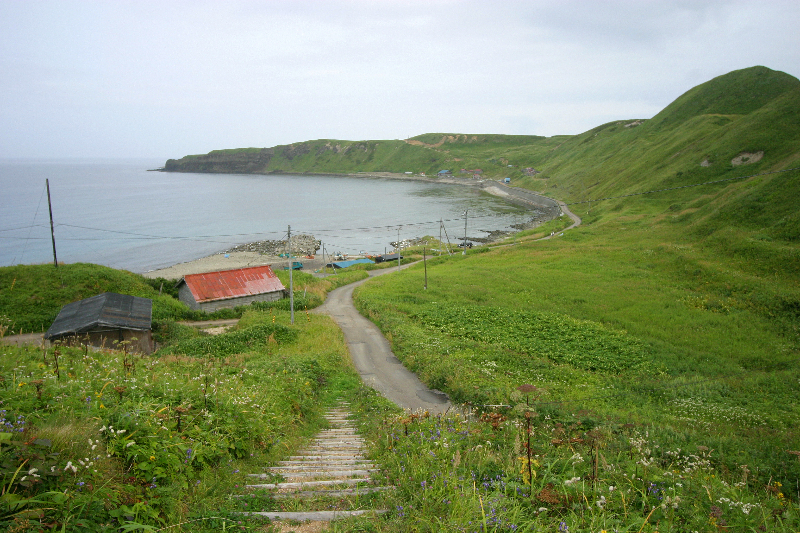 小高い丘の上から撮影した鮑古丹の集落です。