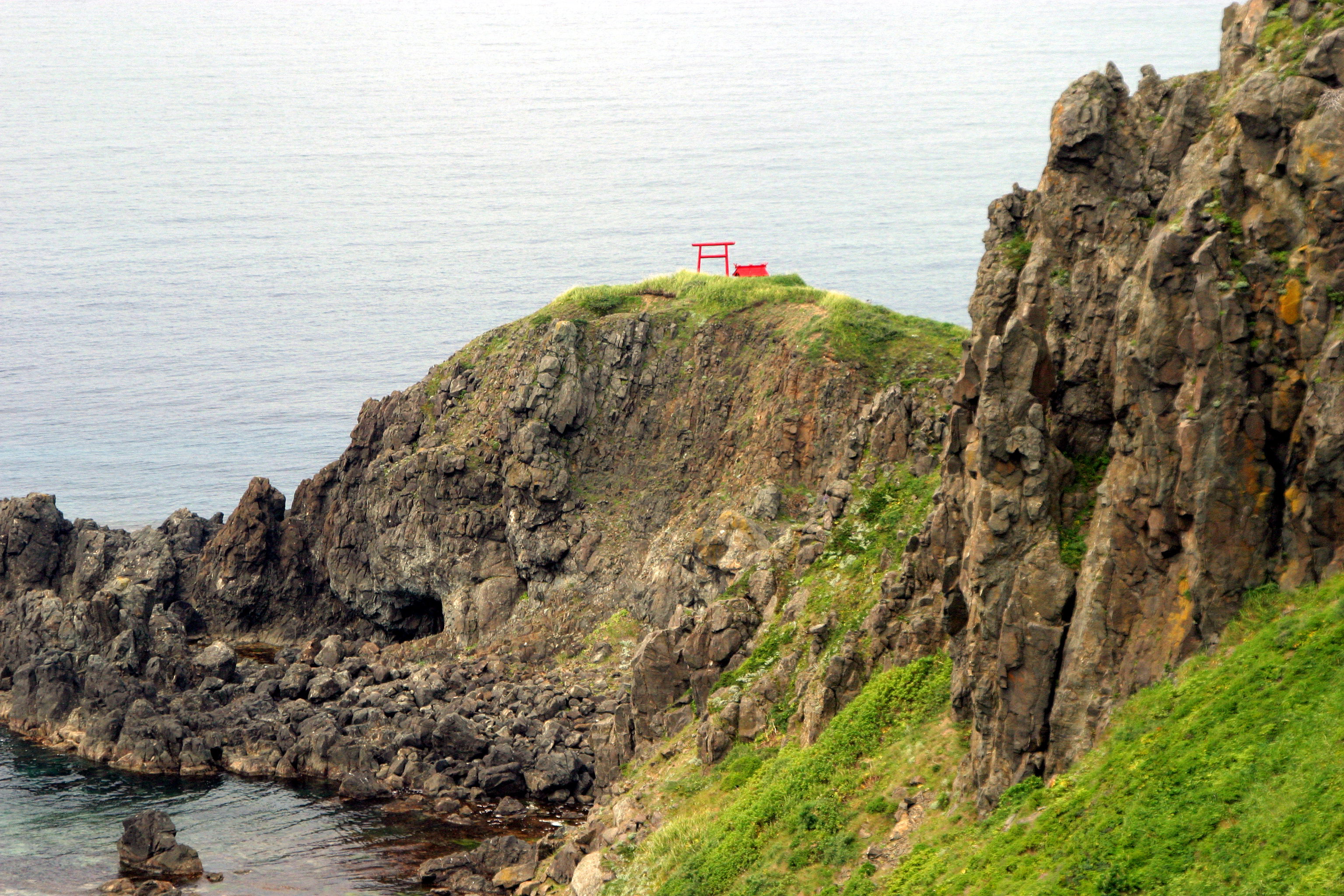 突き出した岩の岬の先端に鳥居が立っています。すごいところに鳥居を立てたなぁと感心してしまいます。