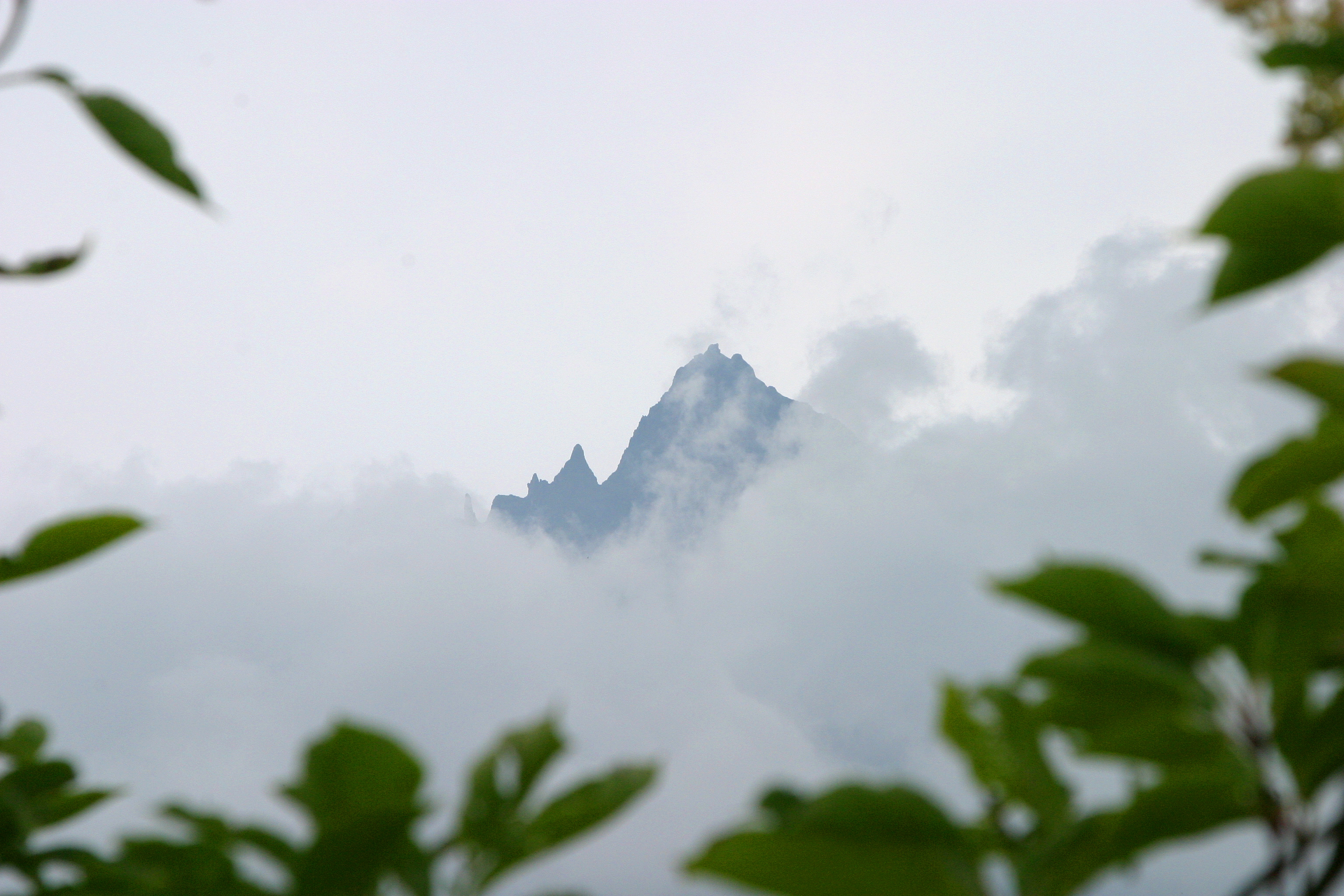 雲海の中から山の頂がちょっぴり顔を出しました。