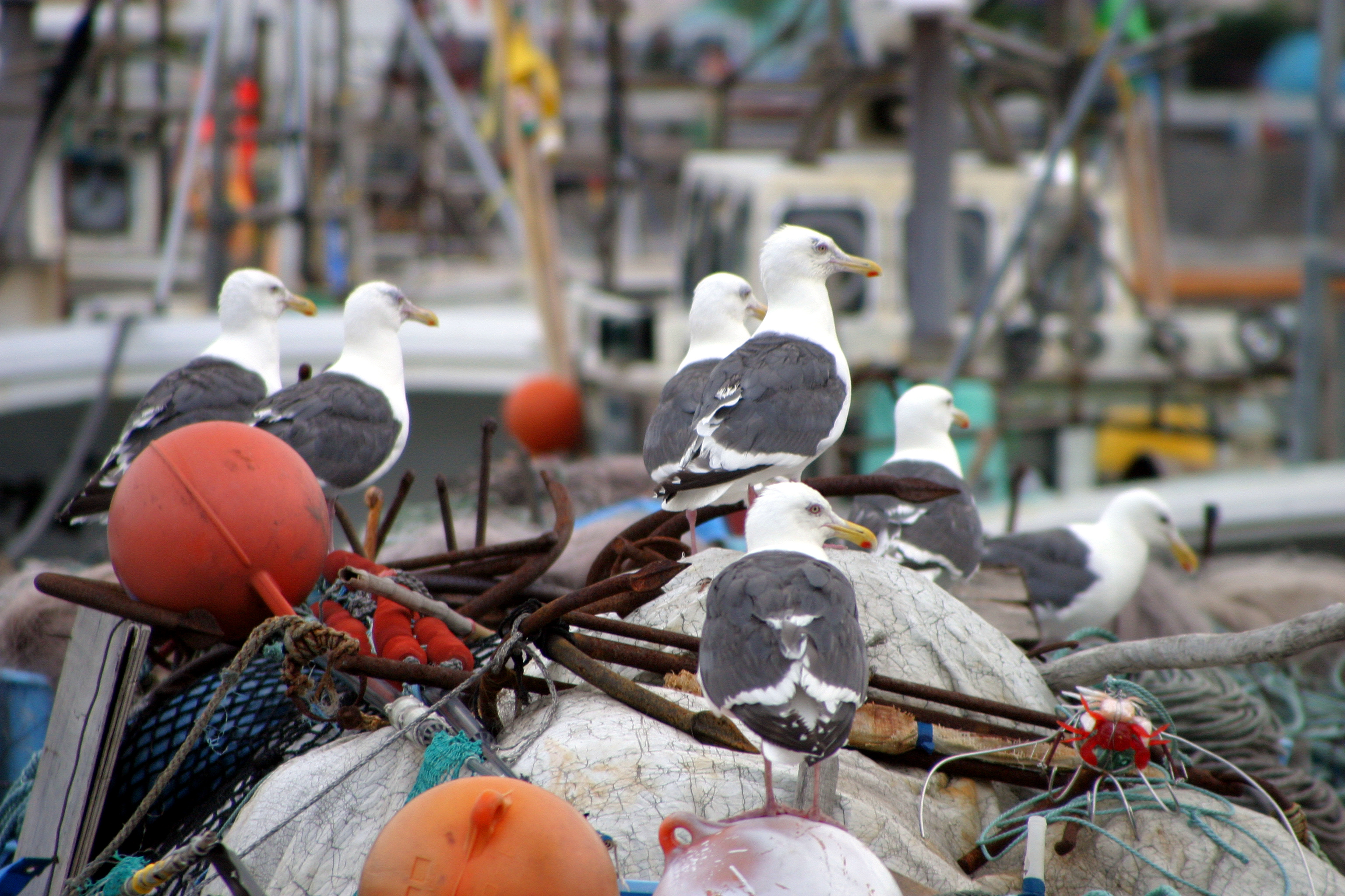 港にはカモメがたくさんいて休んでいます。