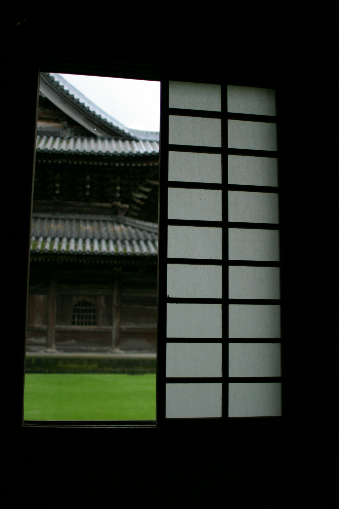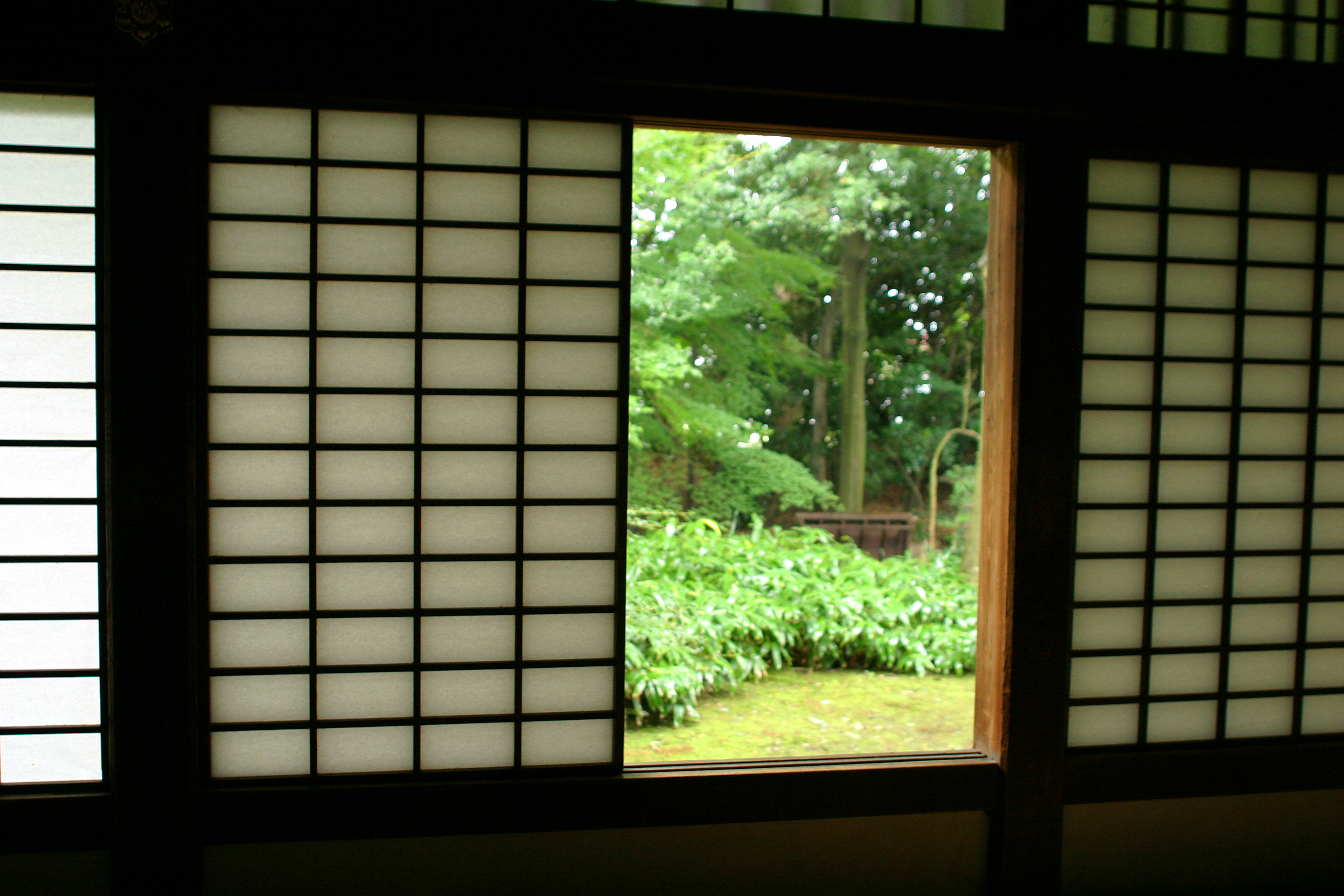 お寺の障子戸から眺めた中庭。