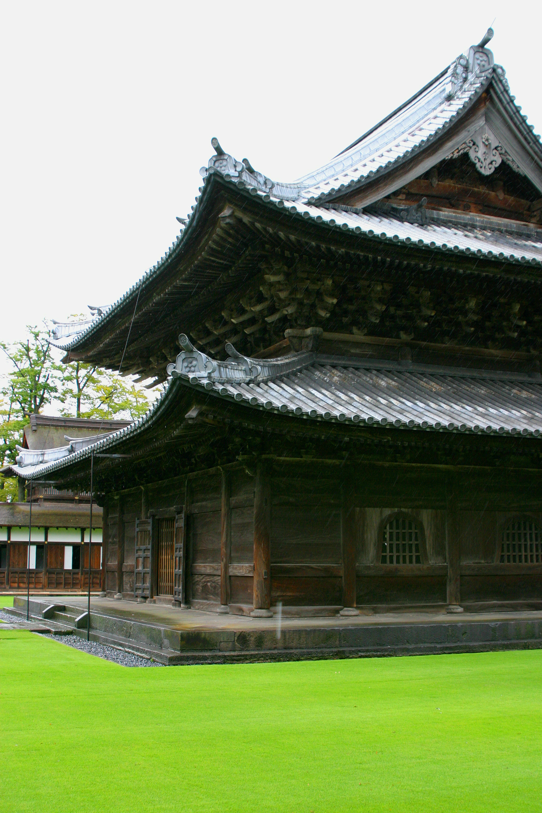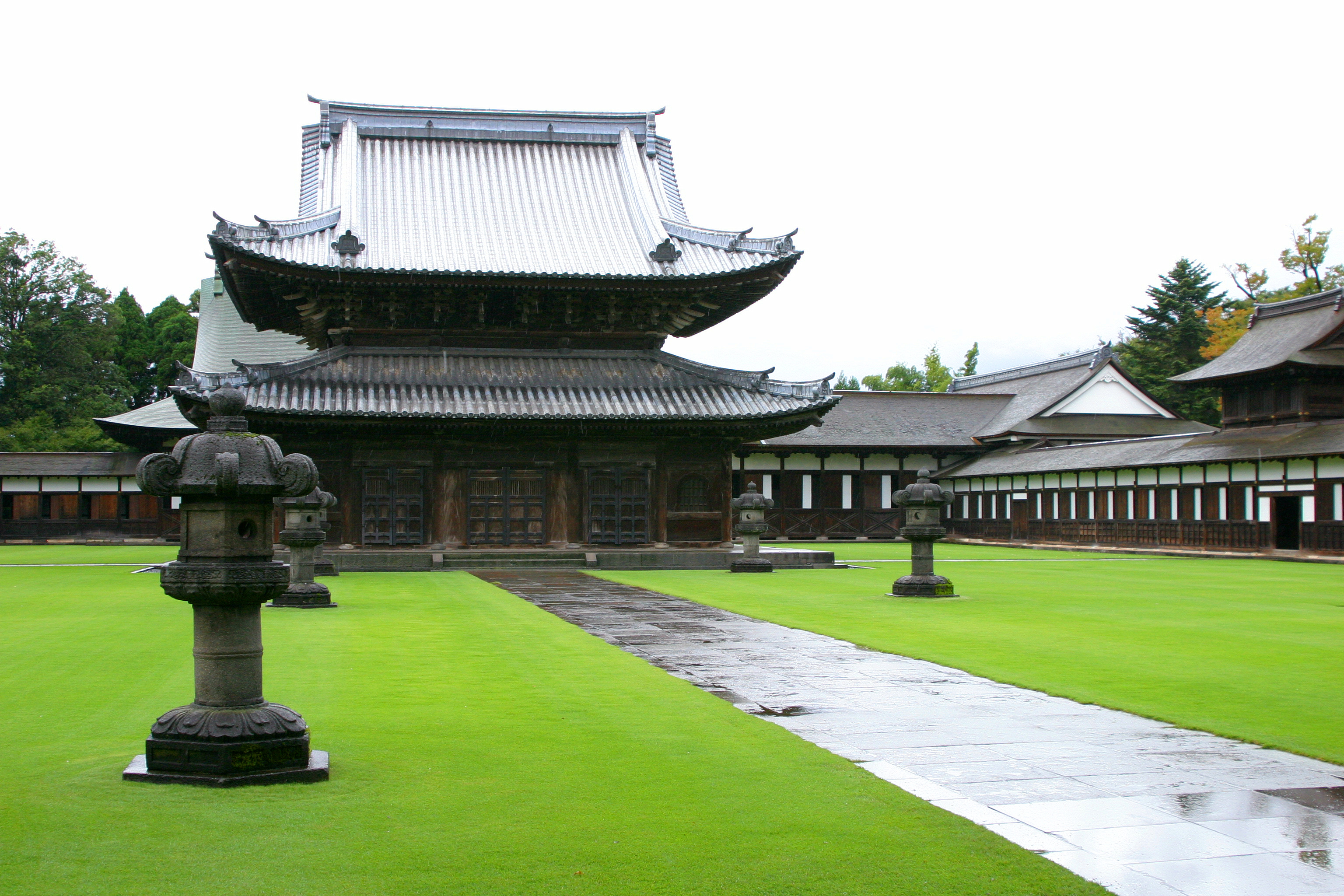 高岡瑞龍寺の全景。雨に煙るお寺も綺麗です。