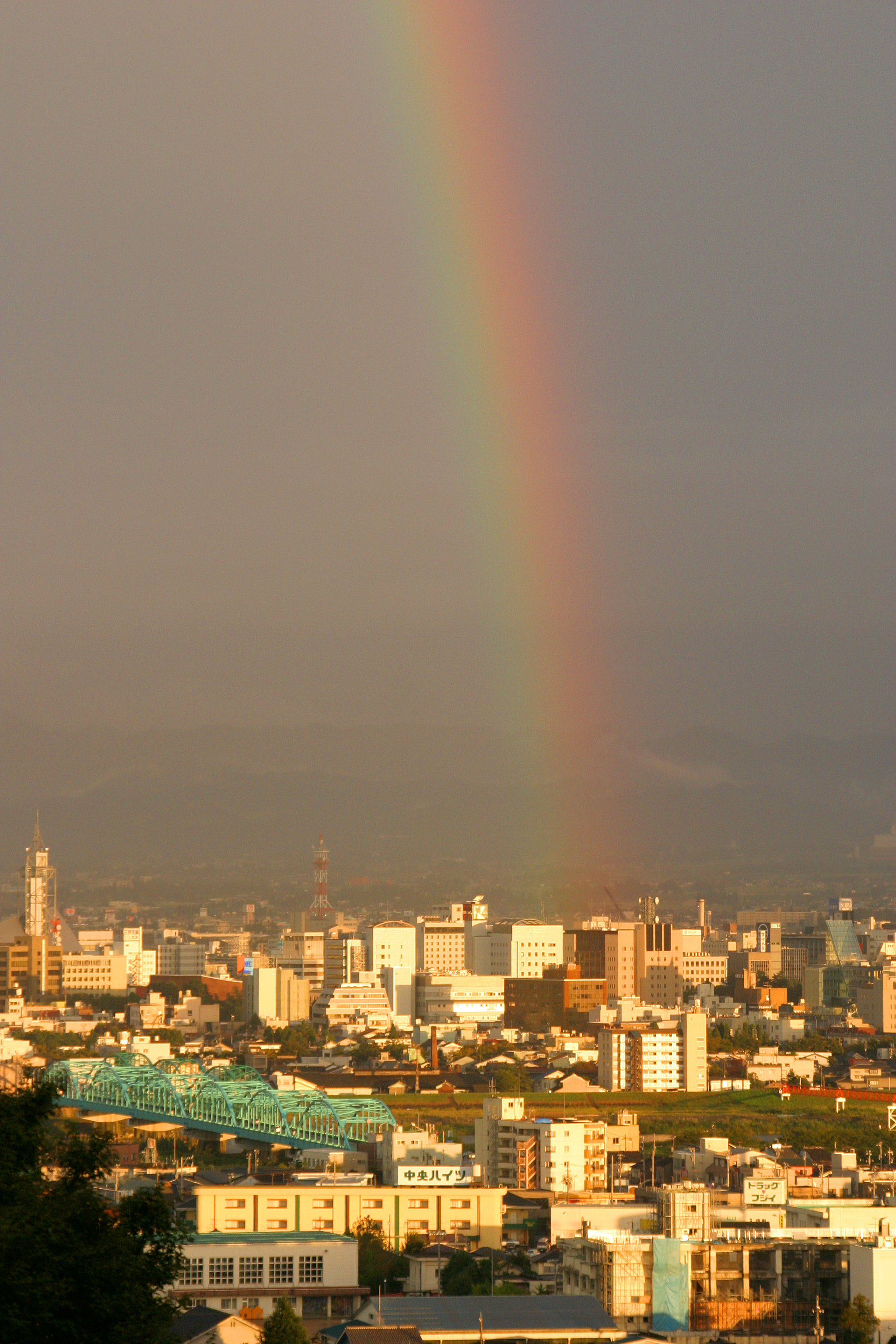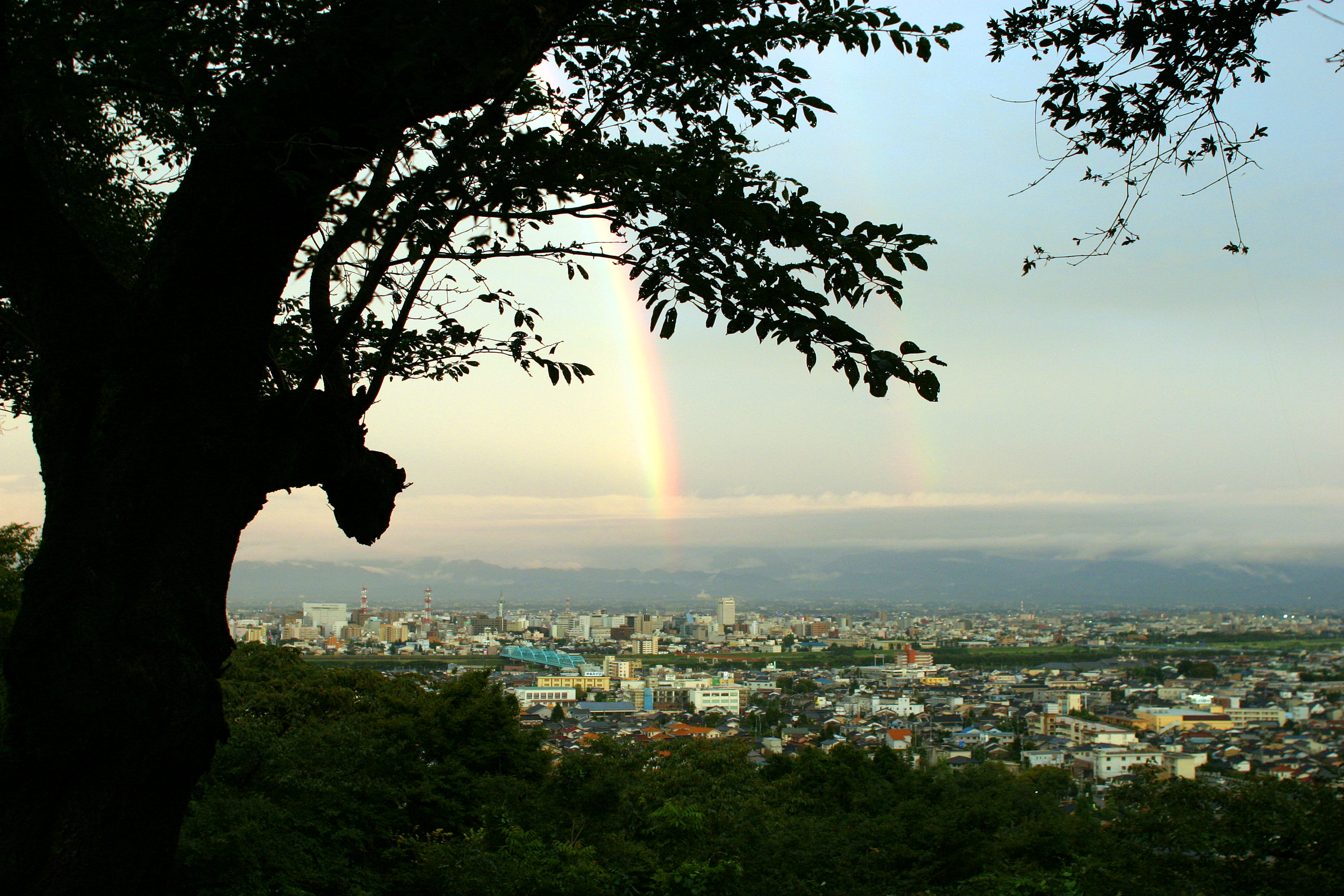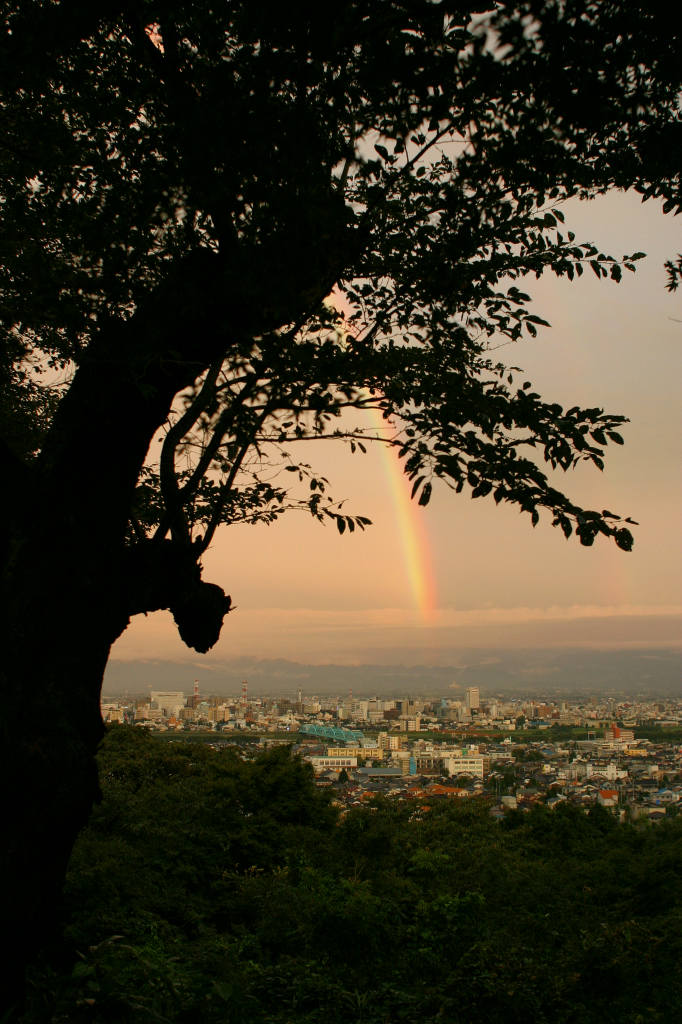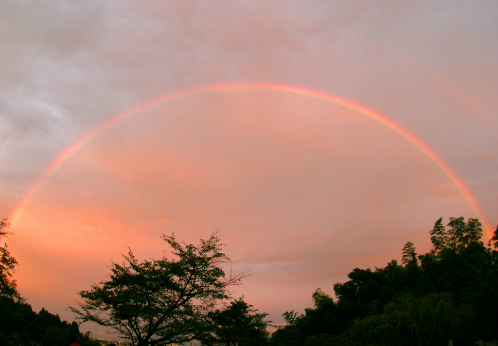 木陰から見る虹の姿です。