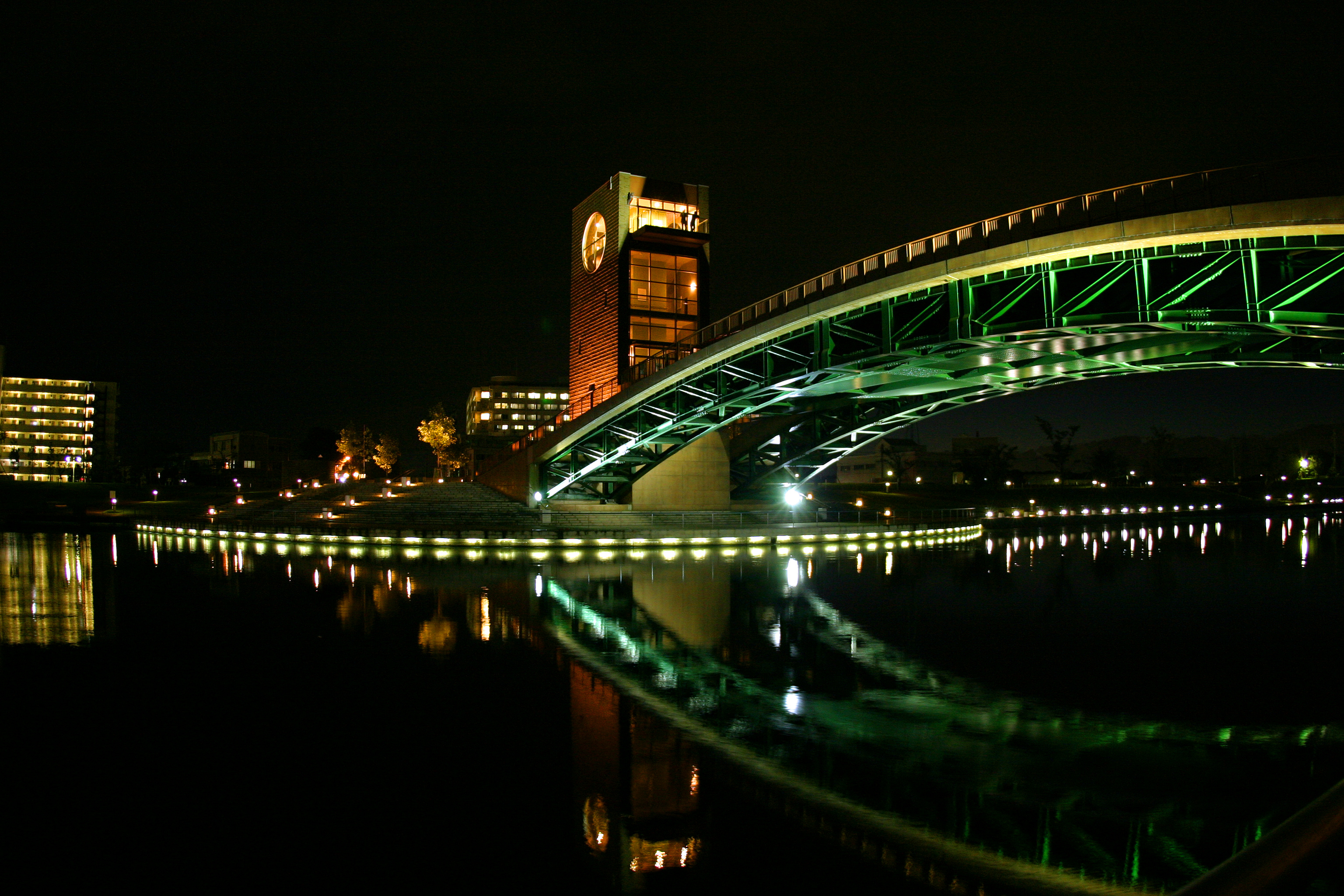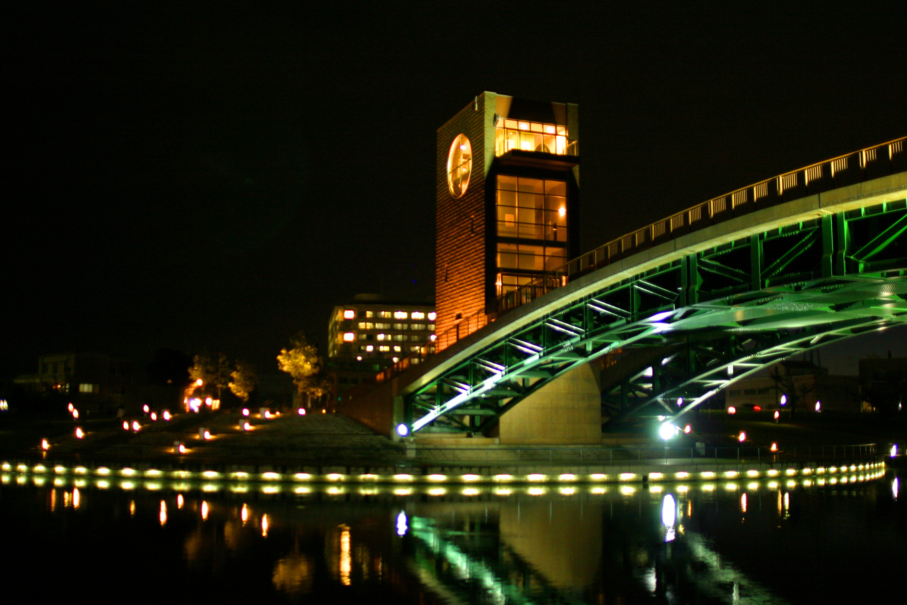 夜の公園にかかる橋です。