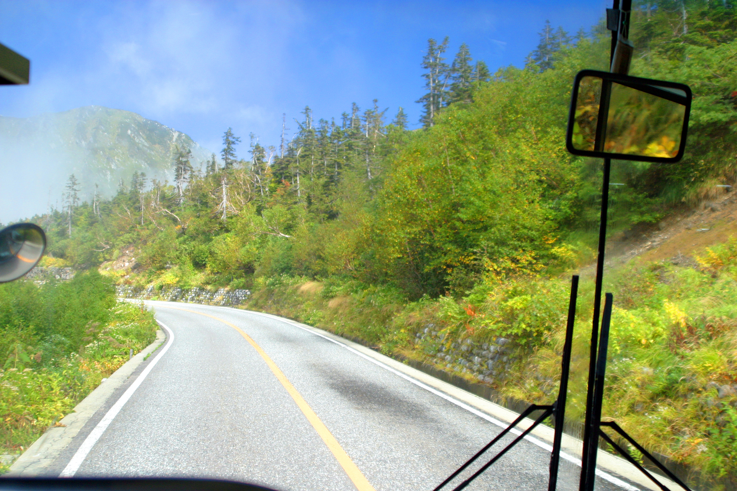 立山へと続く道。バスでゆっくり登っていきます。
