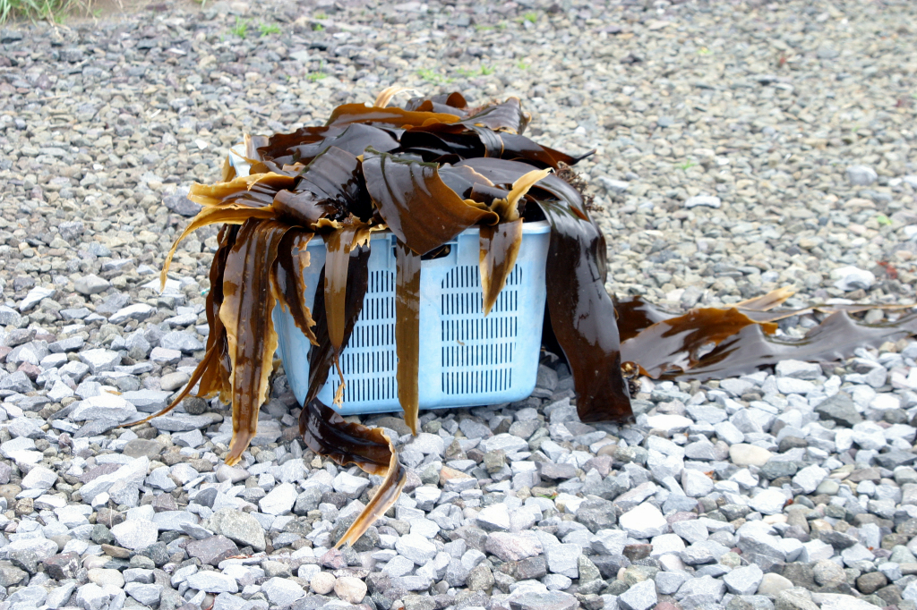 取れたての昆布がカゴに入っていました。これから出荷です。