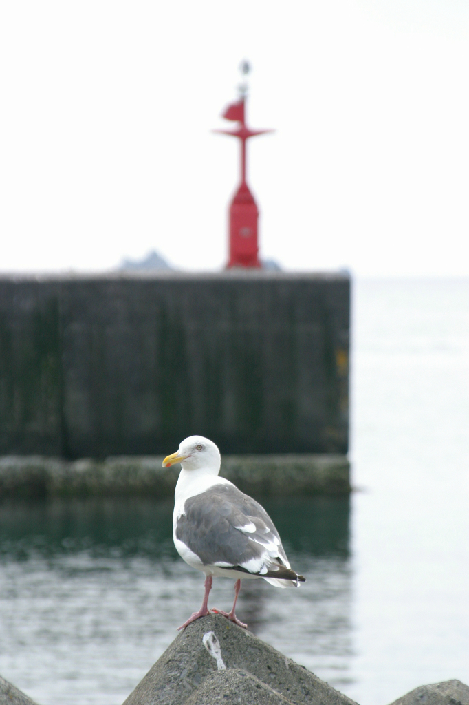灯台を背にカモメが1羽、休憩をしていました。