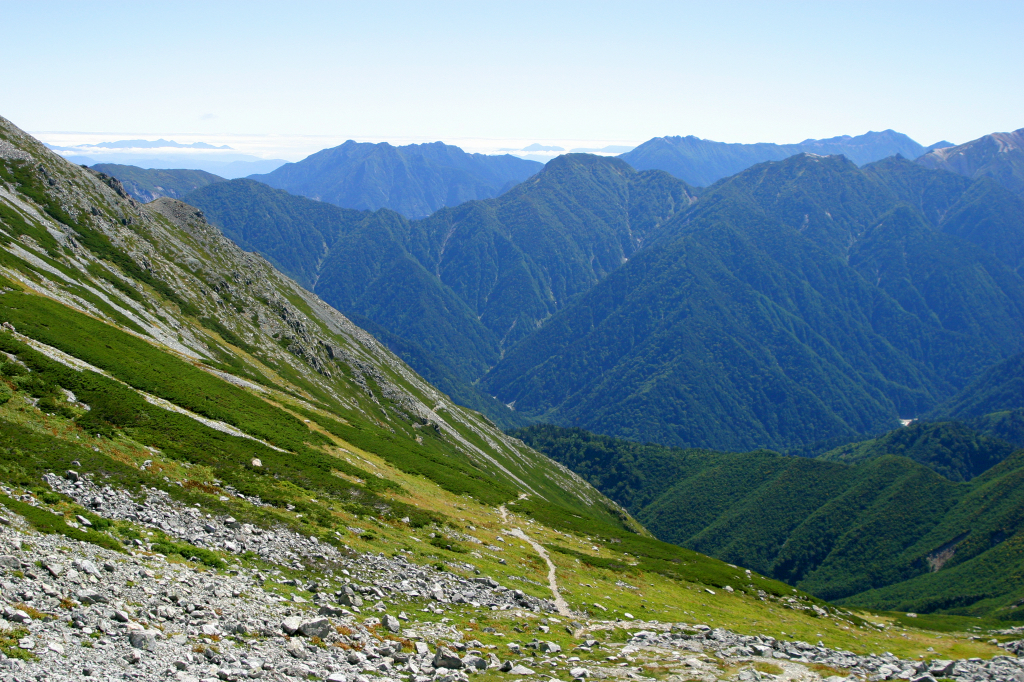登山道です。高山の谷に沿って続いていきます。