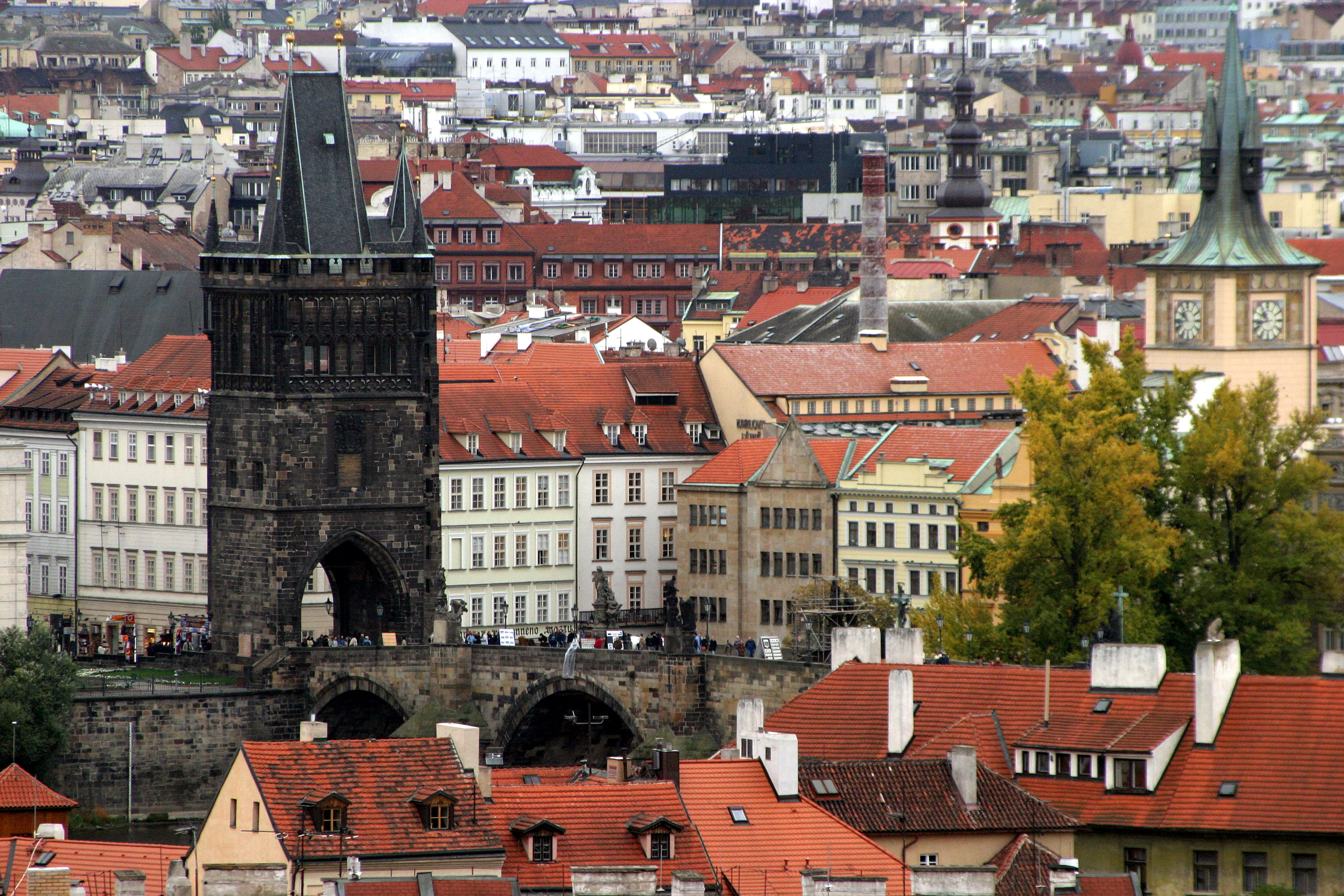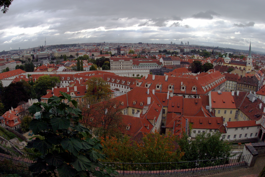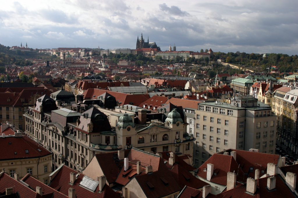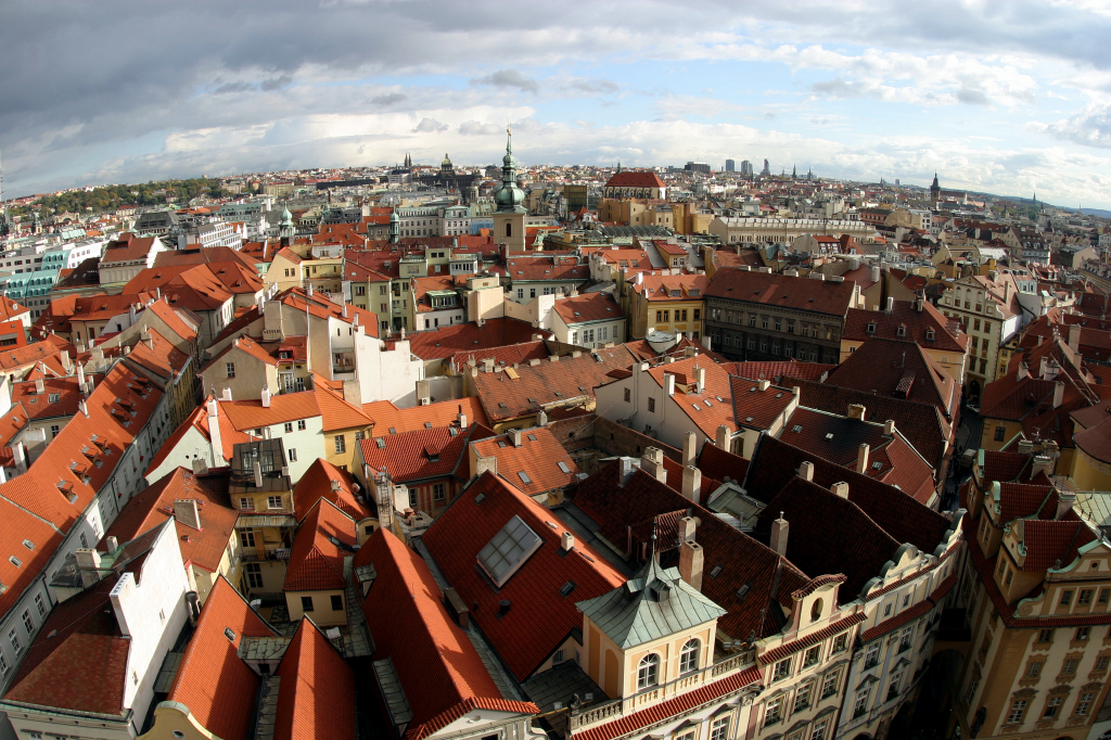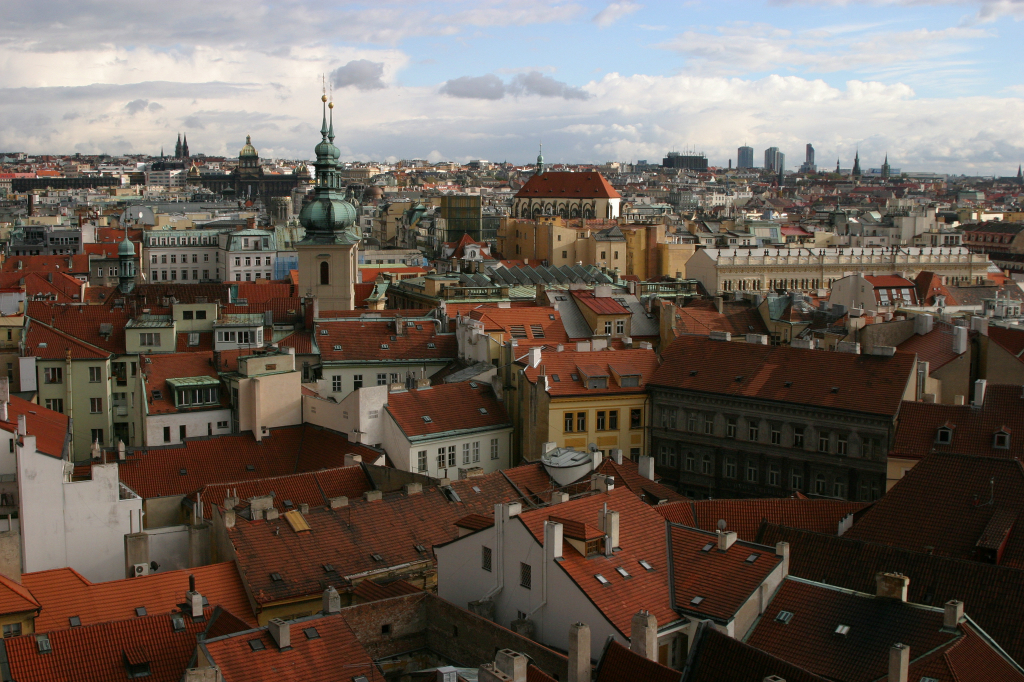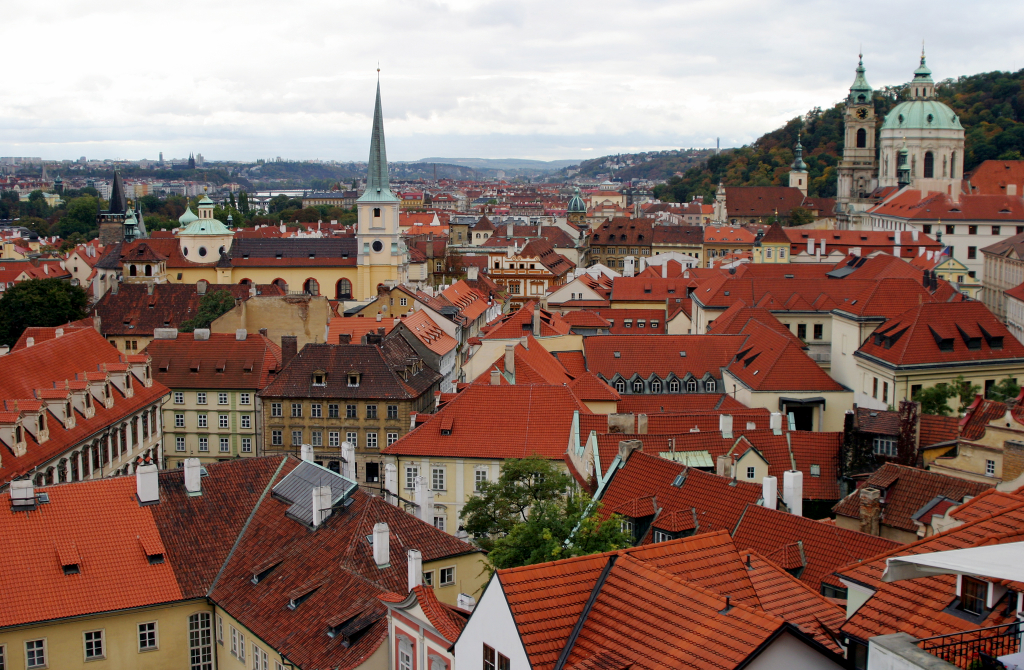 プラハ市内の光景。煉瓦の屋根がどこまでも続いています。