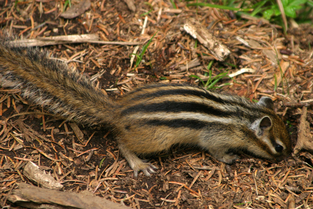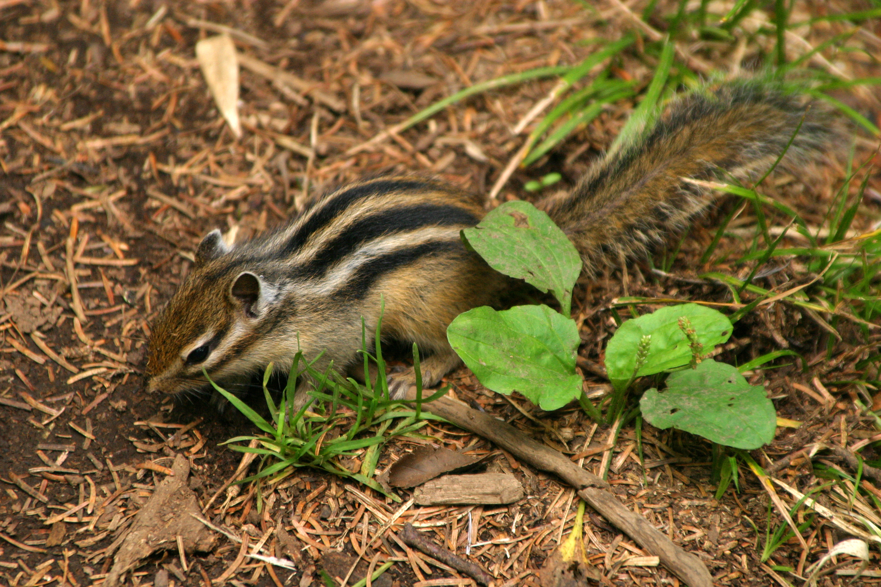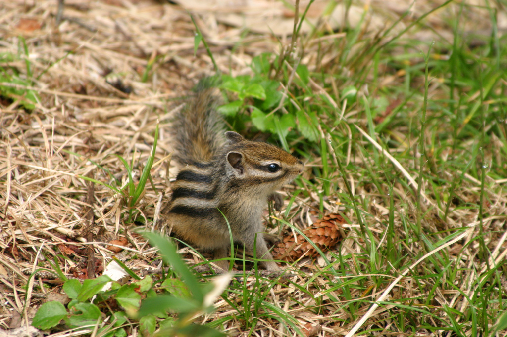 突然リスが出てきました。顔を上げてきょとんとしています。