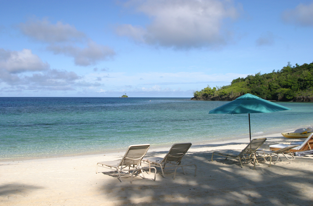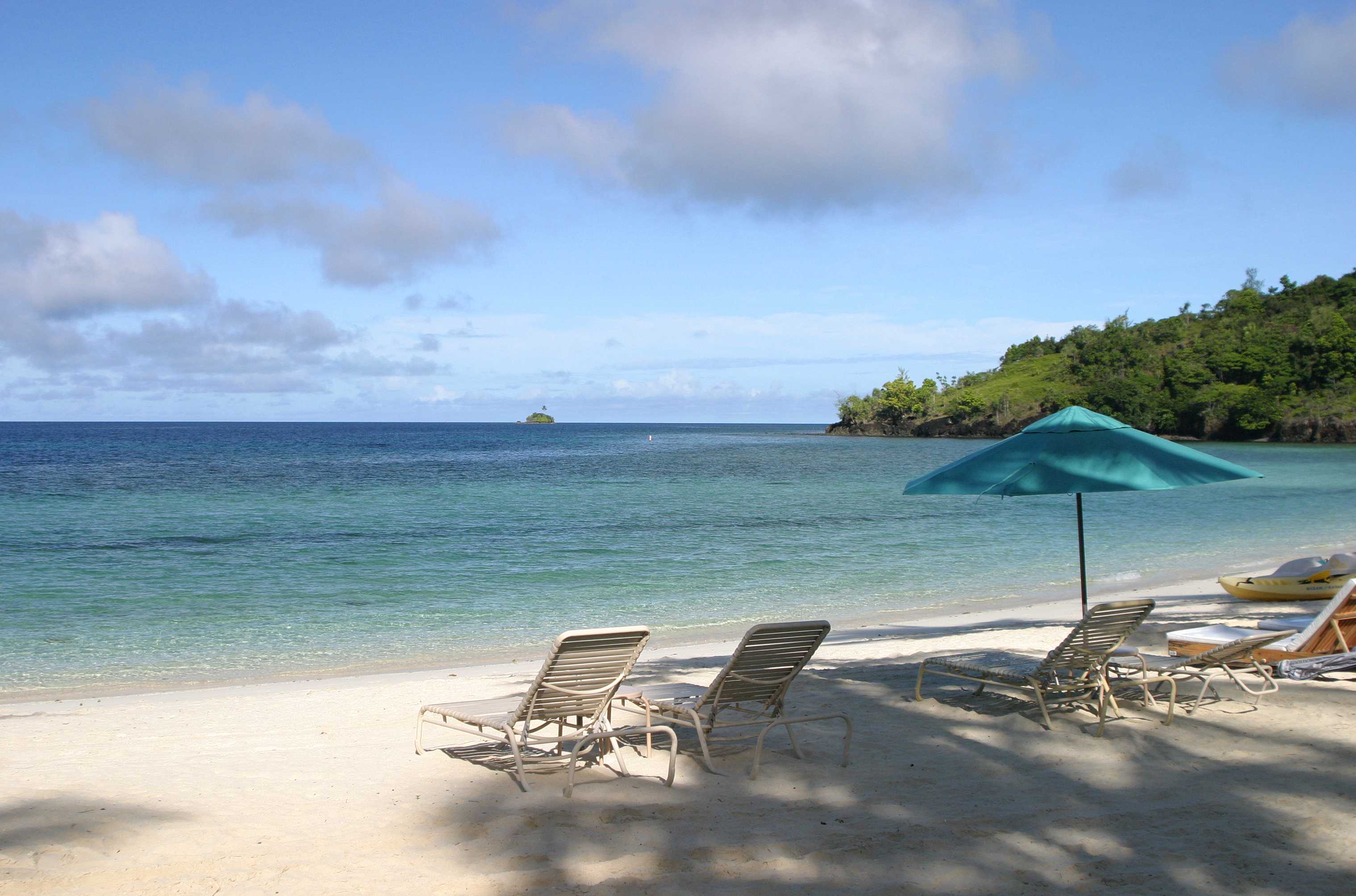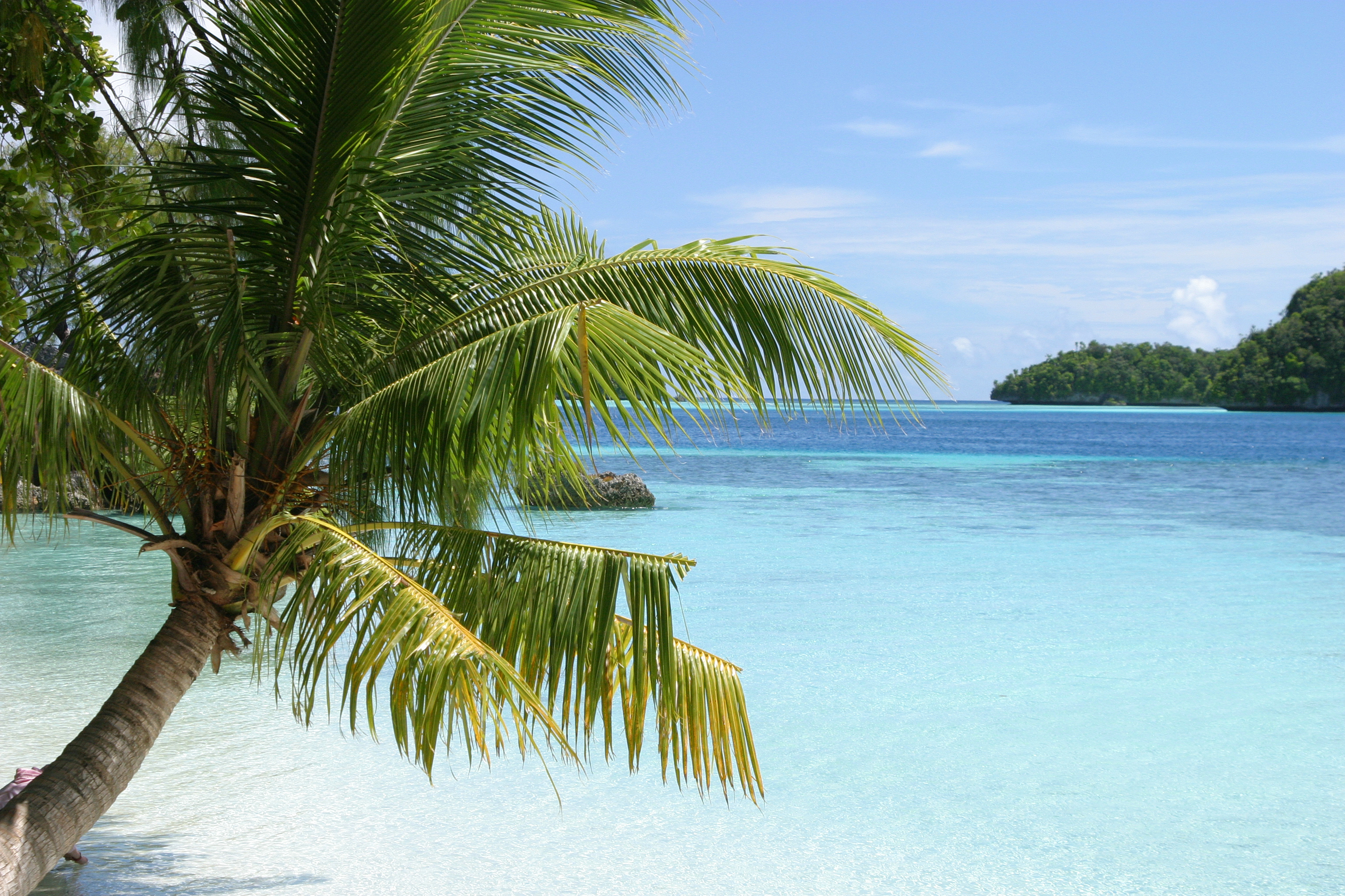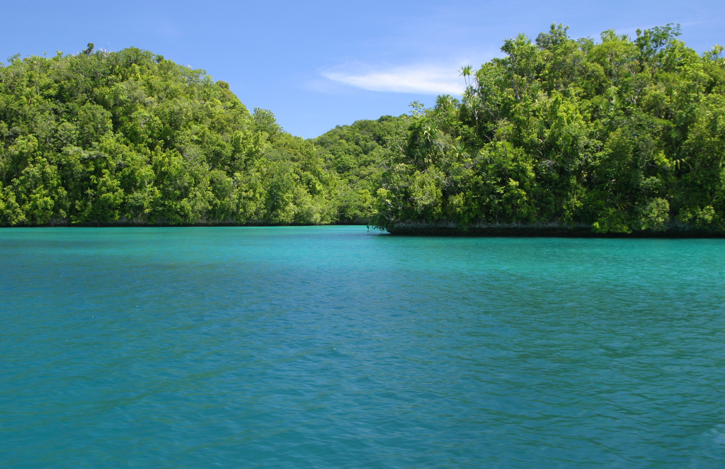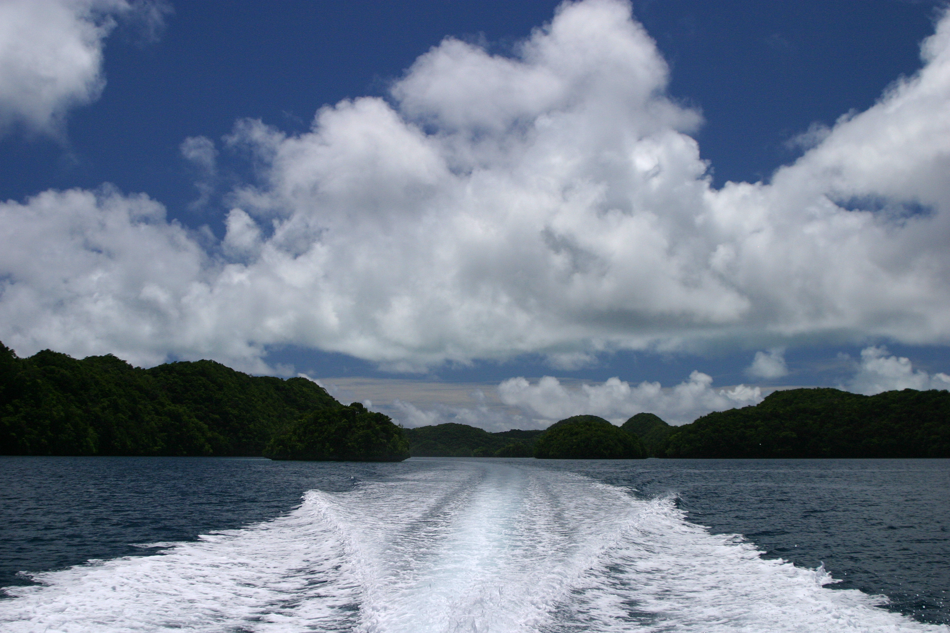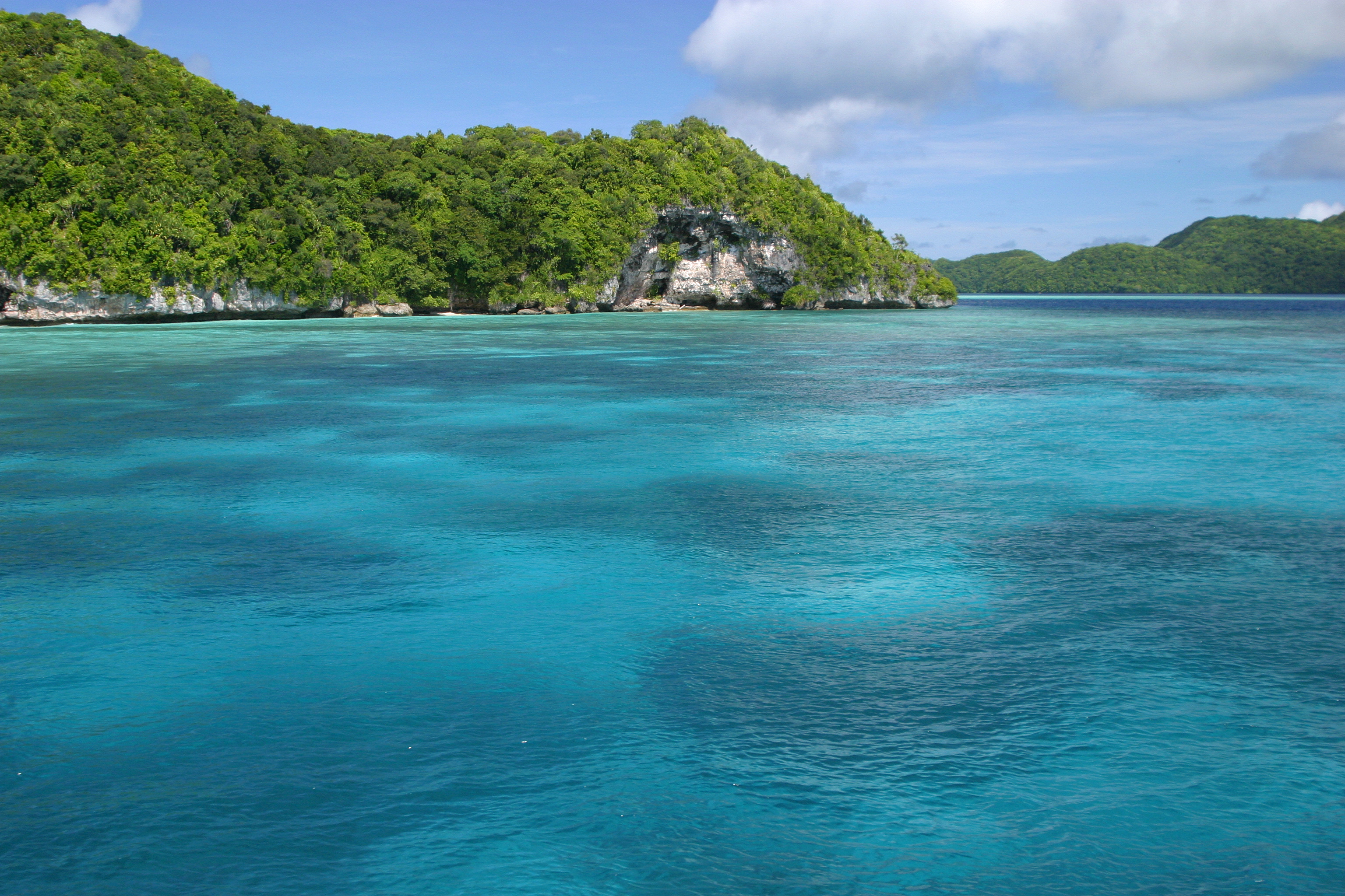 島の間の海はとてもきれいです。日本では見られない色ですね。