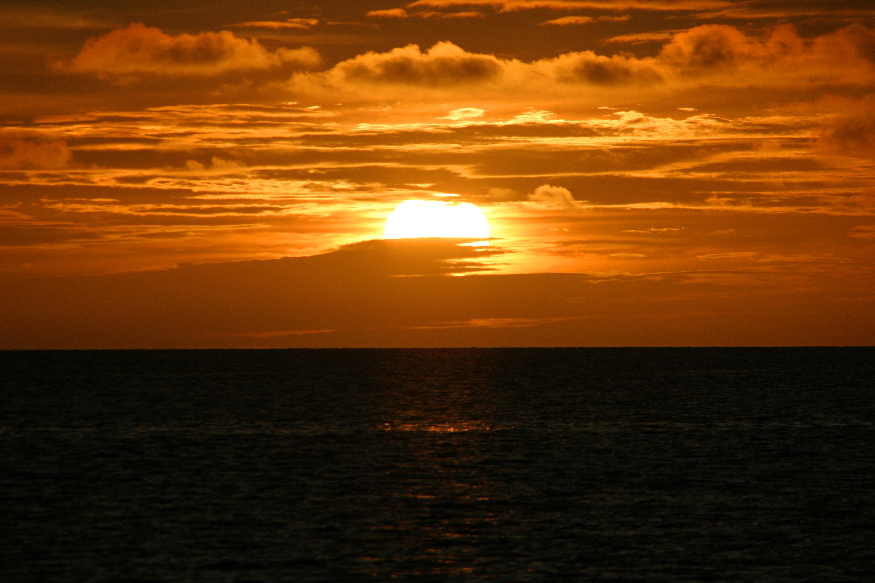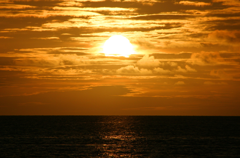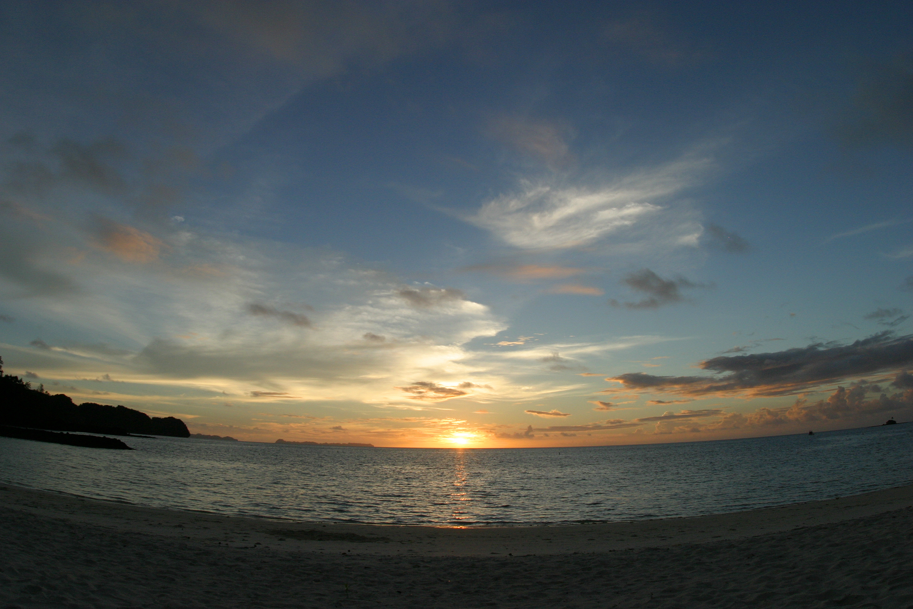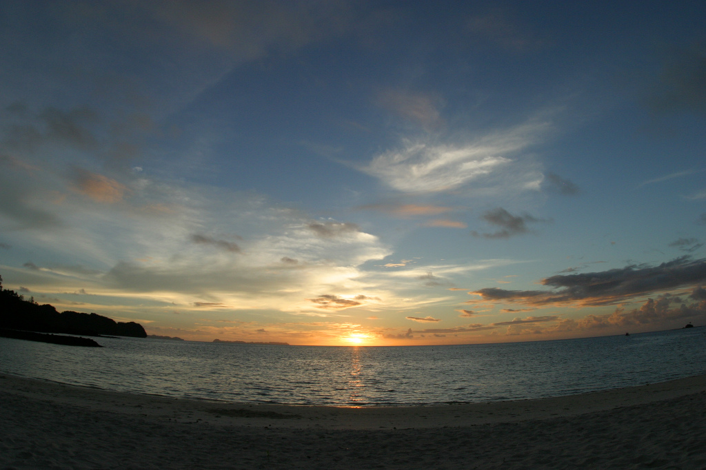 太陽がまさに海の向こうへと沈んでいく瞬間です。