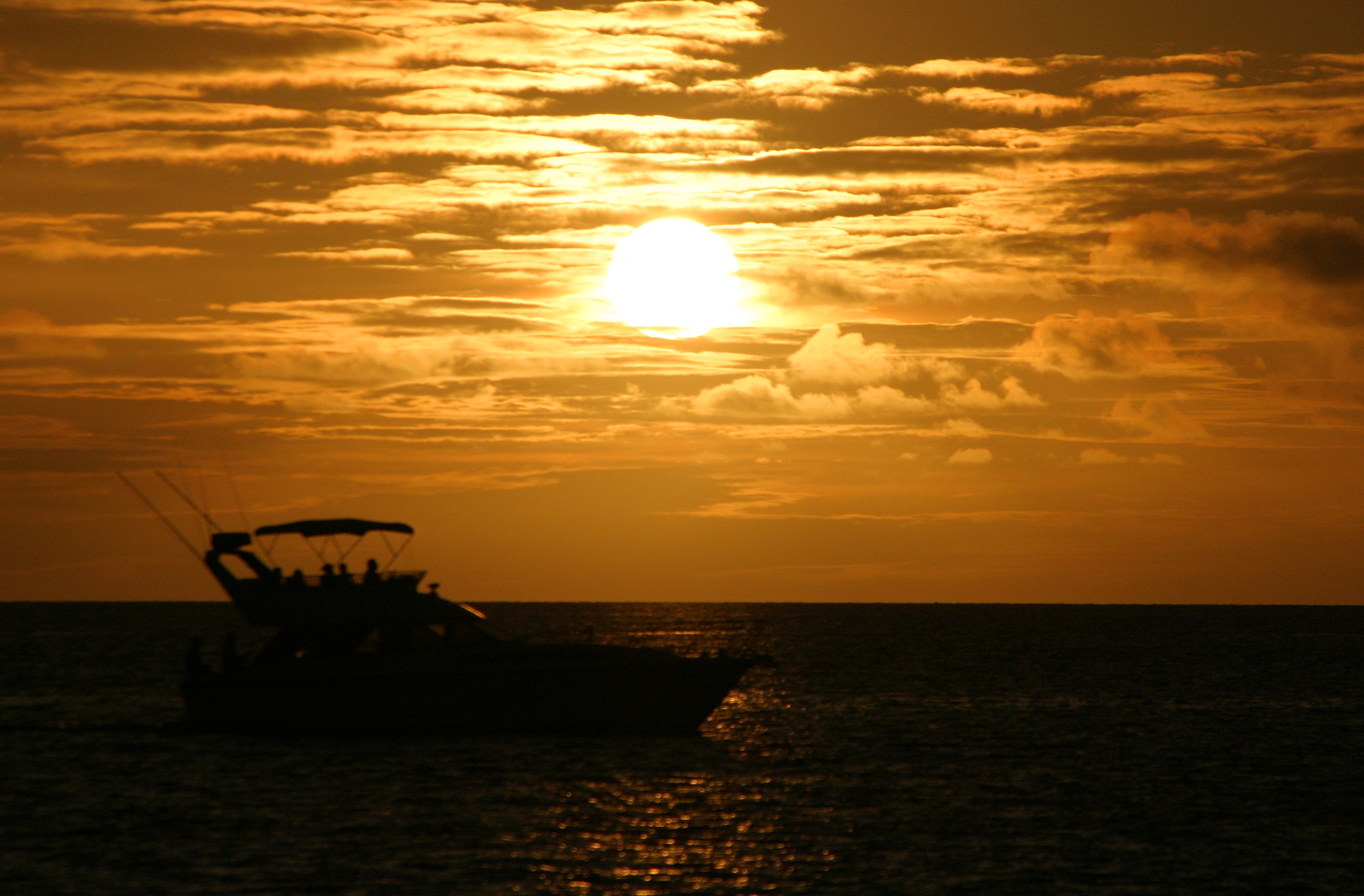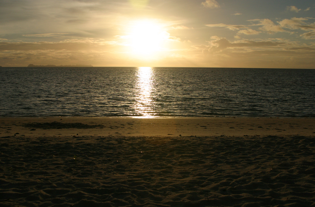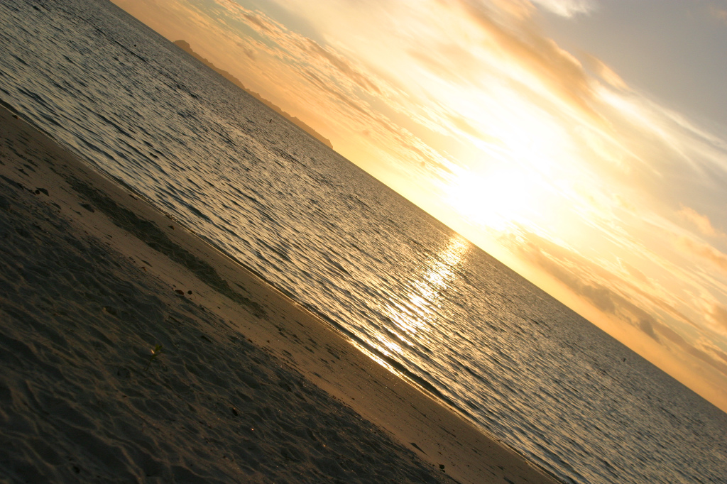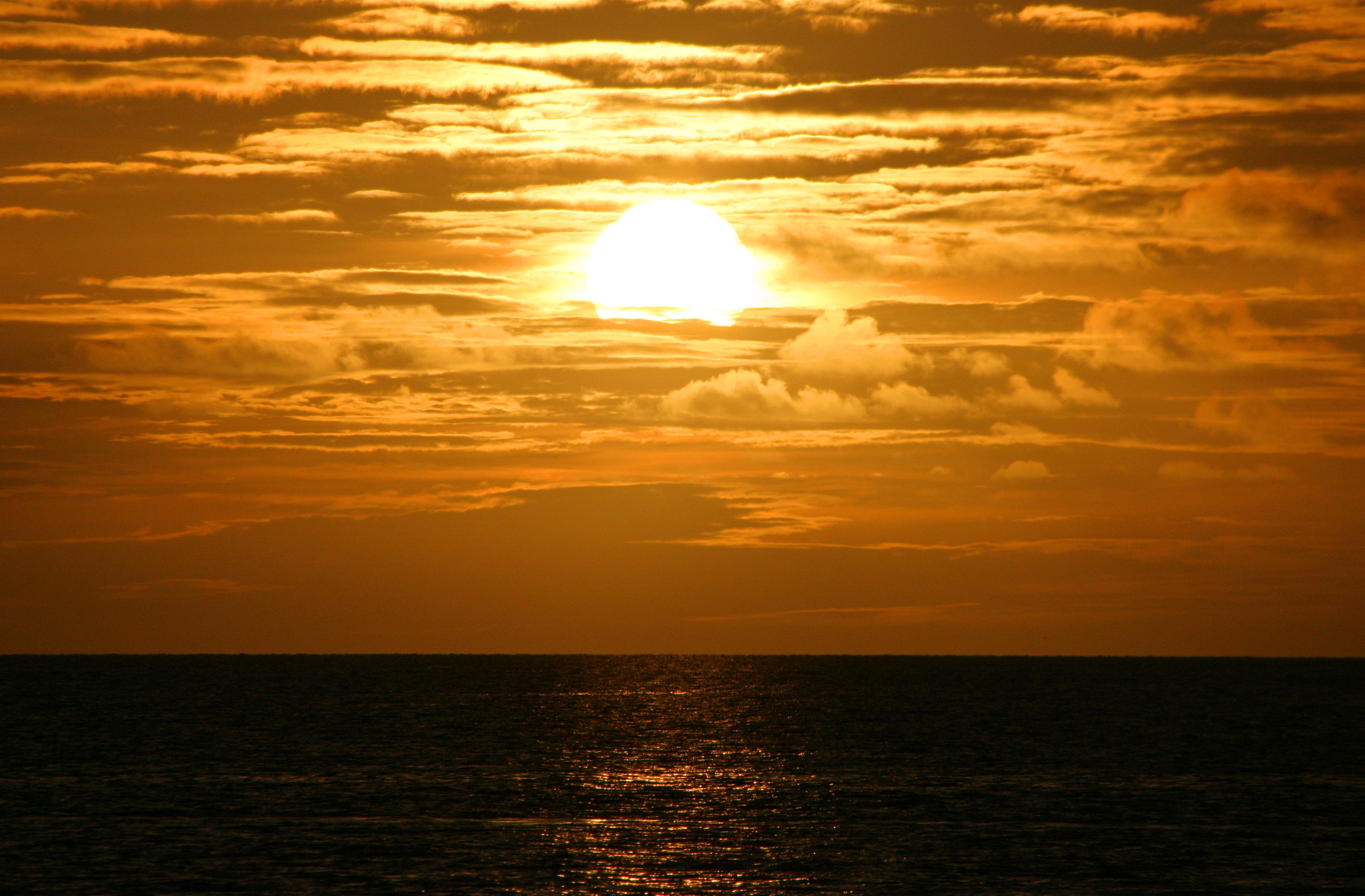 太陽がまさに海の向こうへと沈んでいく瞬間です。