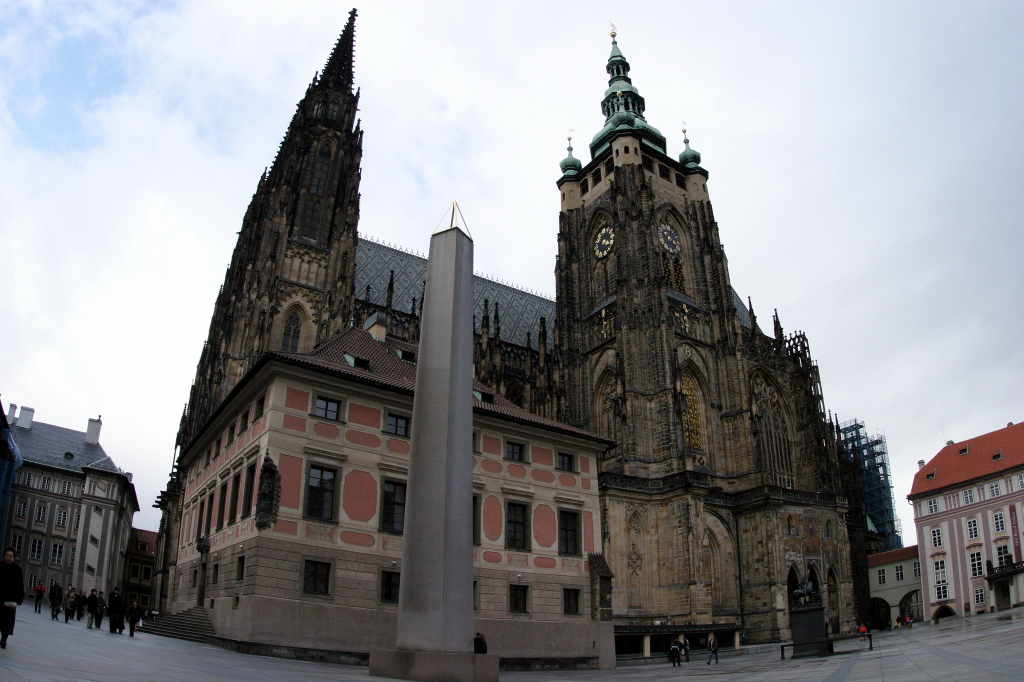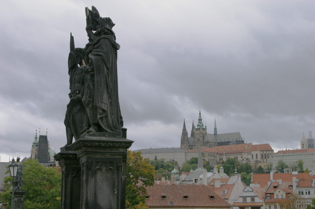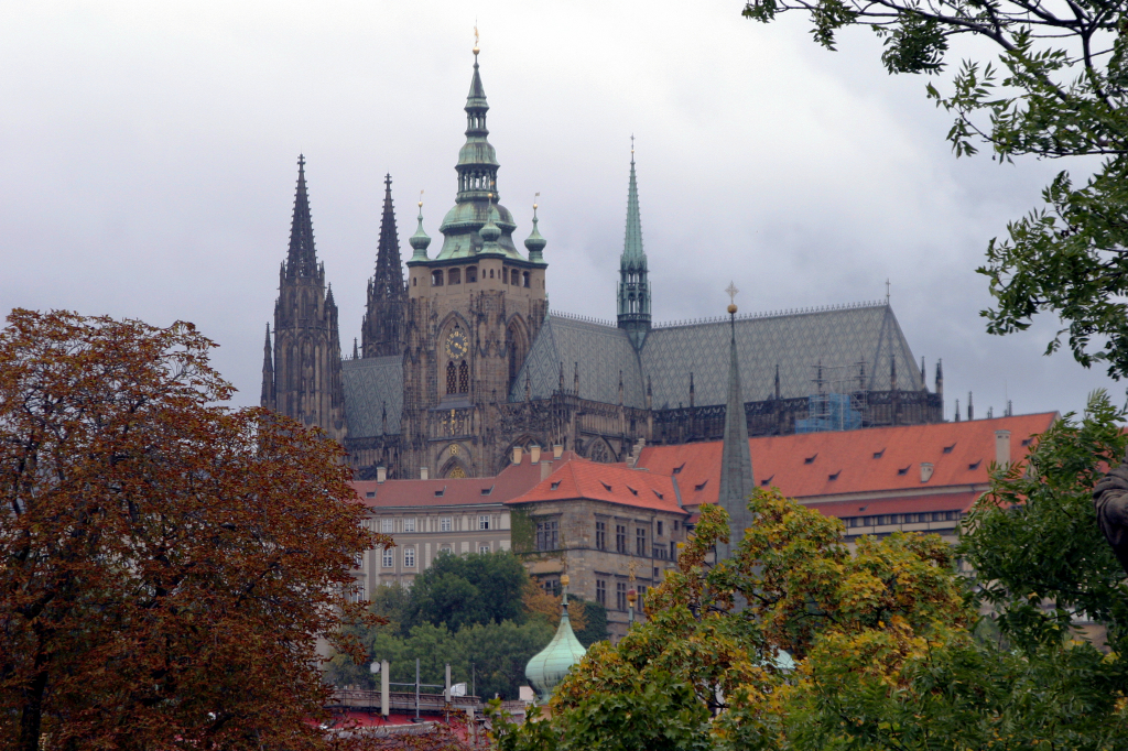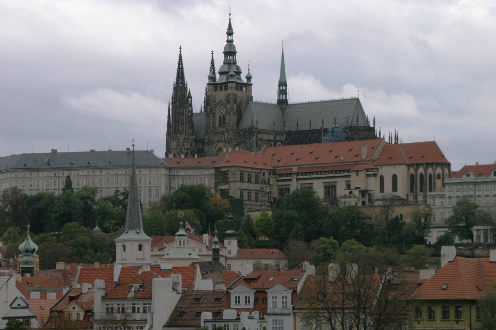 プラハ城からカレル橋を眺めました。すでに観光客でいっぱいです。