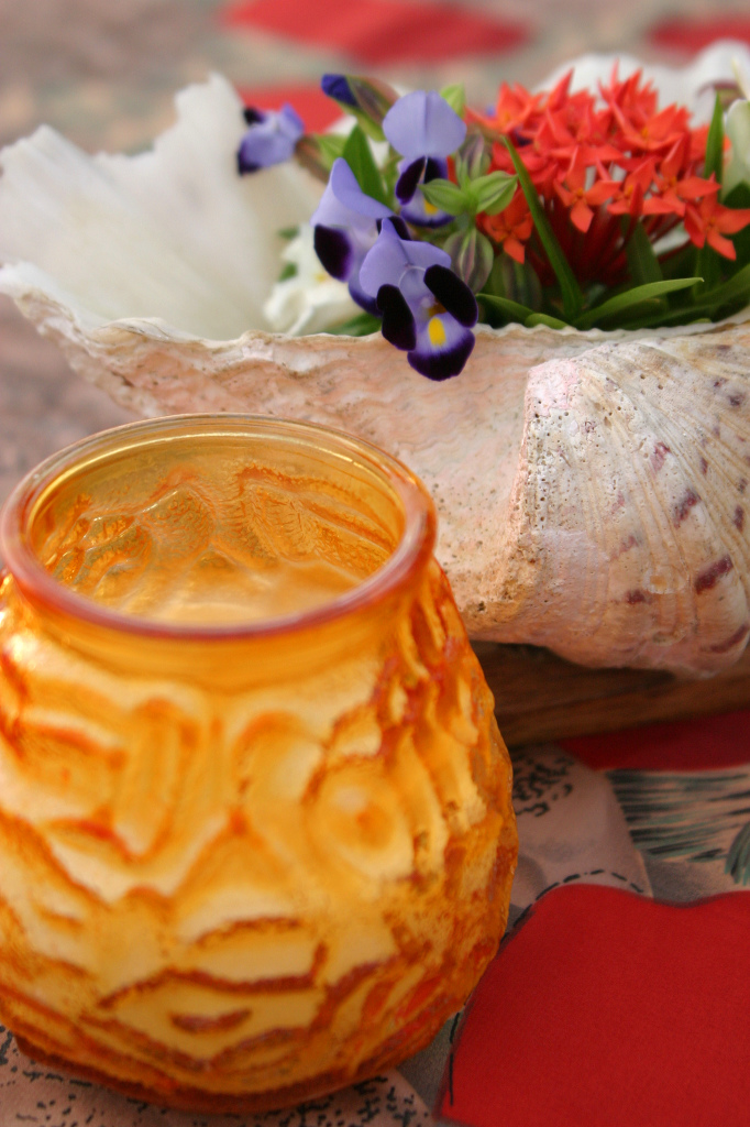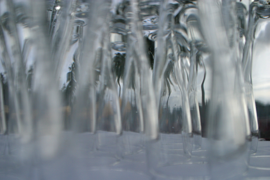グラスの高さまで下がって撮影しました。風景がゆがんで見えておもしろいです。