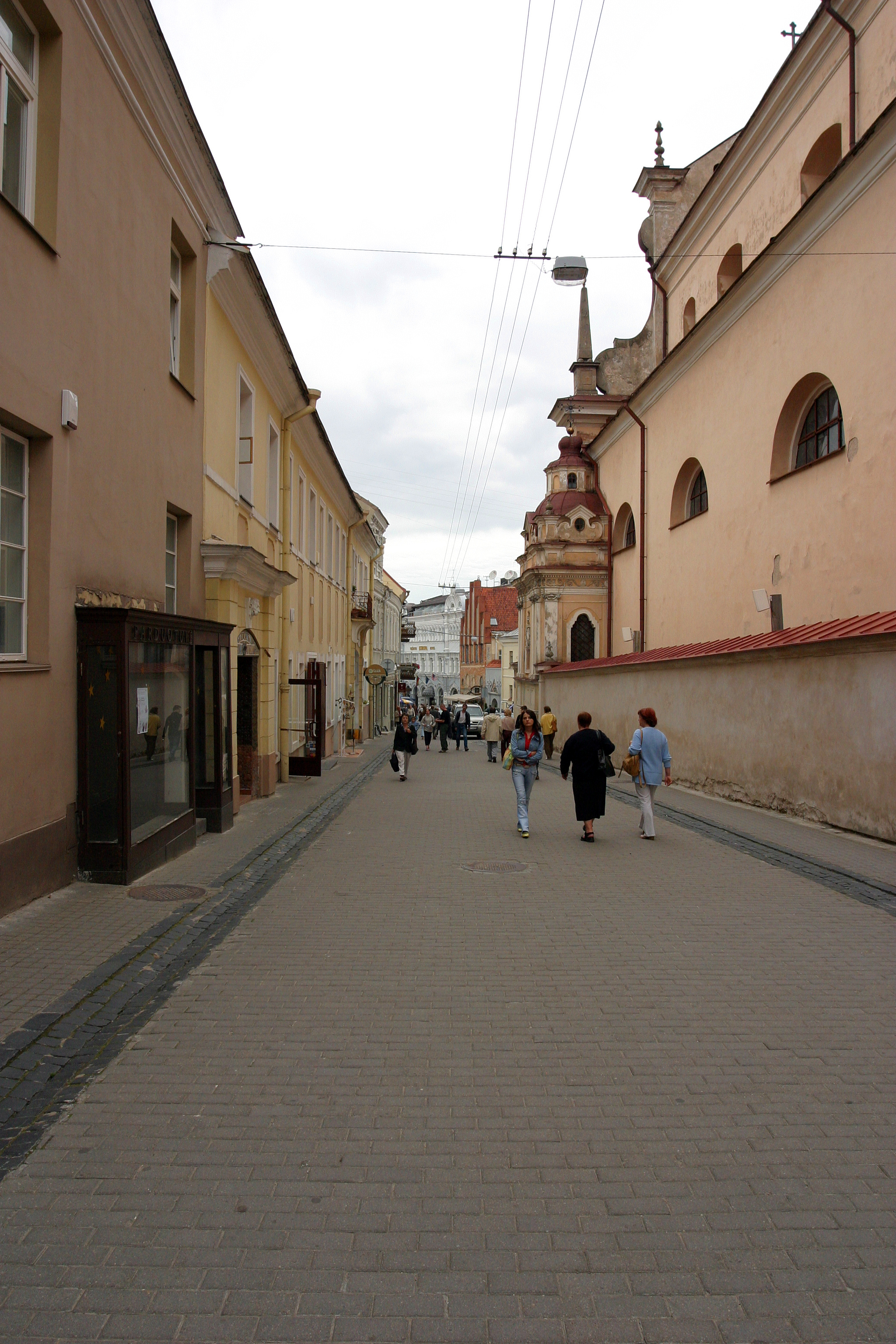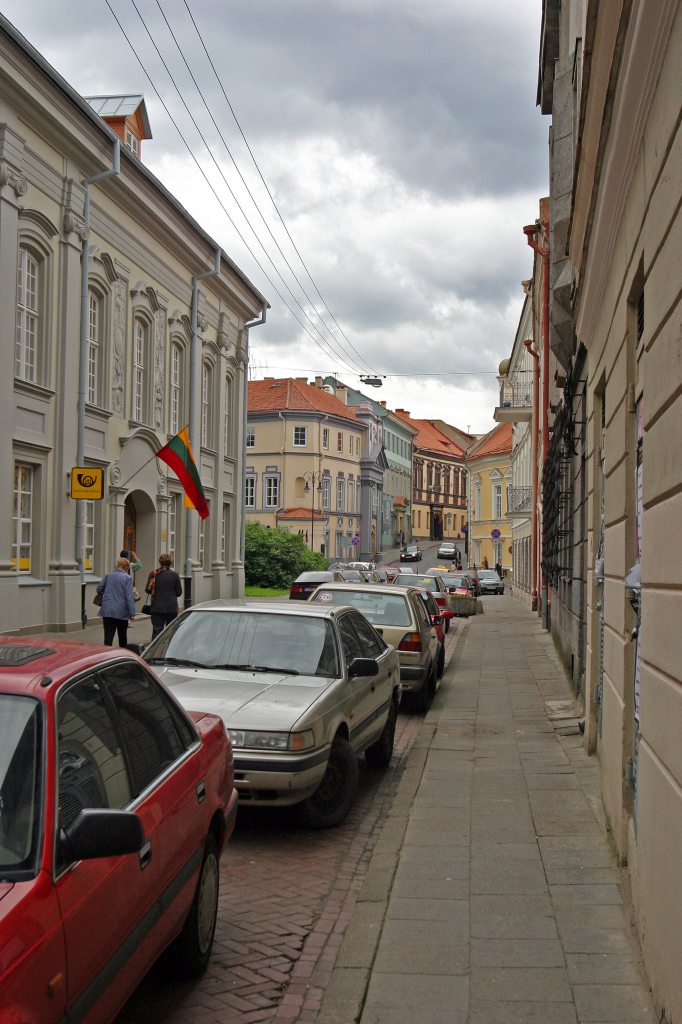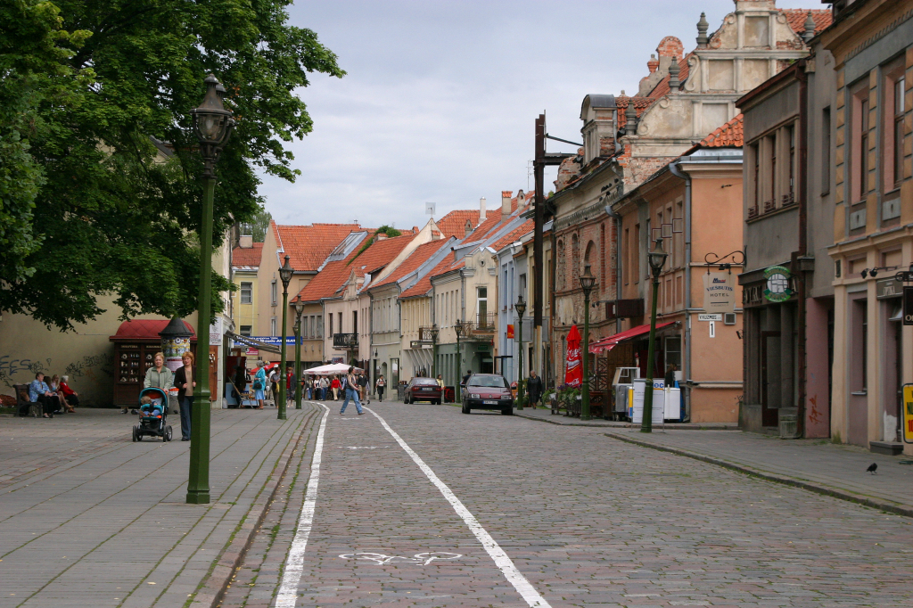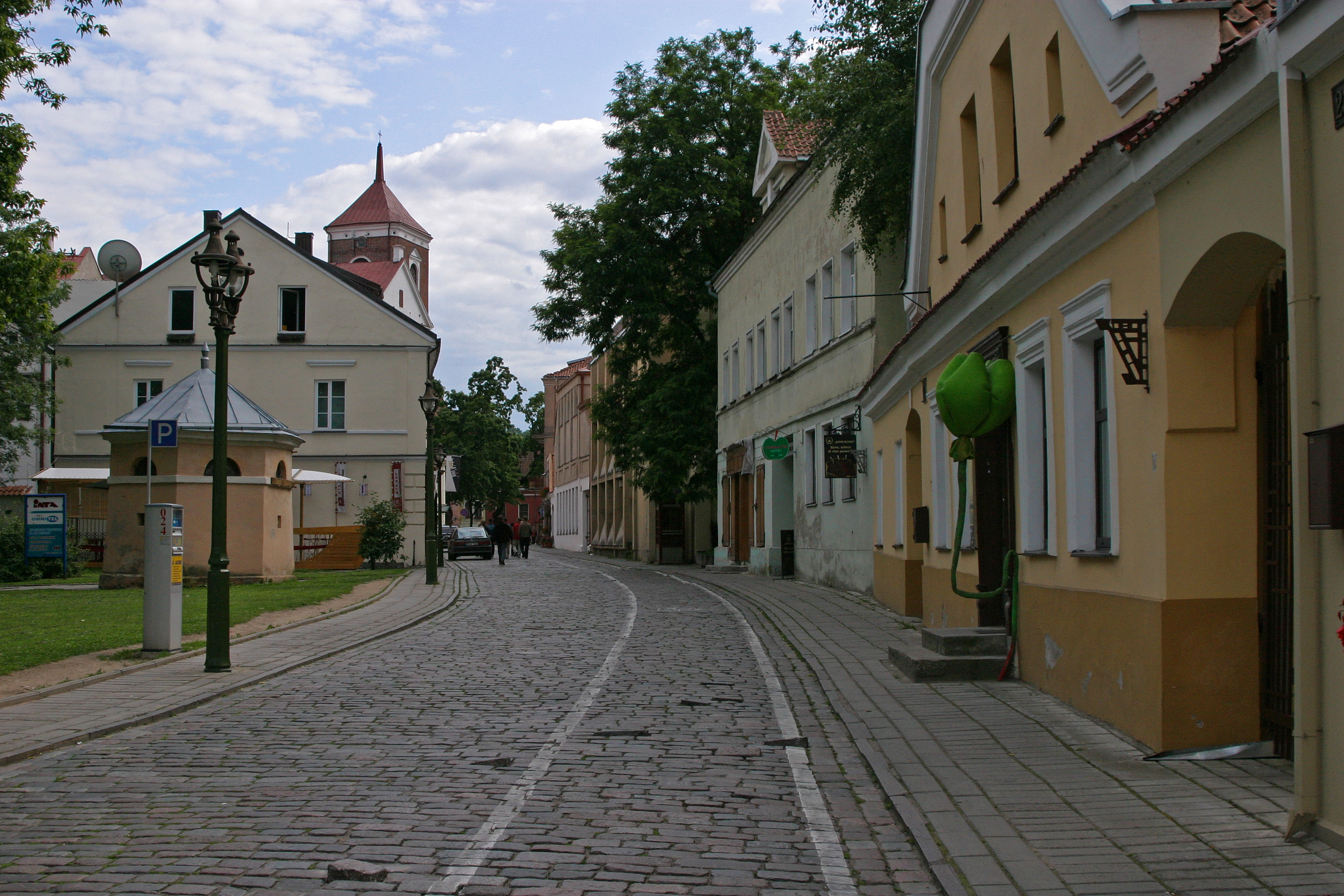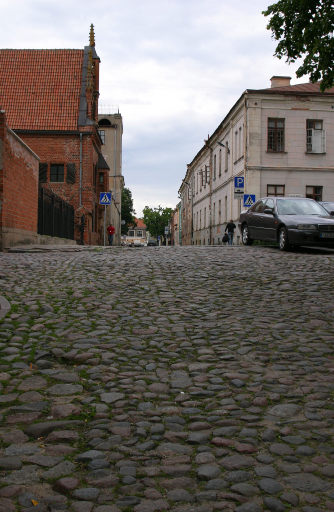ヴィタウタス大公の教会から、カウナスの大聖堂広場方向へと続く石畳の道です。
