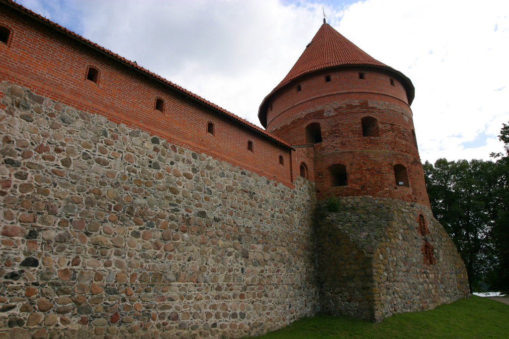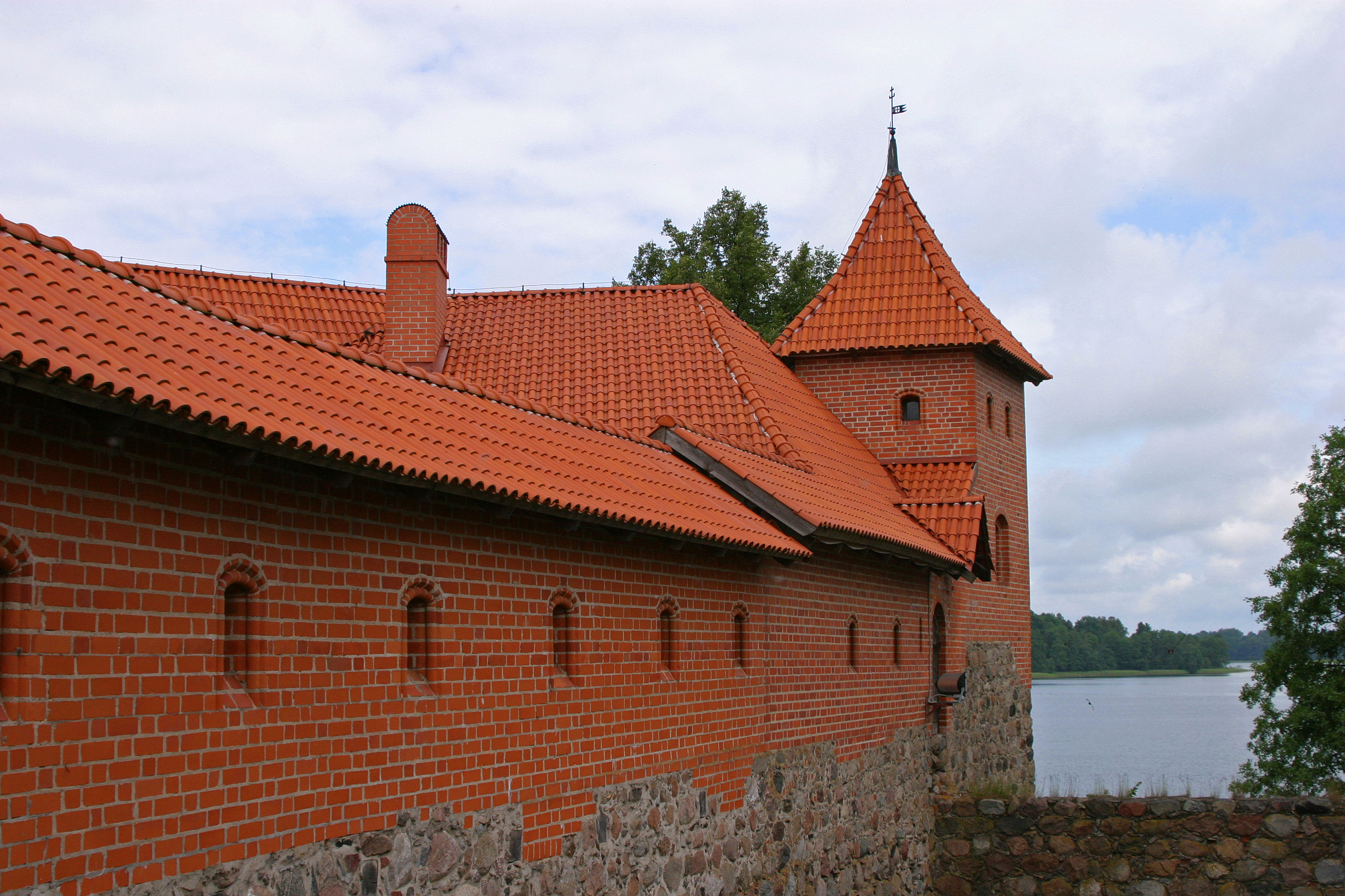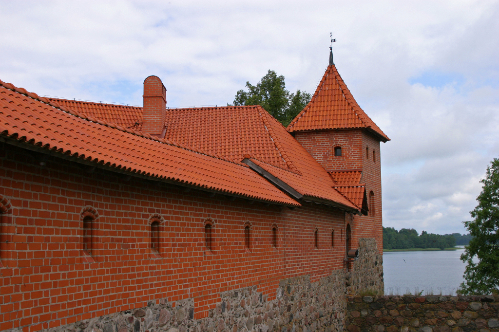トラカイ城をぐるっと取り囲んでいる城郭を外側から撮影しました。