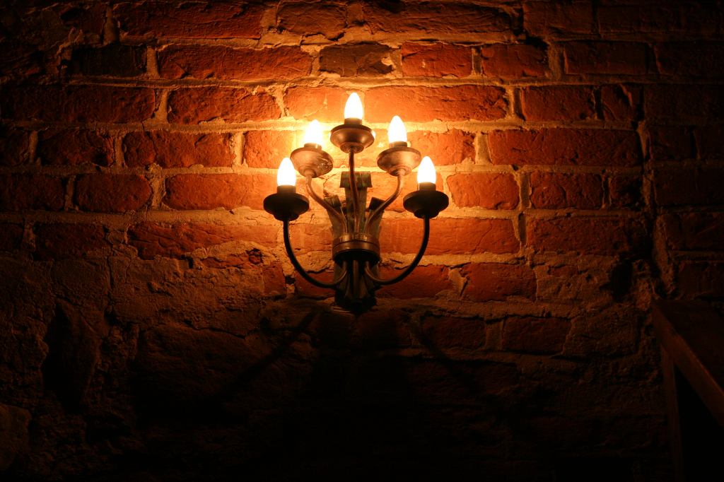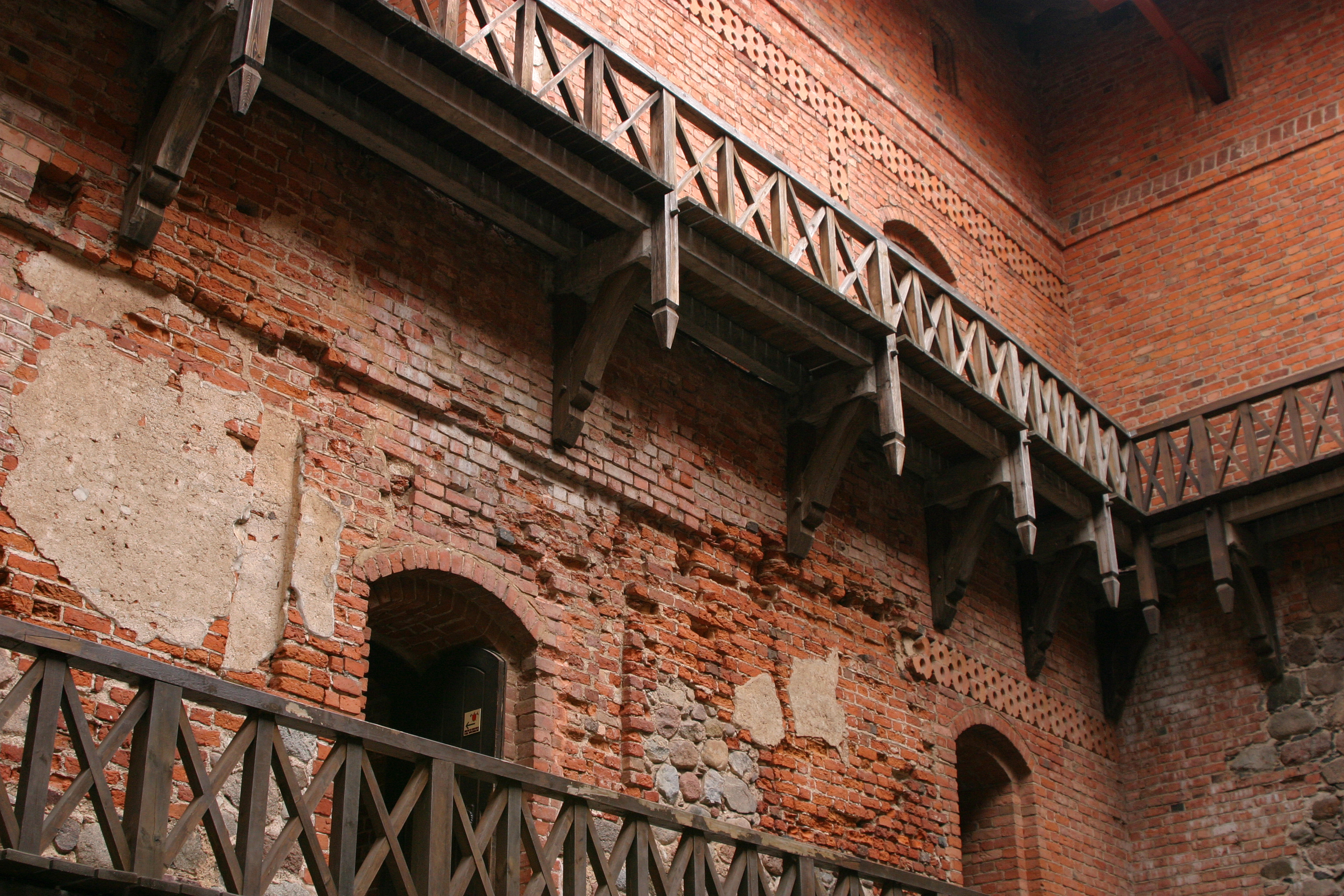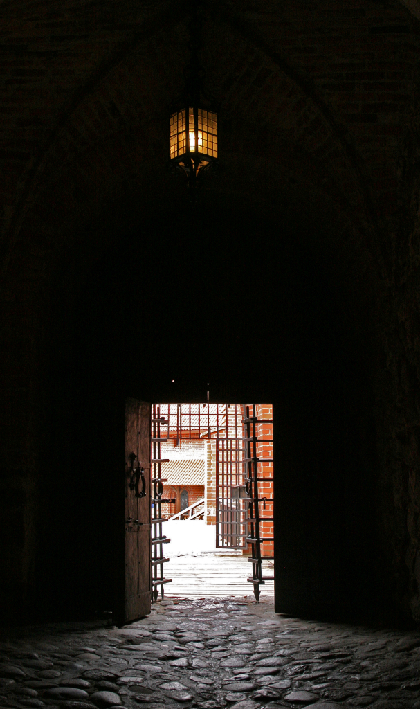トラカイ城内部です。通路には燭台風の電灯が灯っています。