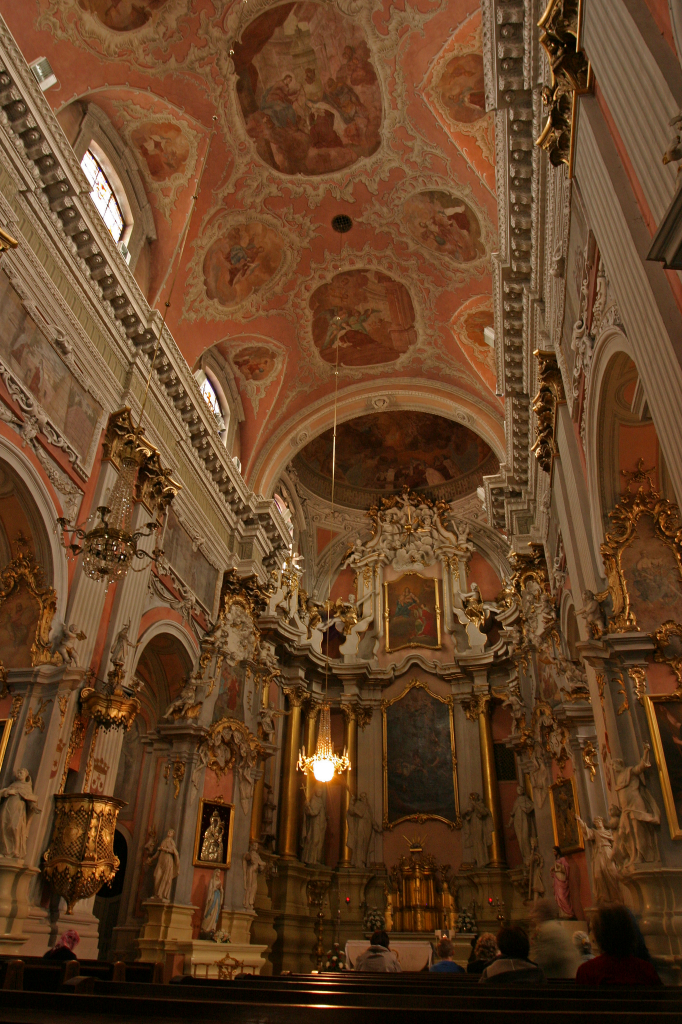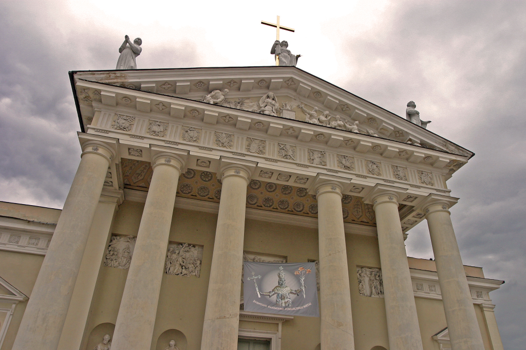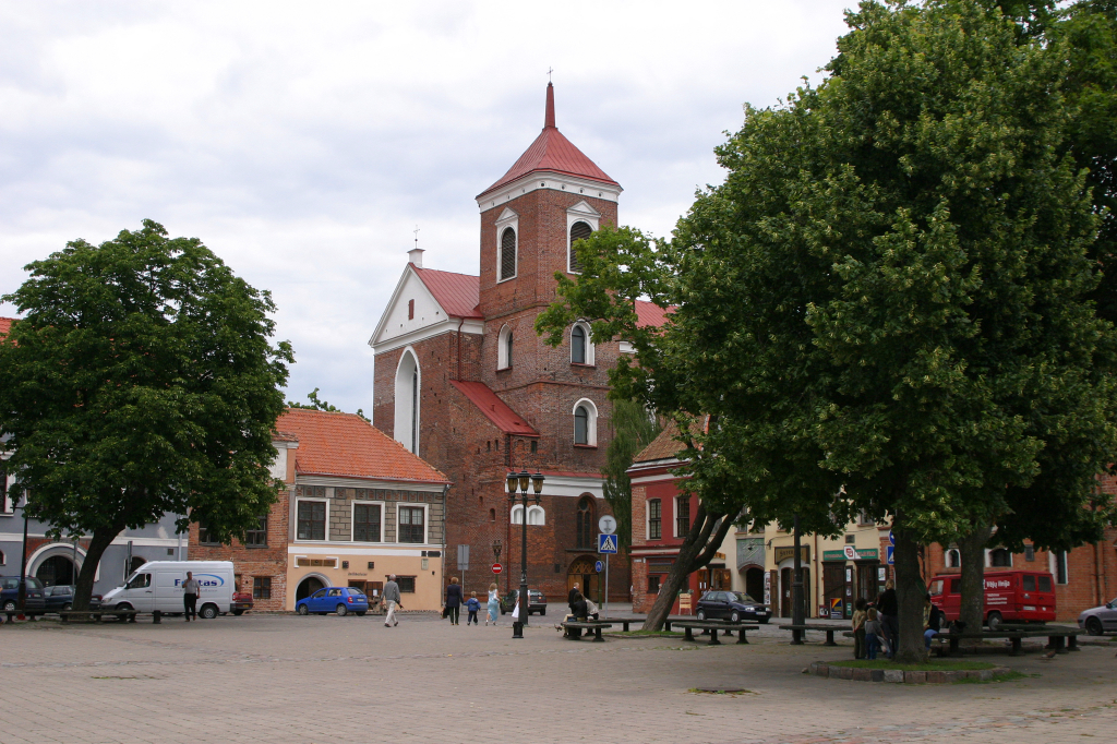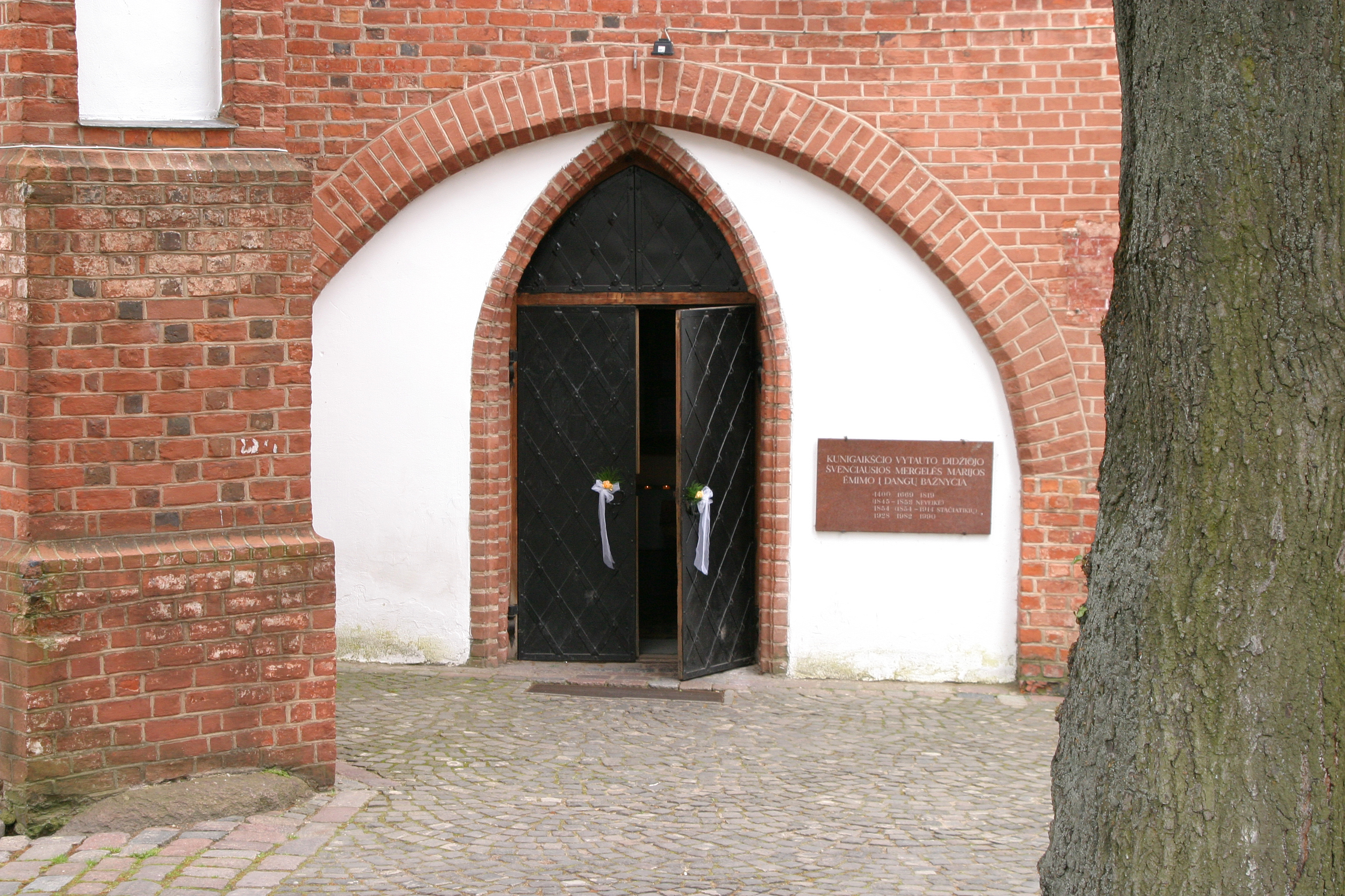 カウナスにあるヴィタウタス大公の教会入口です。この日は金曜日で婚礼ラッシュでした。ここも中では婚礼中で、入口に白い布がかけられています。