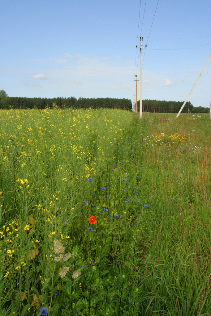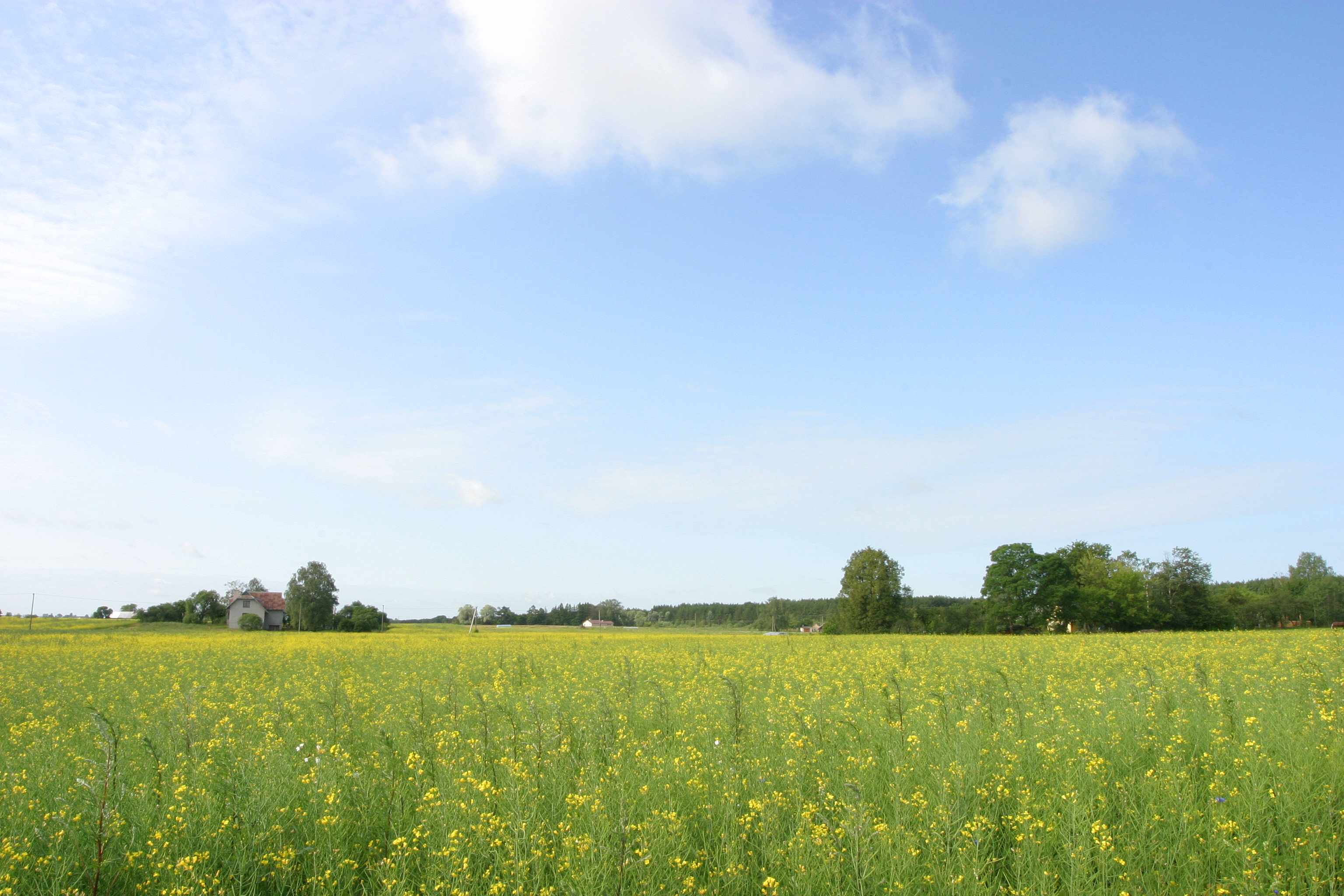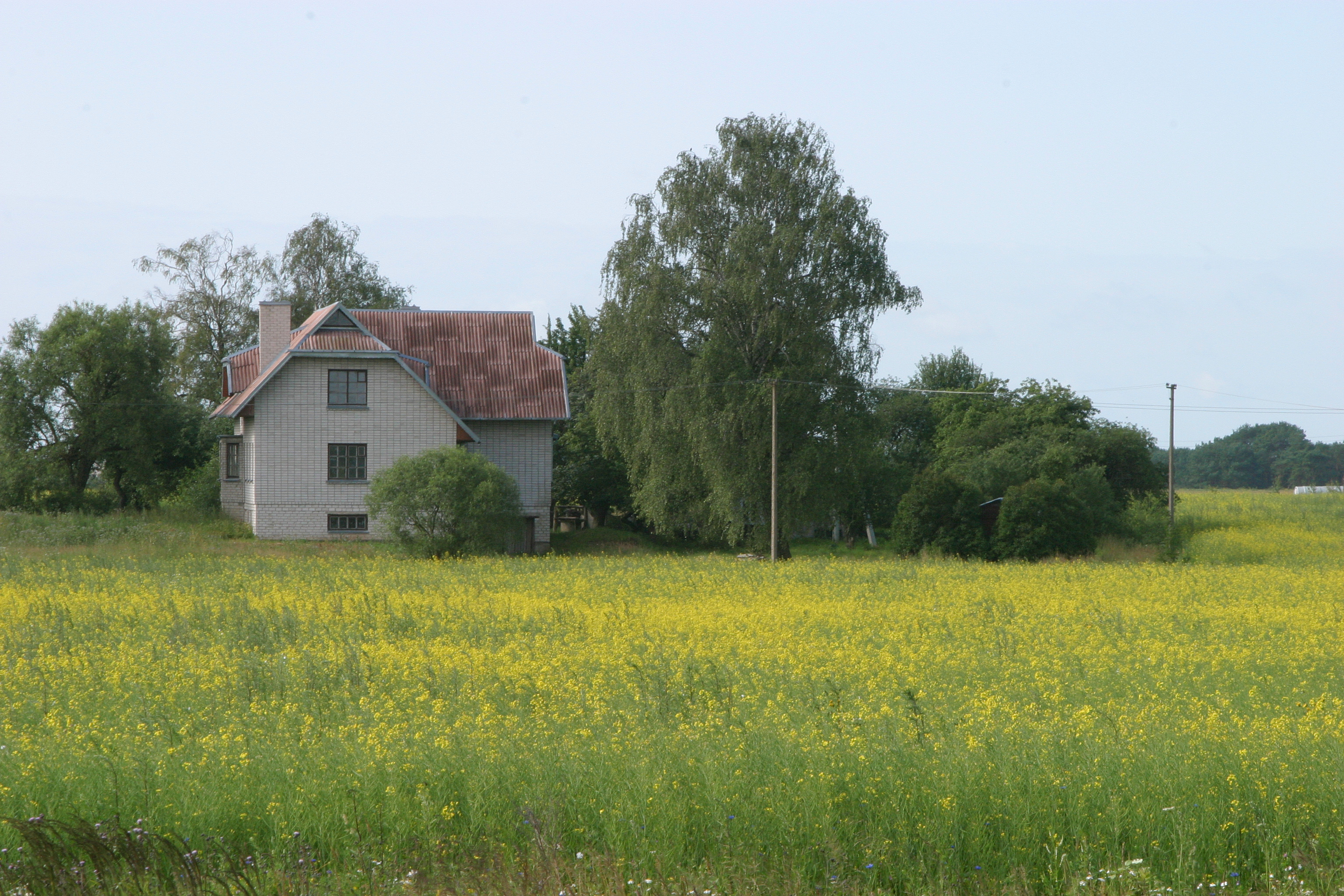 菜の花に囲まれた中に農家がひっそりと佇んでいます。