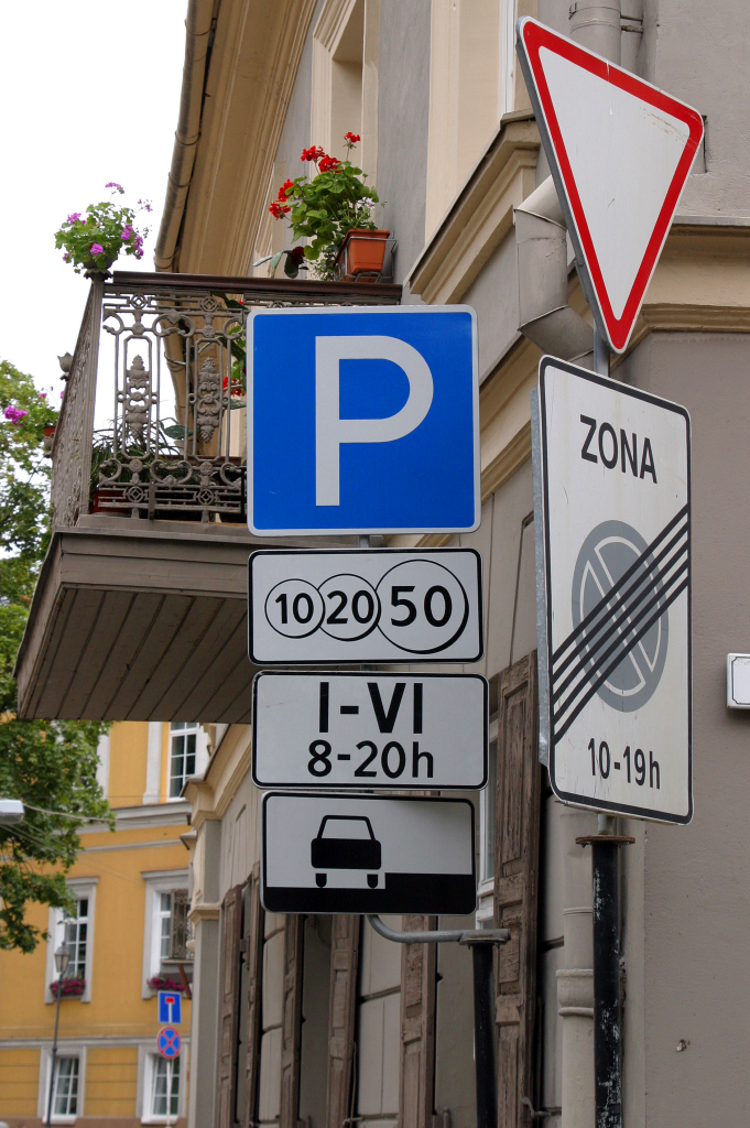 リトアニアの道路標識です。ずいぶんたくさん付いていますね。