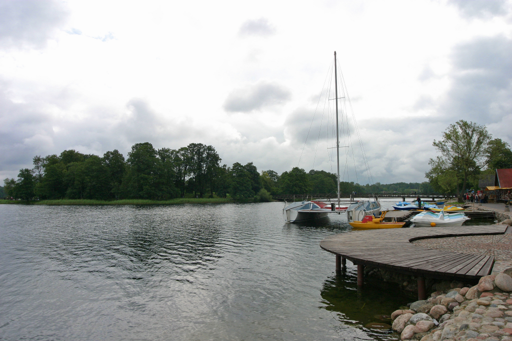 トラカイ城のボート乗り場です。ボートはイルカを象ったものがあり、目まで描いてあってとてもチャーミングでした。