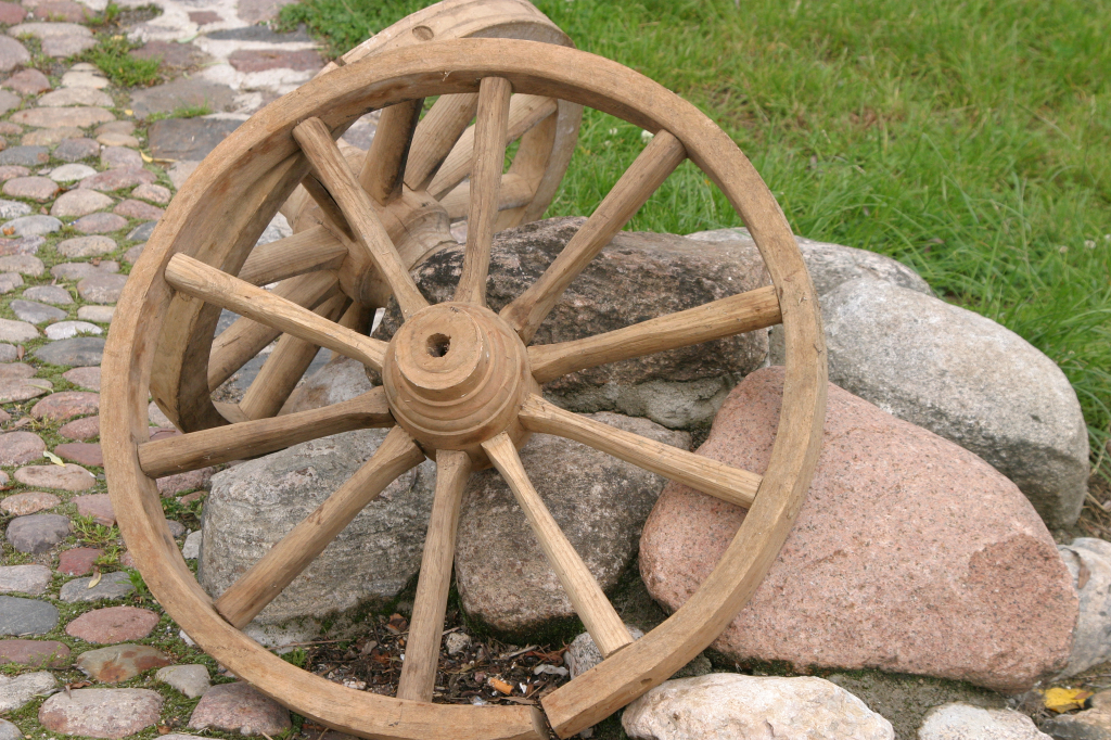 馬車の車輪です。オブジェとして配置してあるのかな。