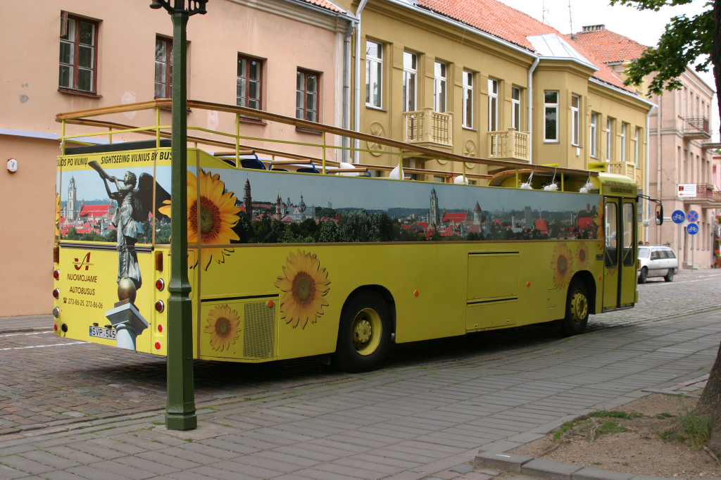 大聖堂で結婚式をしている夫婦のために用意された展望バスです。