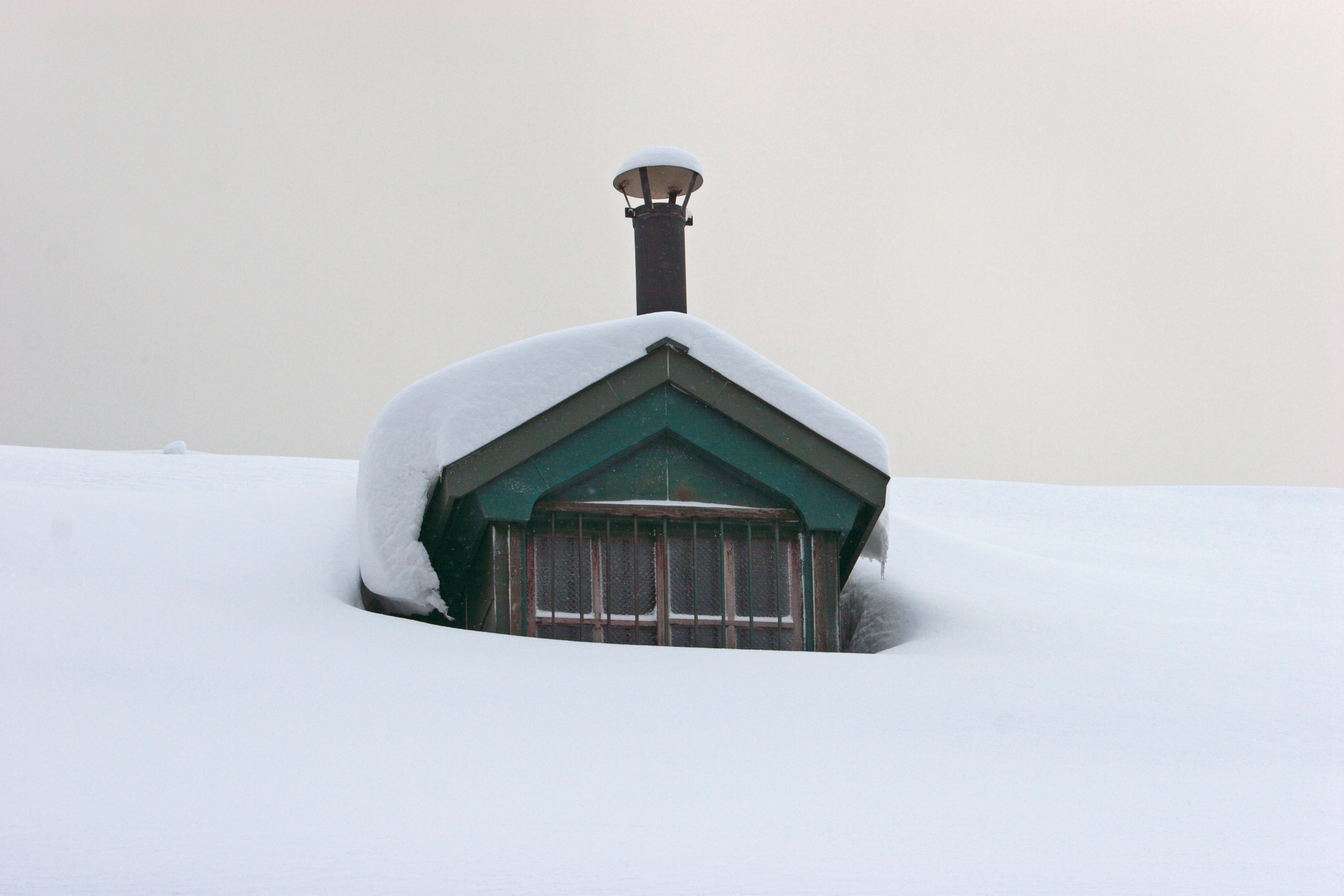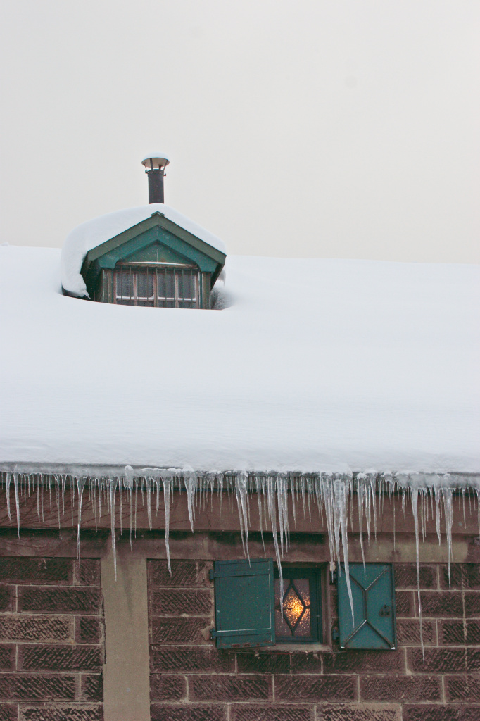 可愛い煙突の付いた屋根には、ぎっしり雪が積もっています。