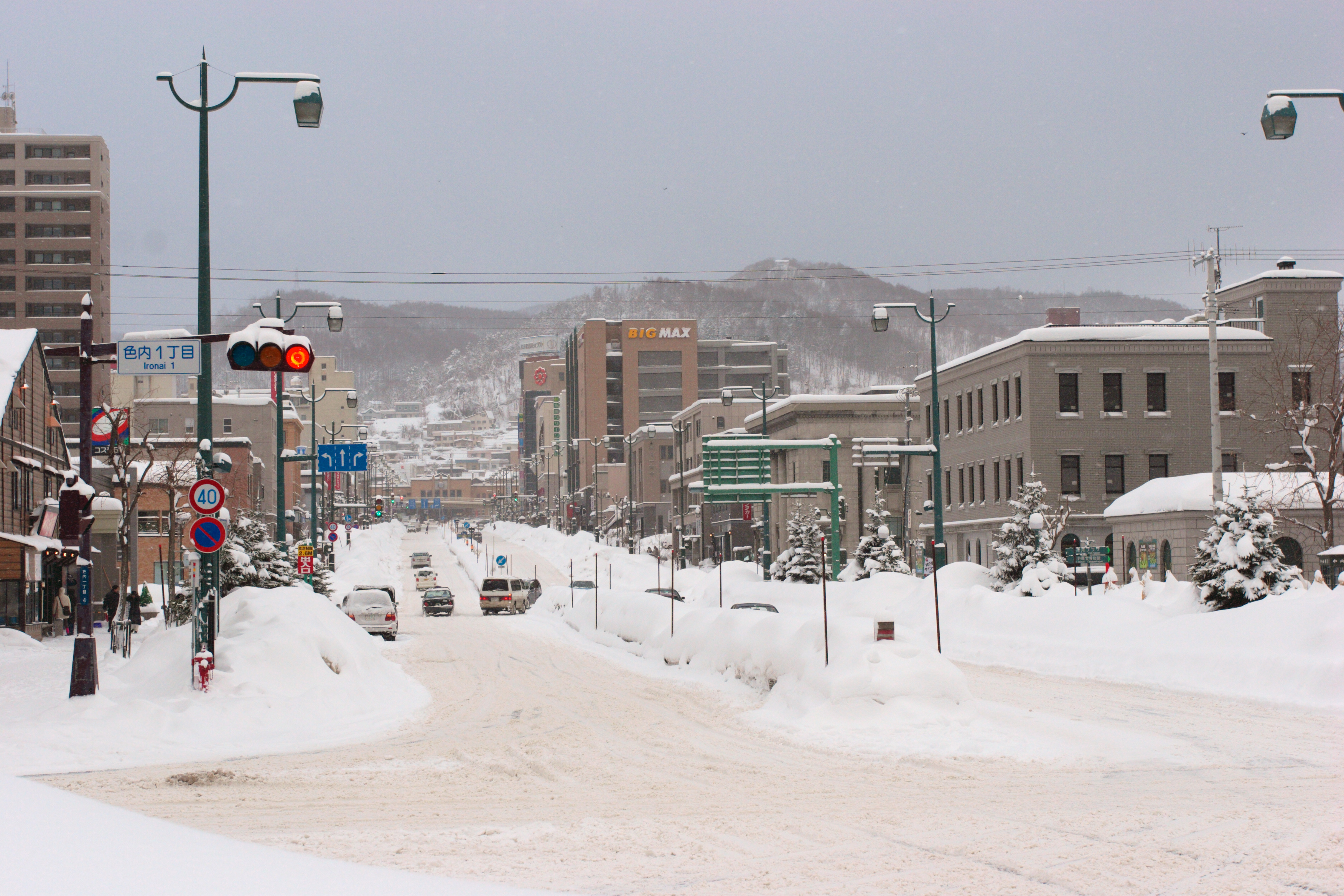 すっぽりと雪に覆われた小樽市街です。ちょうど正面奥が小樽駅になります。