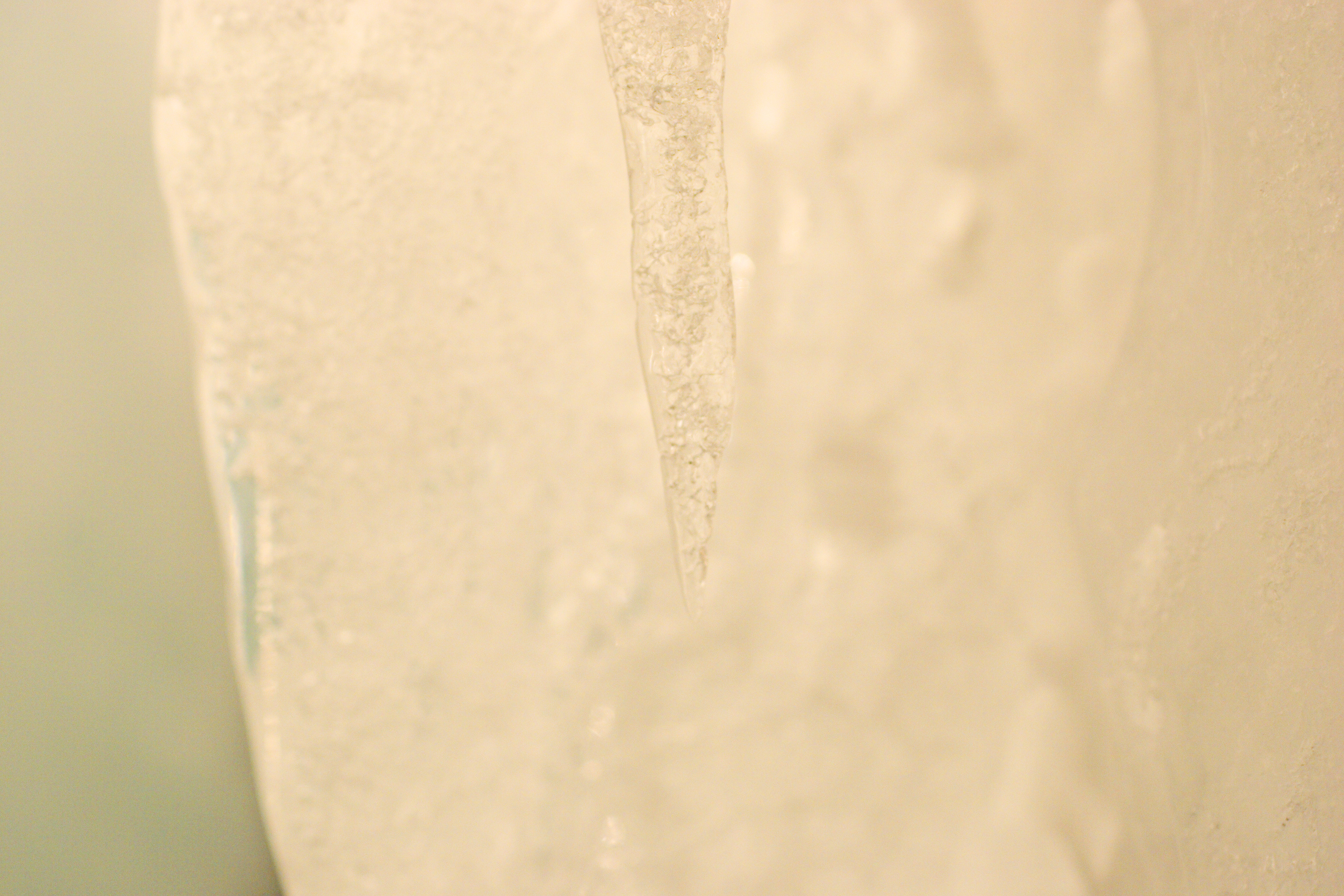 凍った柱に雪が吹きだまりになって付着している様子です。