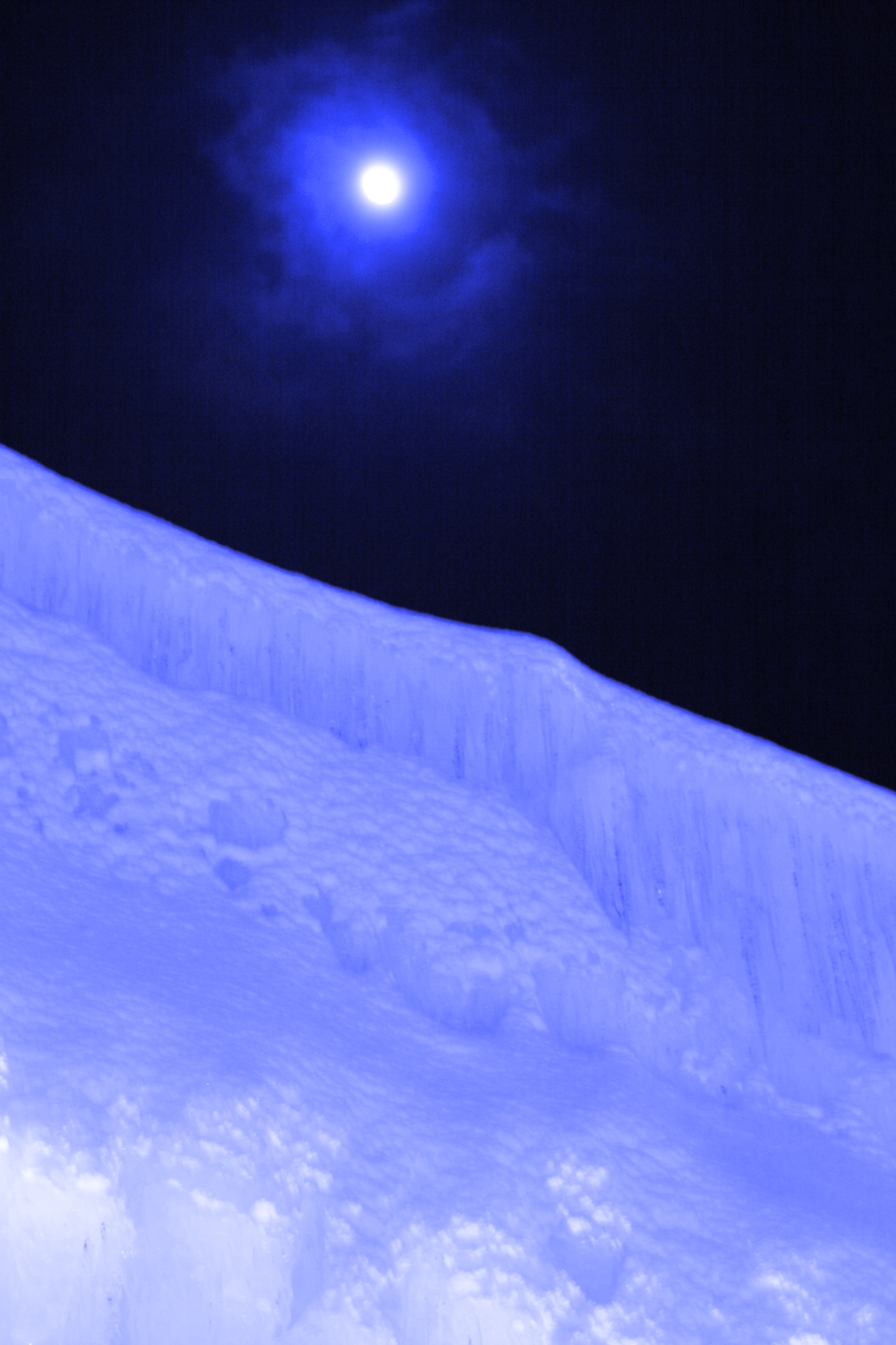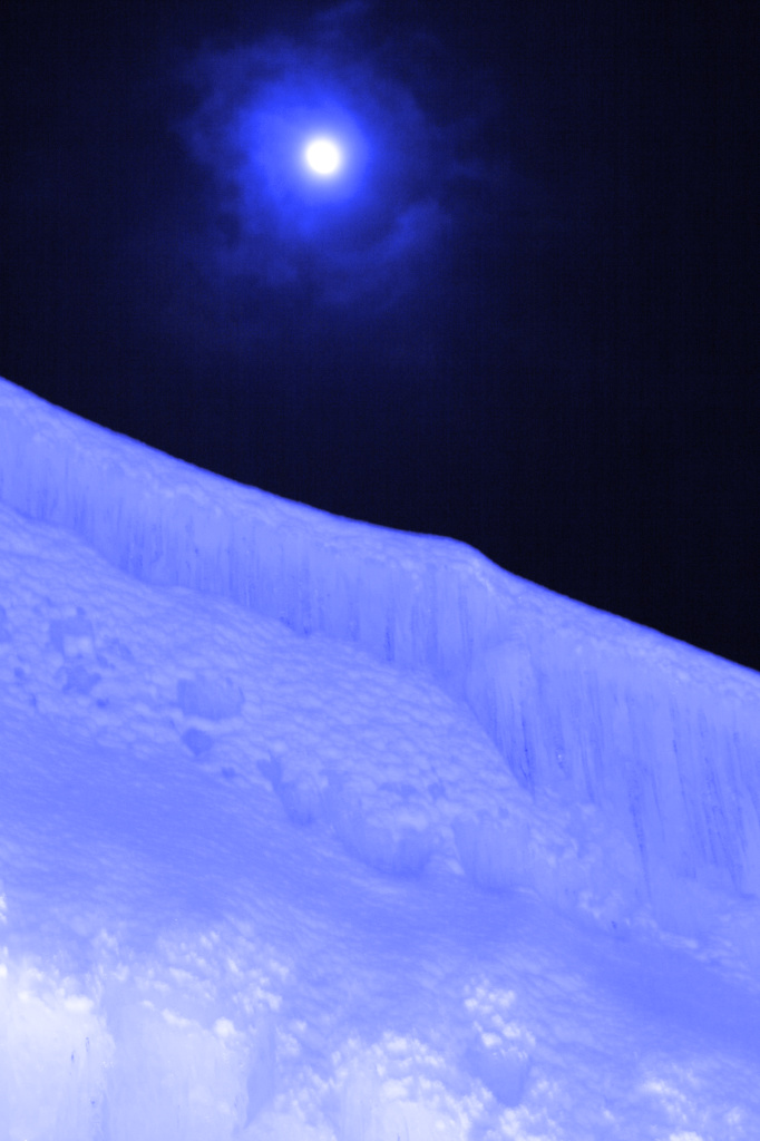 氷雪の壁の上に冷たく降り注ぐ月光。