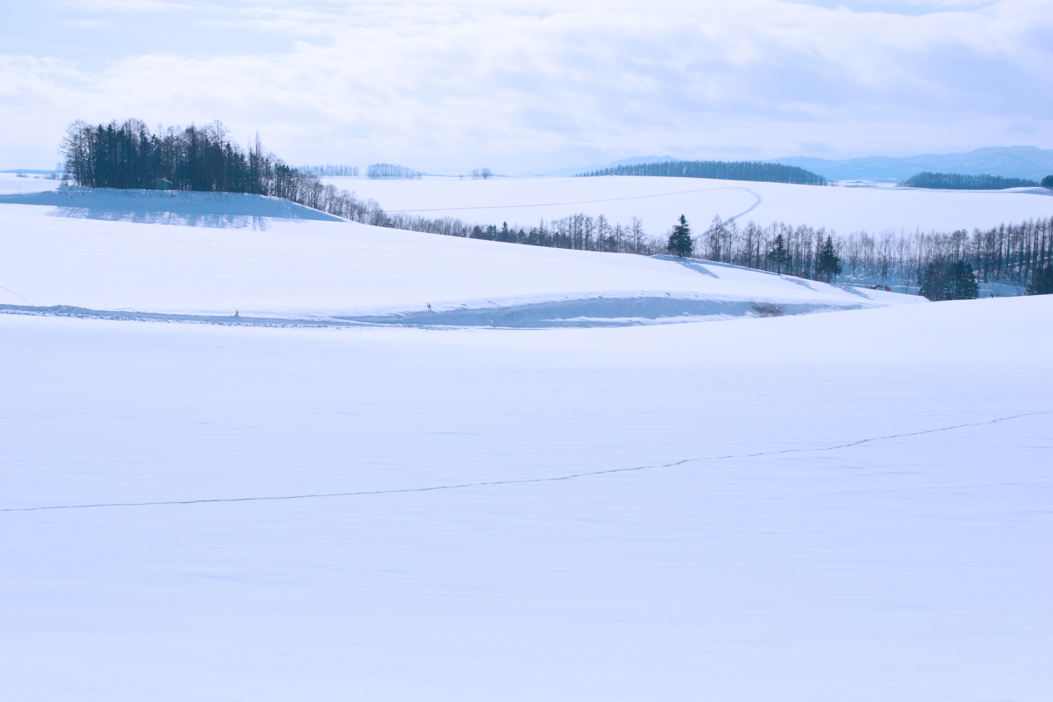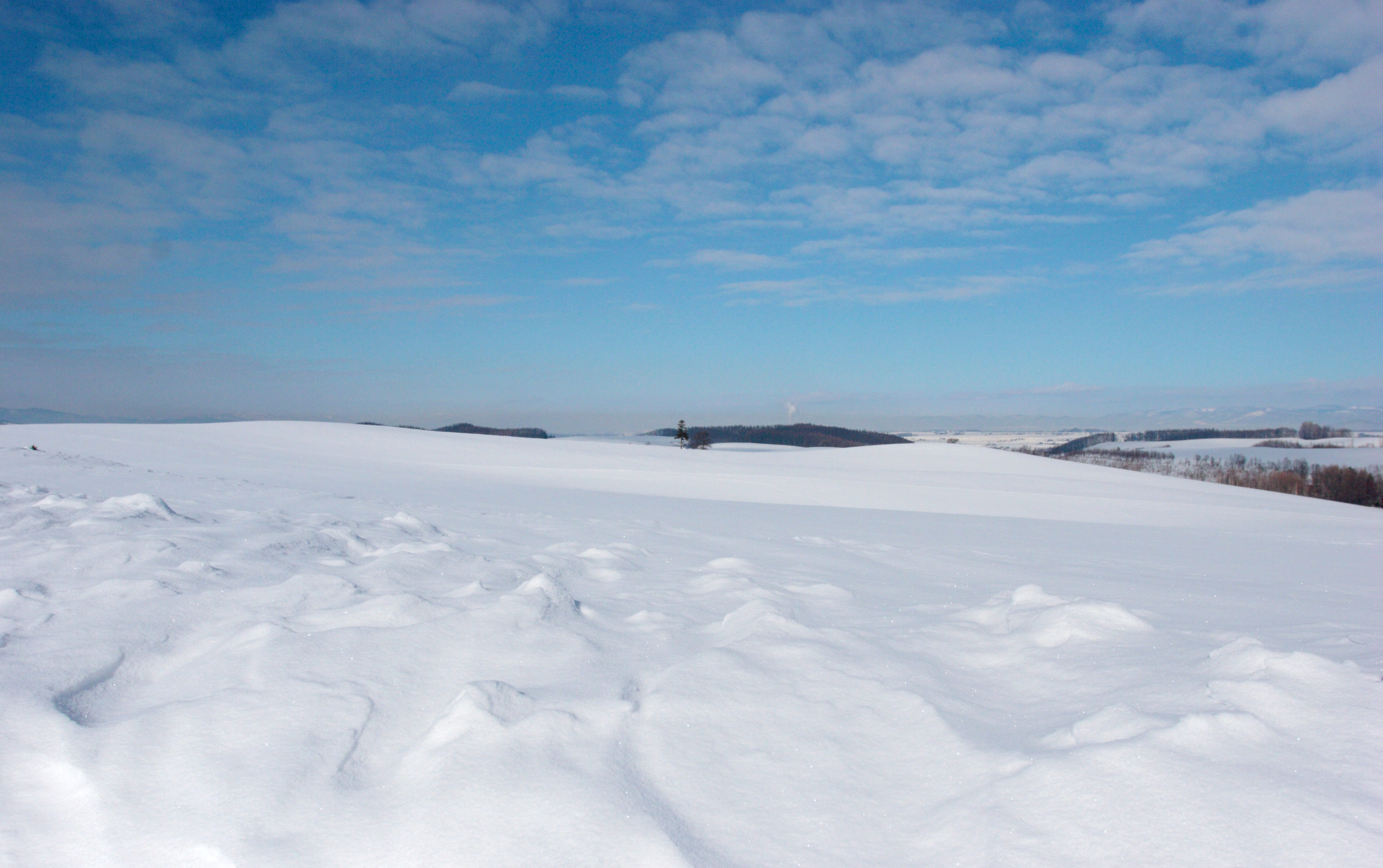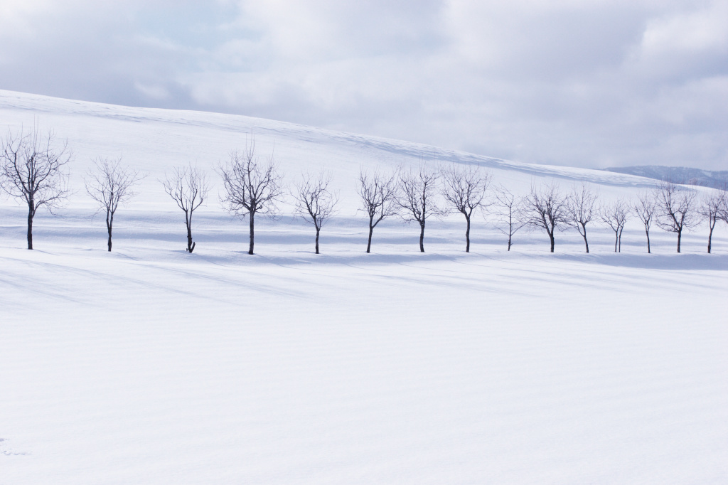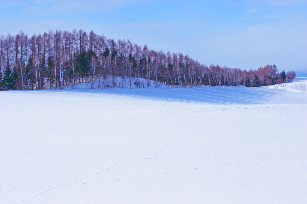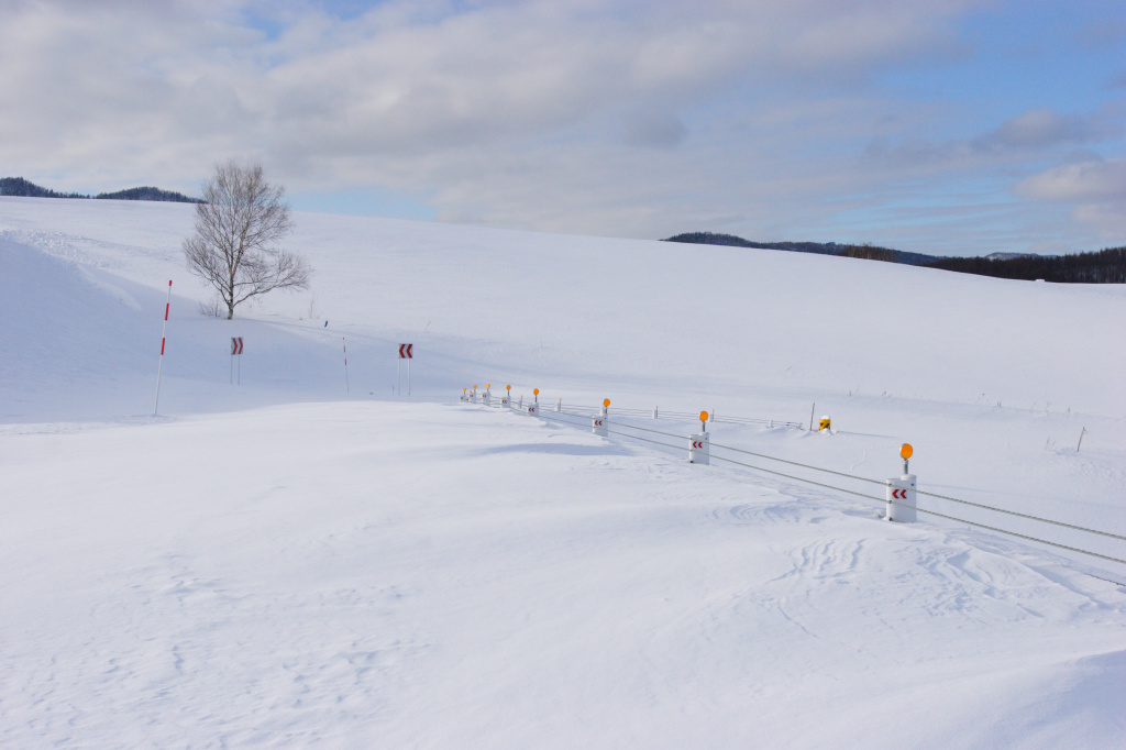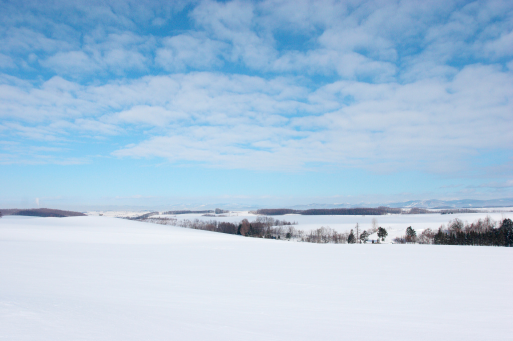 地平線まで遙かに続く雪原。北海道ならではの風景です。