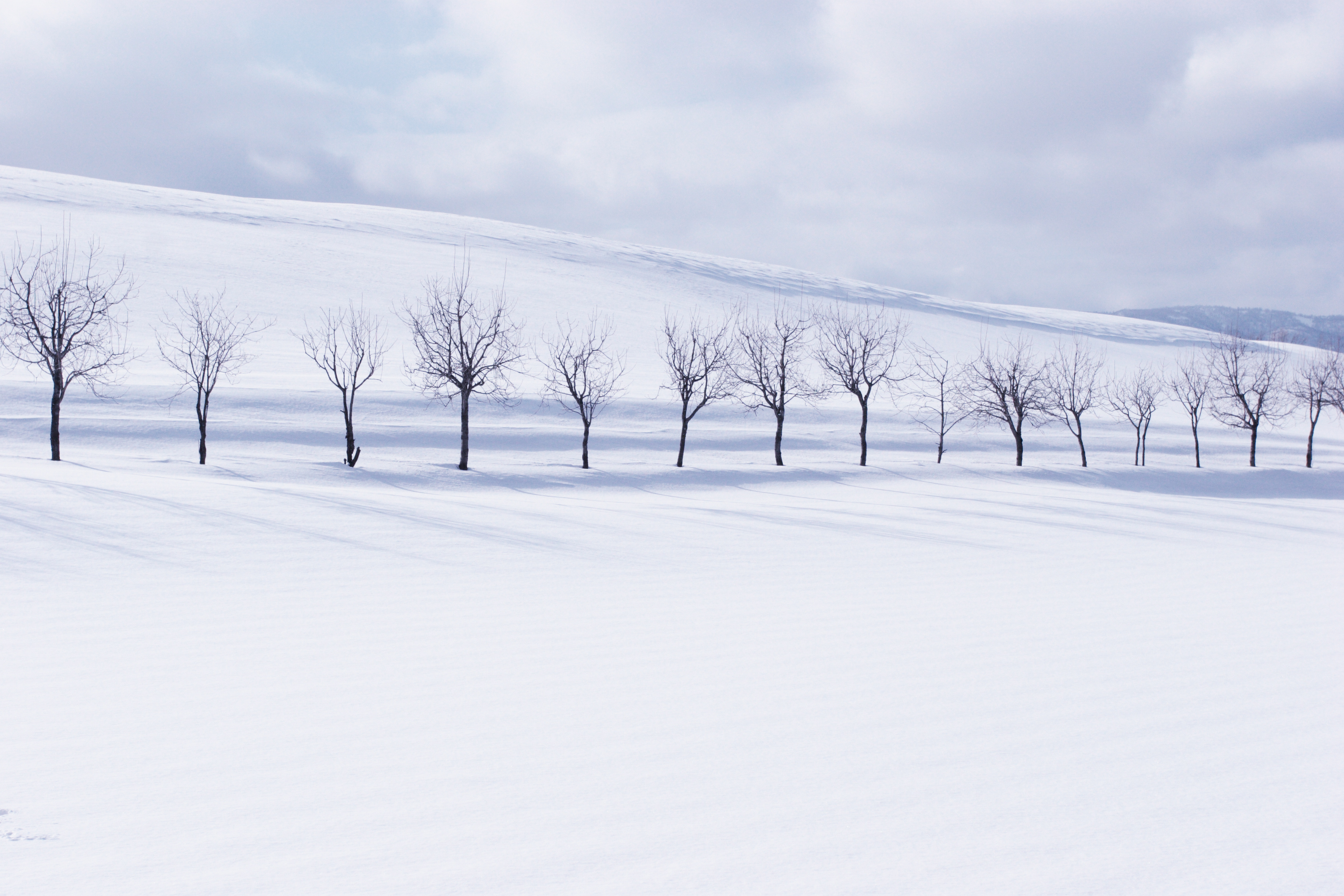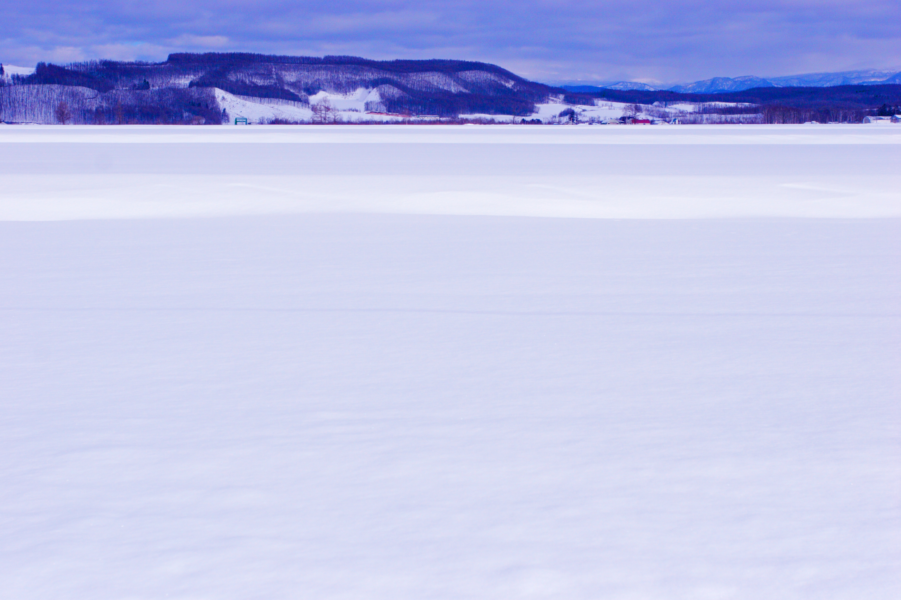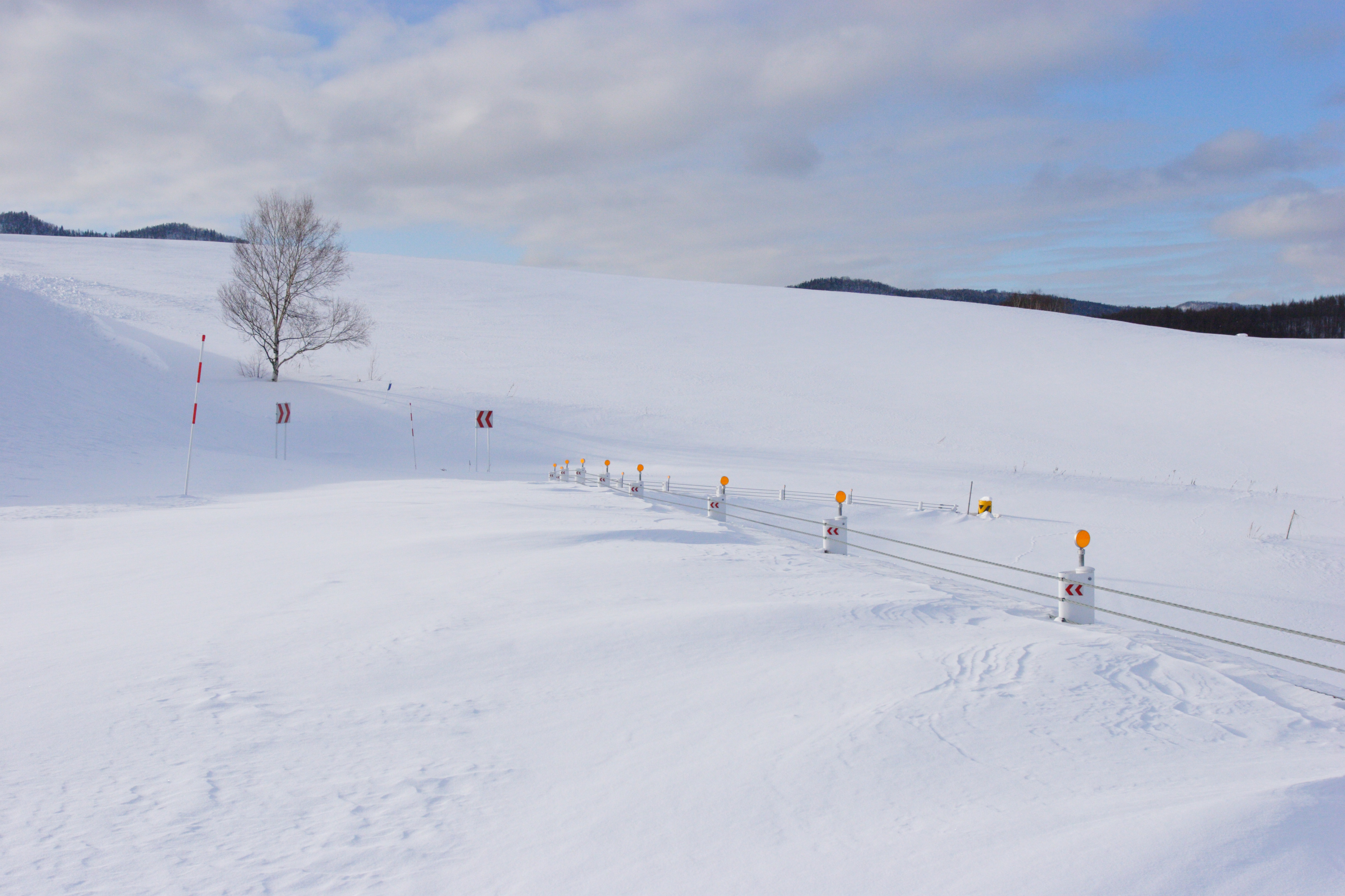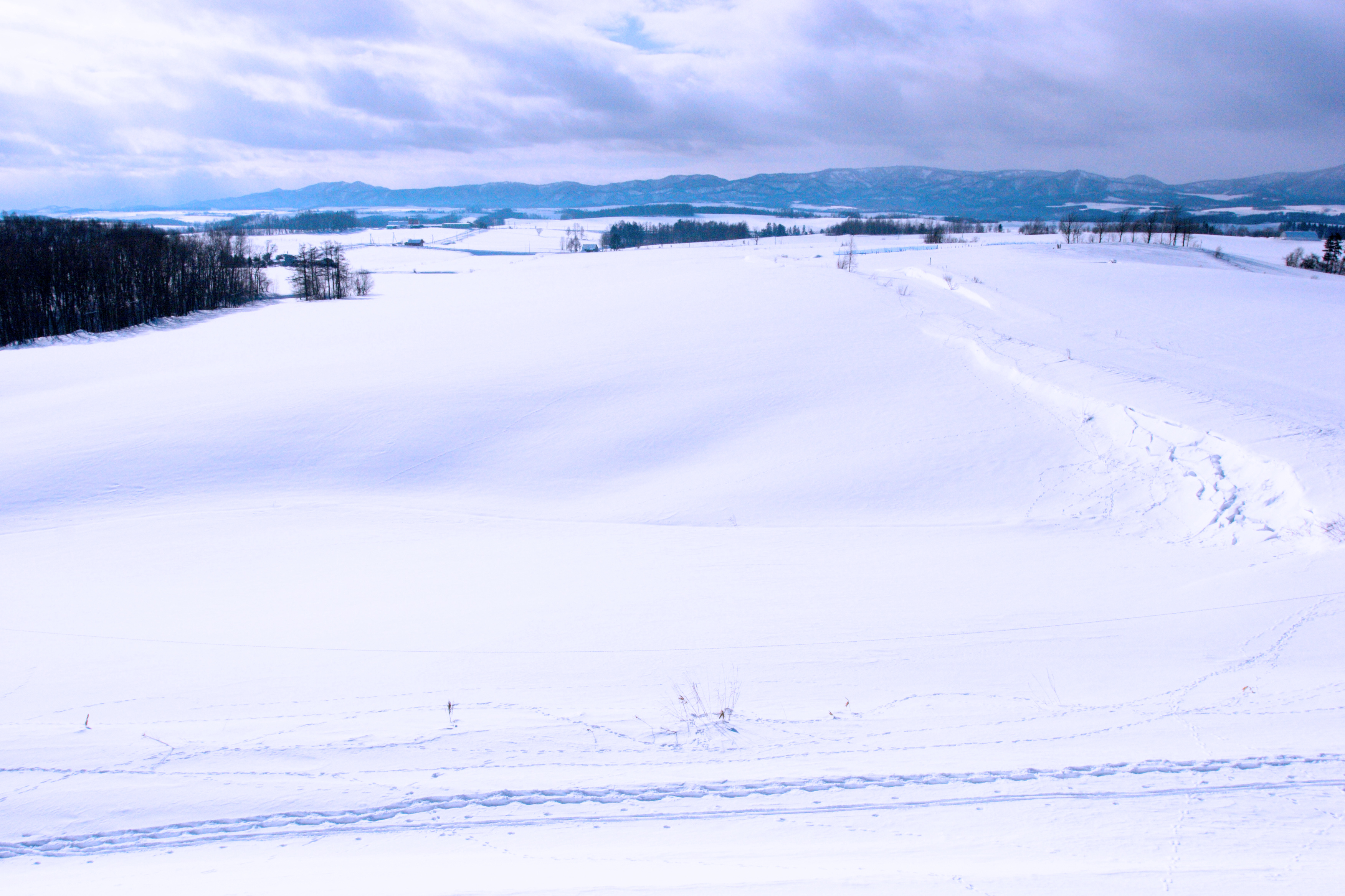 地平線まで遙かに続く雪原。北海道ならではの風景です。
