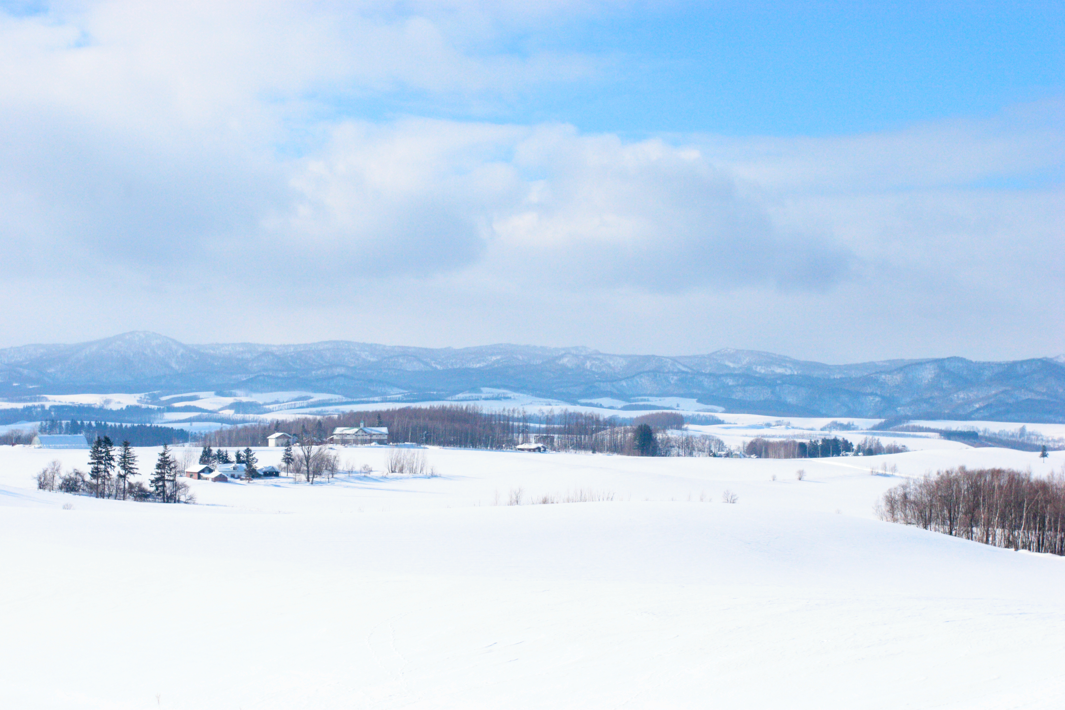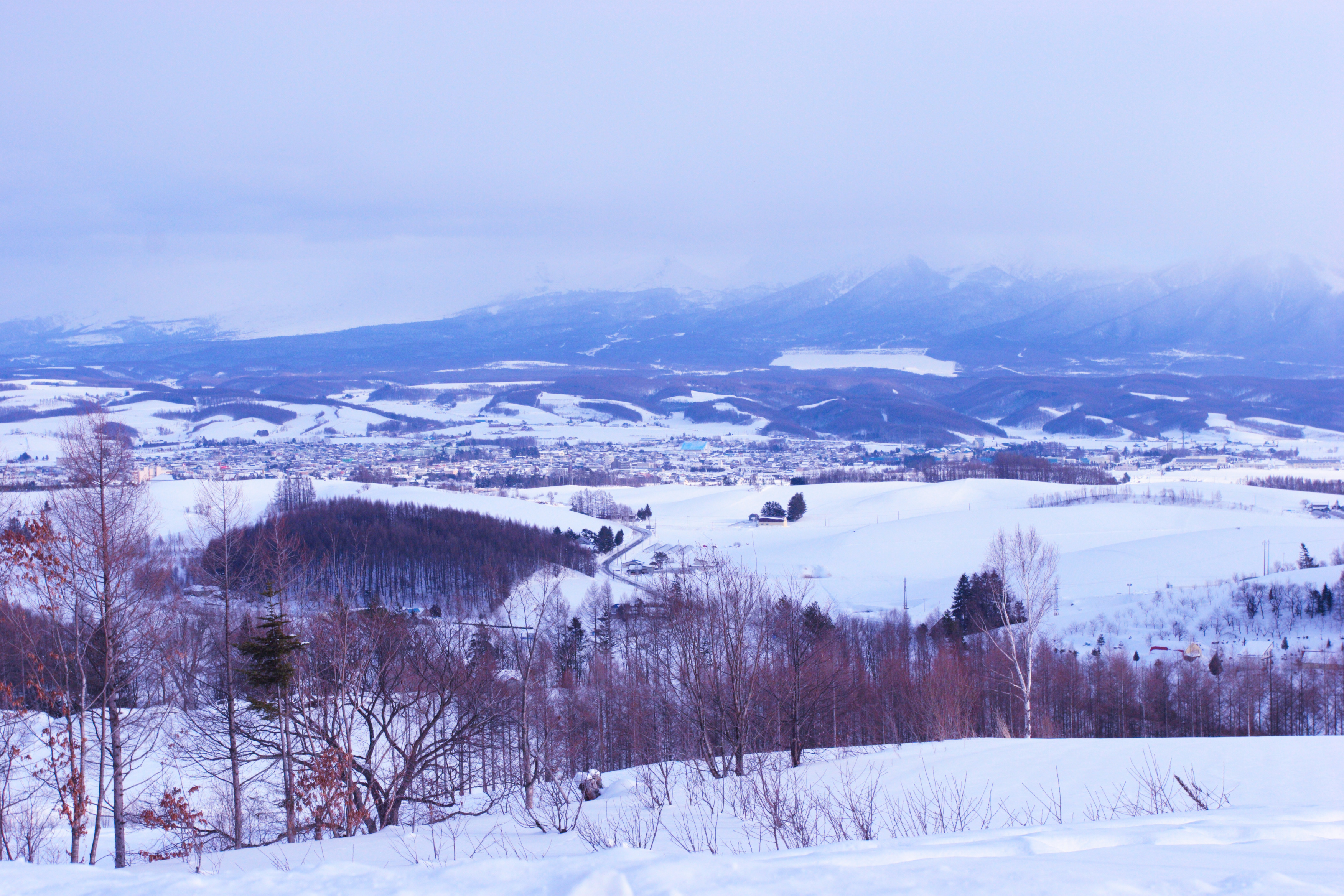 白いお化粧をした上富良野の集落です。