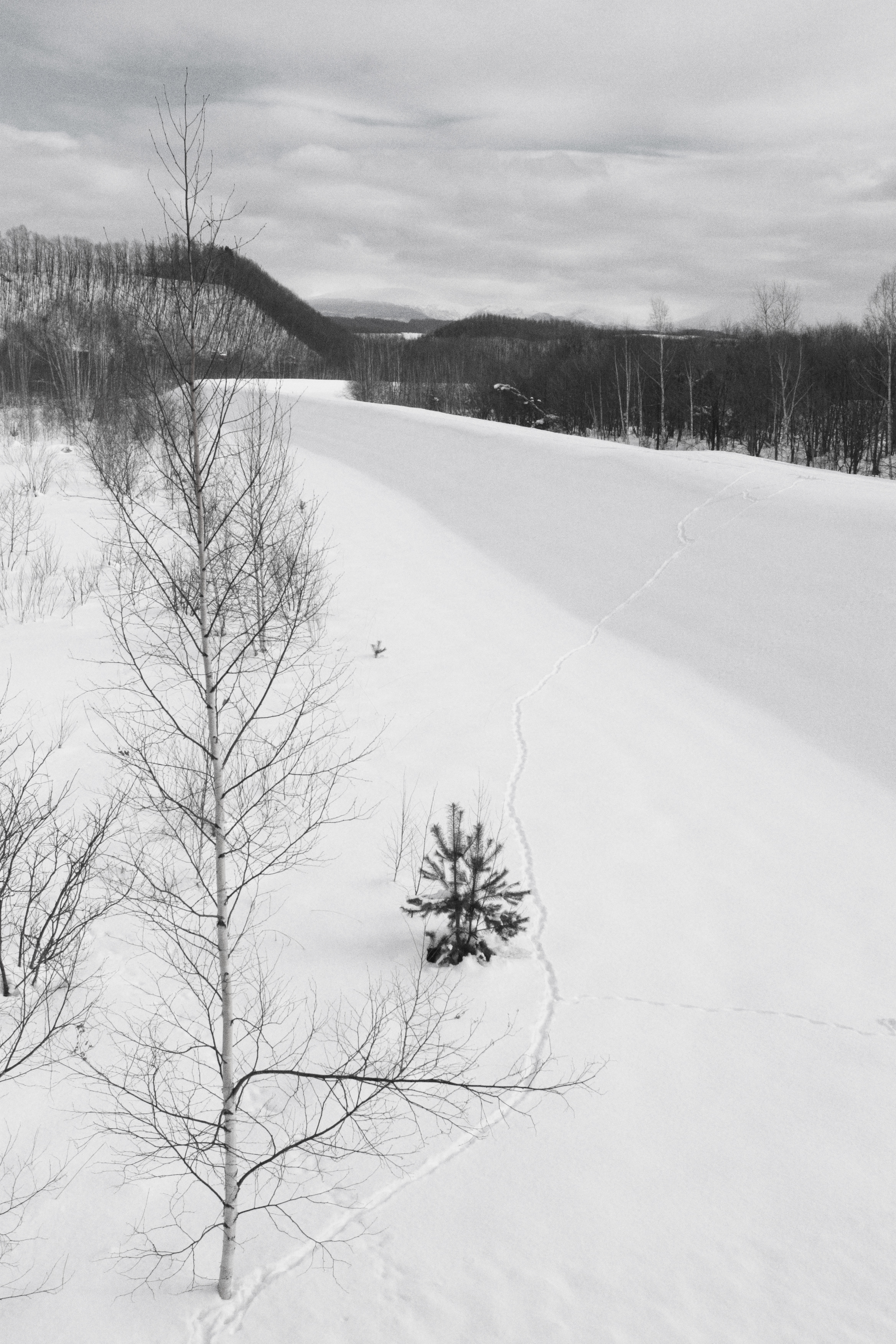 雪が積もって人間は誰も来ませんが、動物が通ったところにはちゃんと足跡が付いていました。