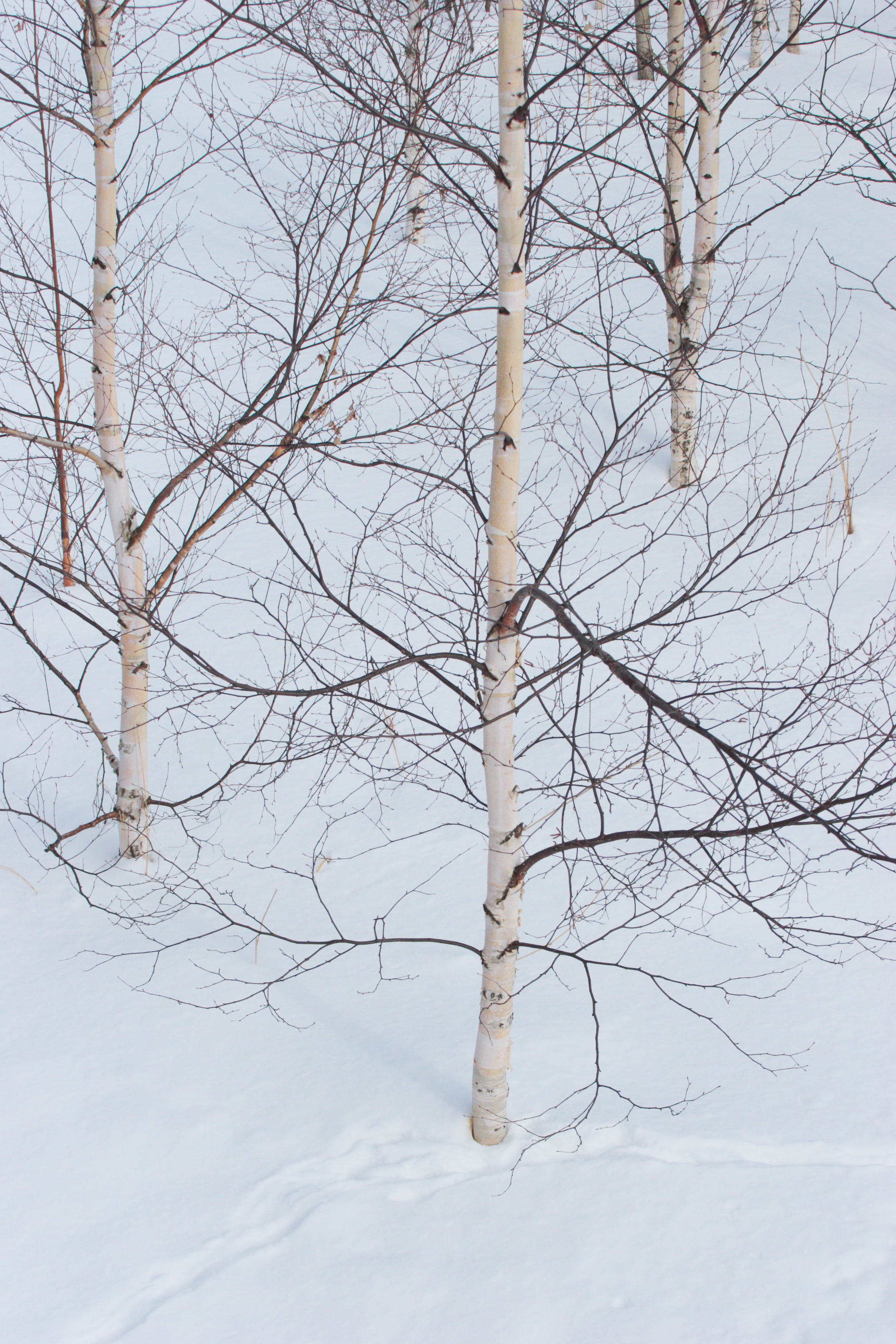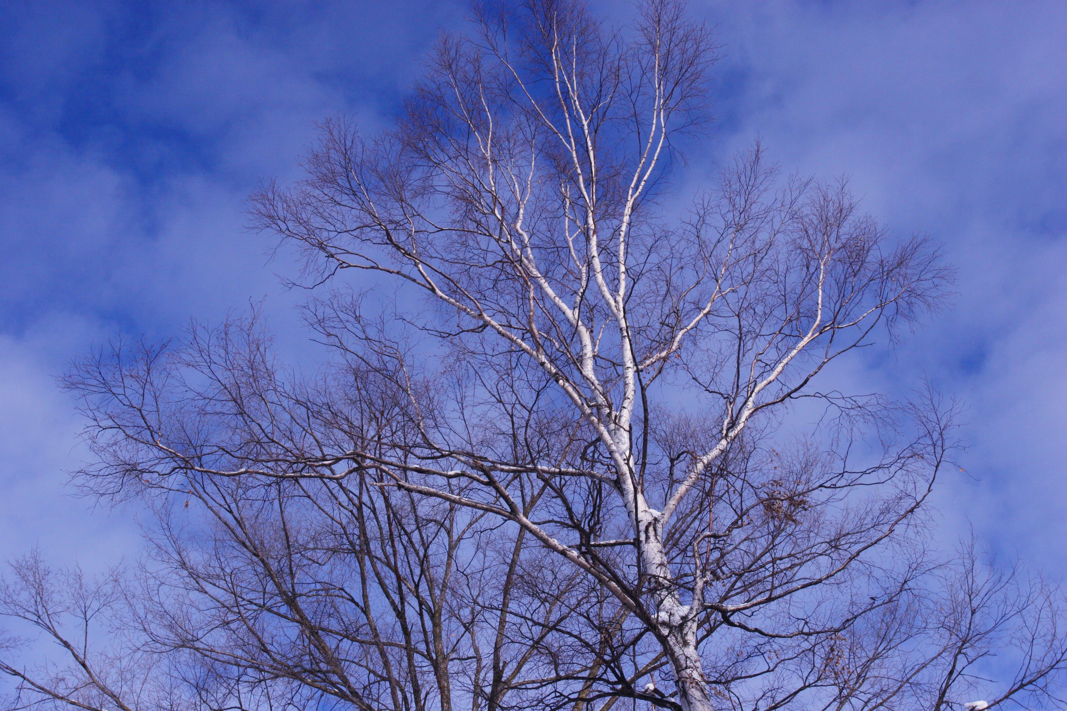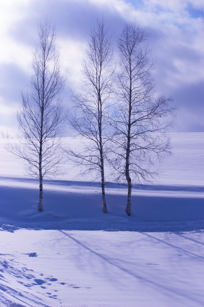 雪の中で見る白樺はとても綺麗です。