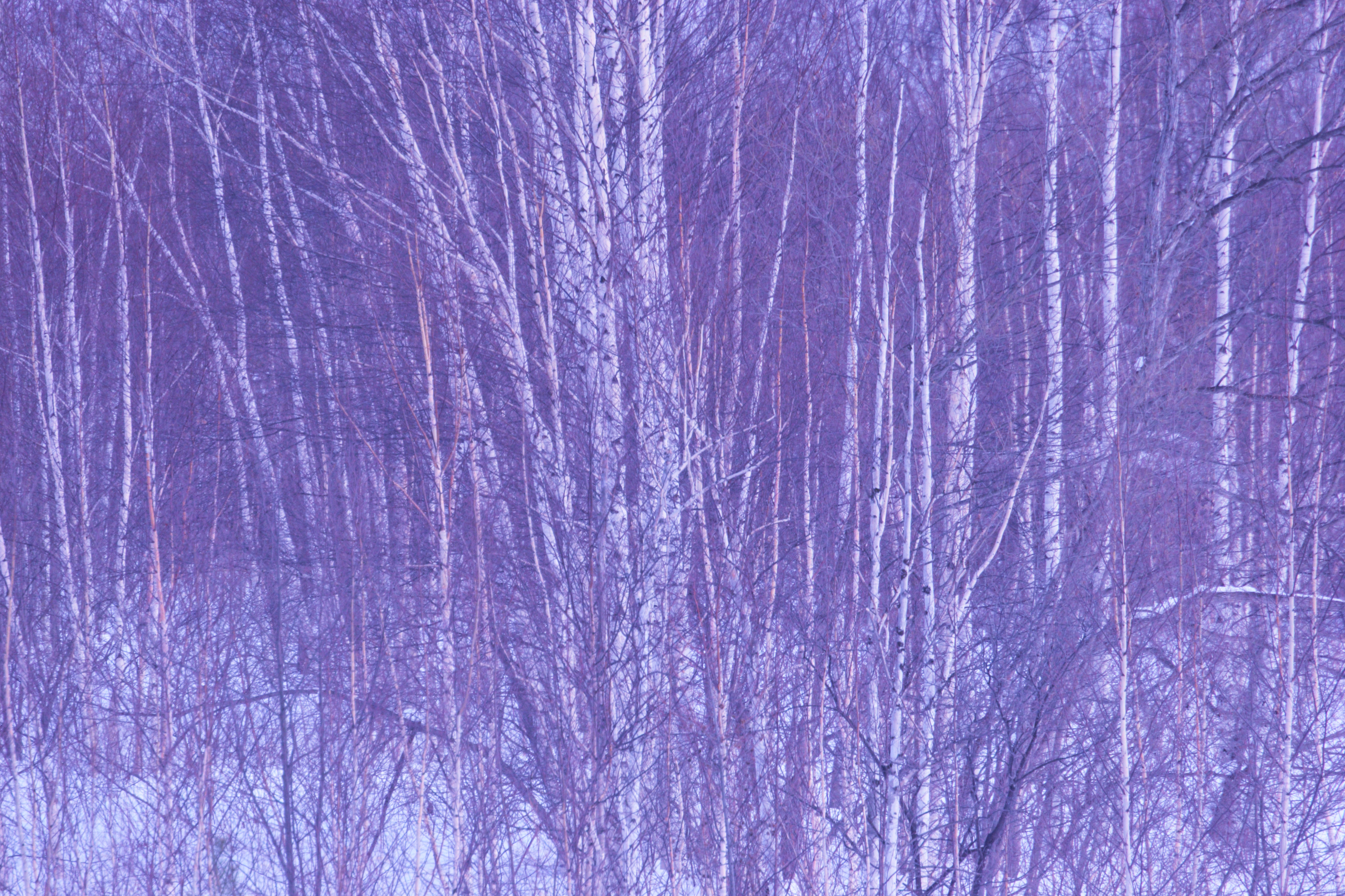 雪から生え、青い空に向かって伸びた白樺の並木です。
