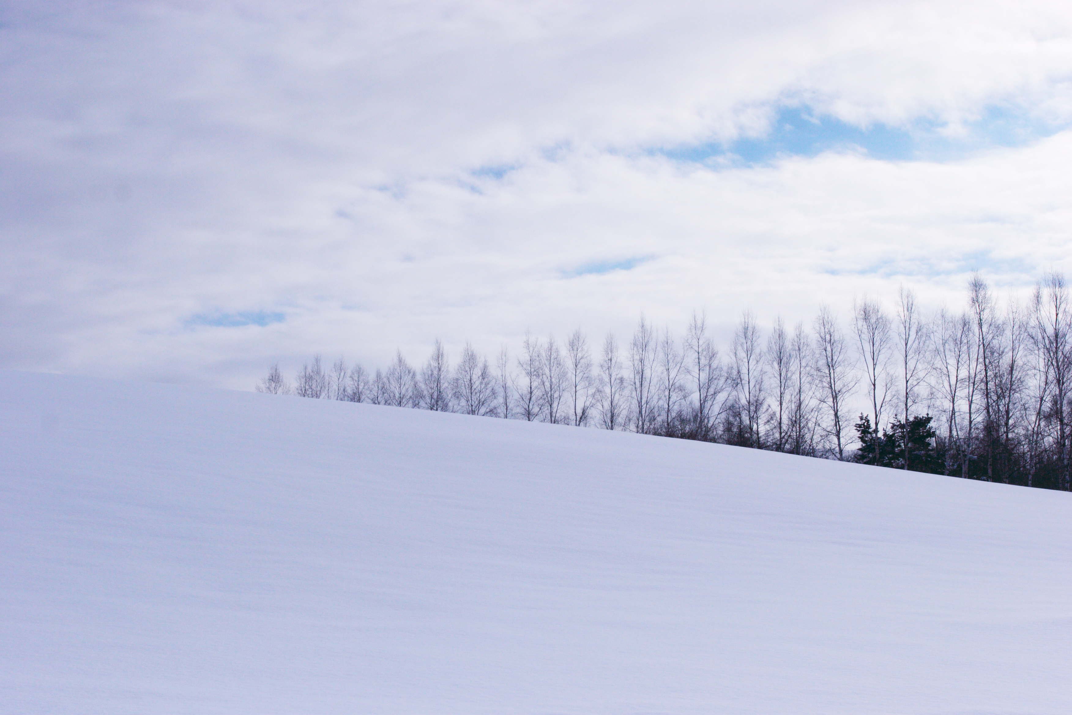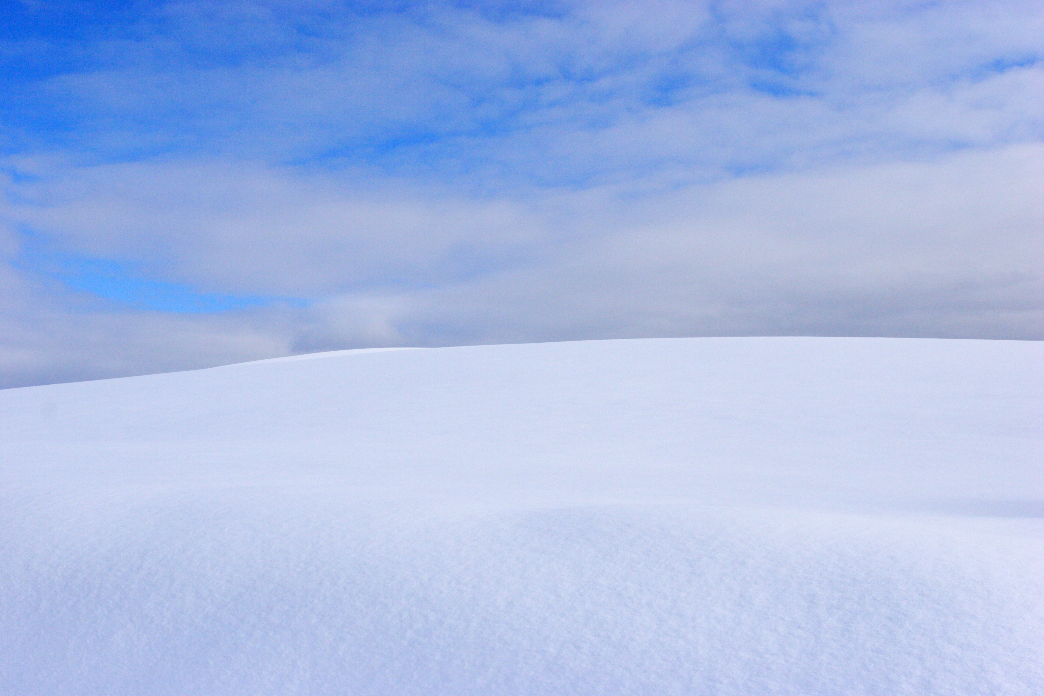 雪の丘を下から見上げてみました。空と雪しかありません。