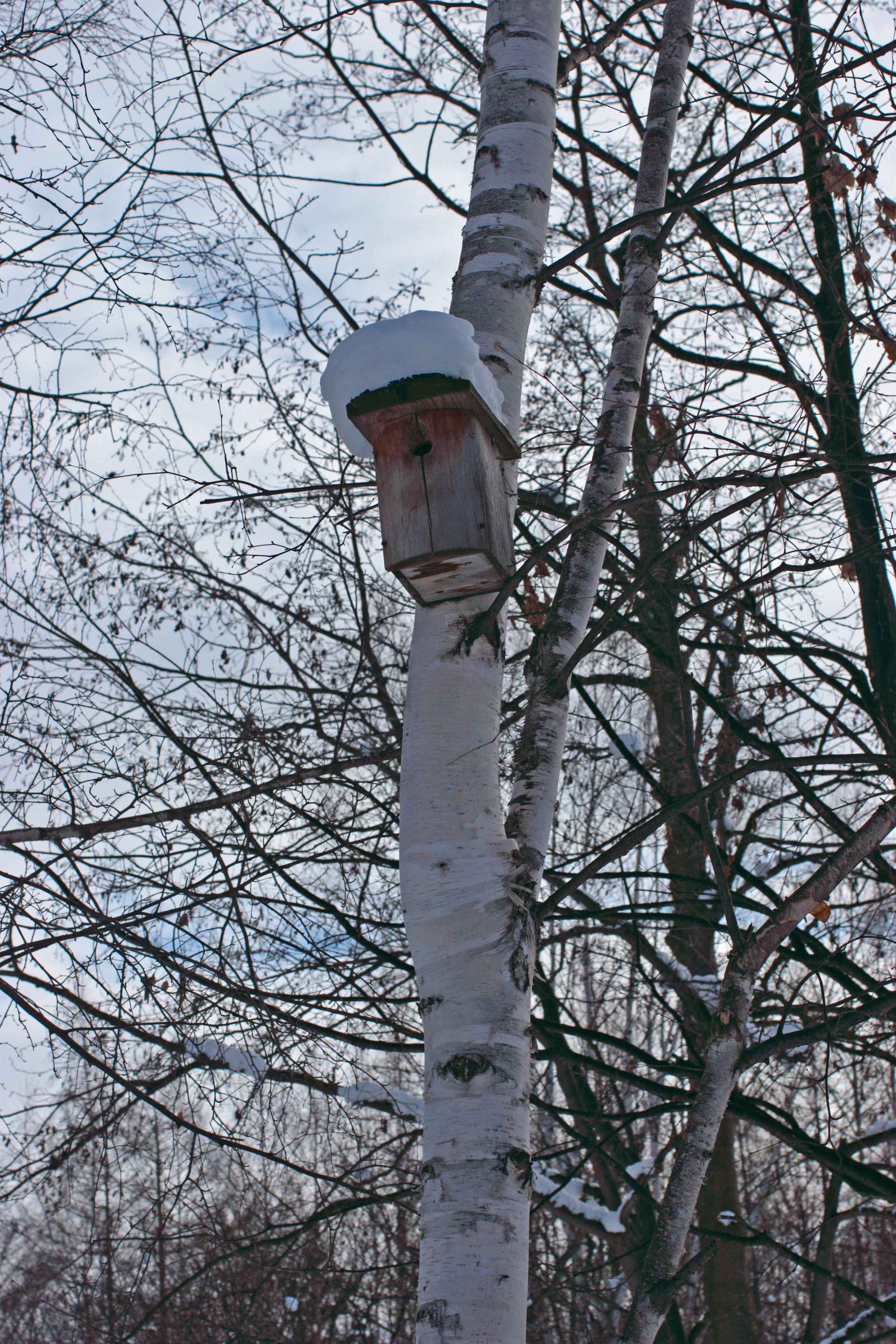 巣箱の上にも雪が積もっています。雪国は巣箱も丈夫なのでしょうか。