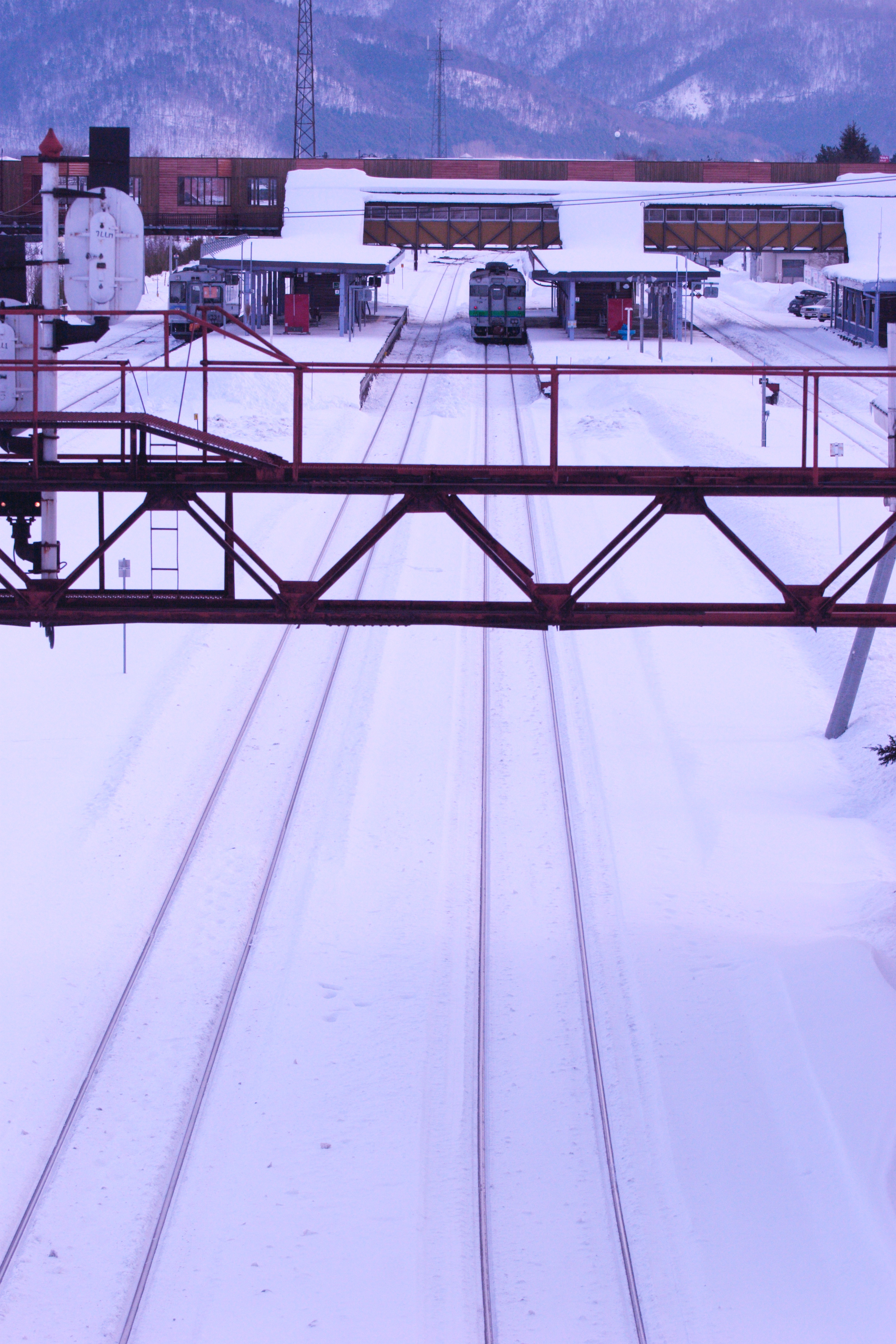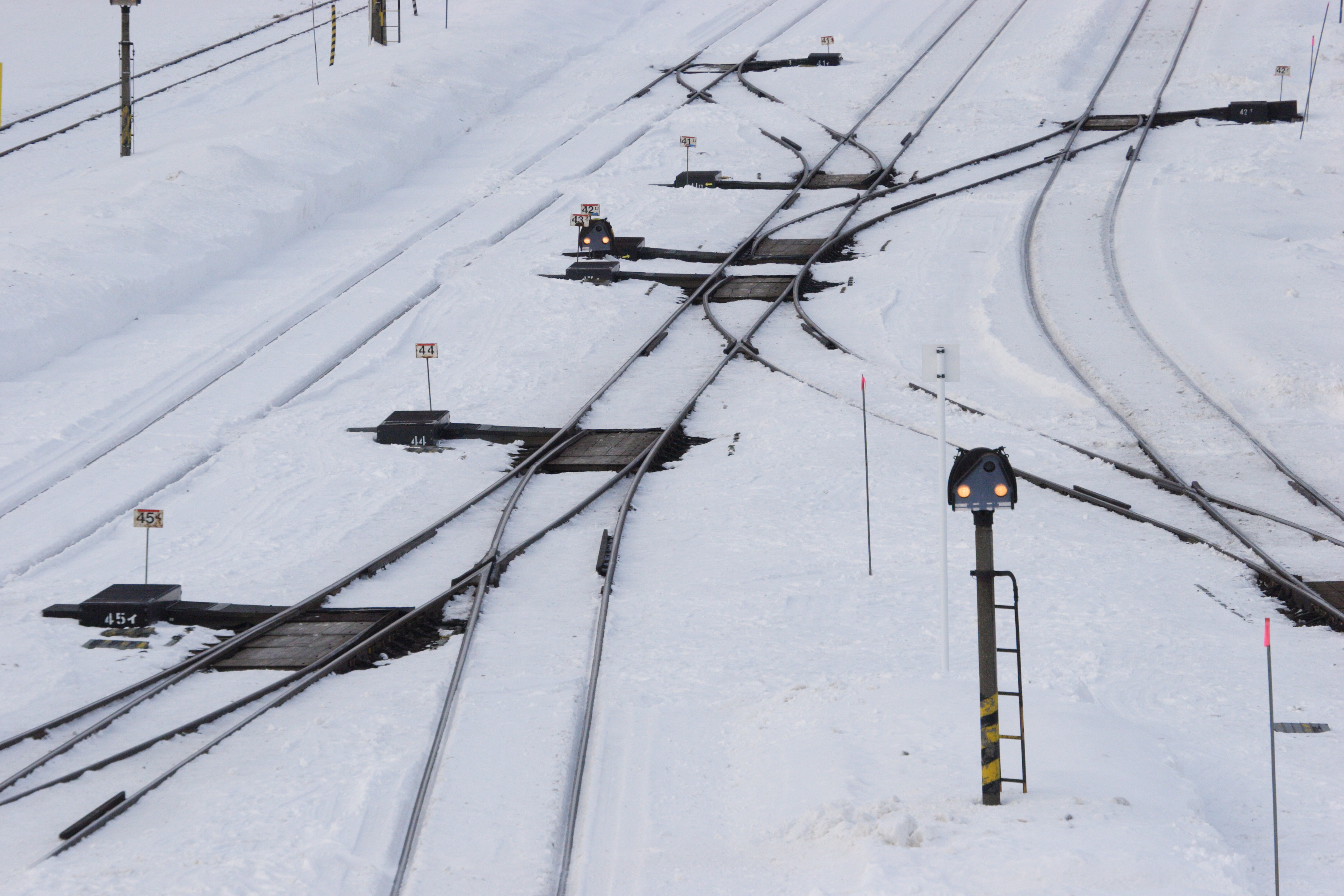 ポイントの可動部分は、雪が溶けるような仕組みが組み込まれているようです。右のレールが平野方面、左のレールが山脈方面に続いています。どちらに行きますか?