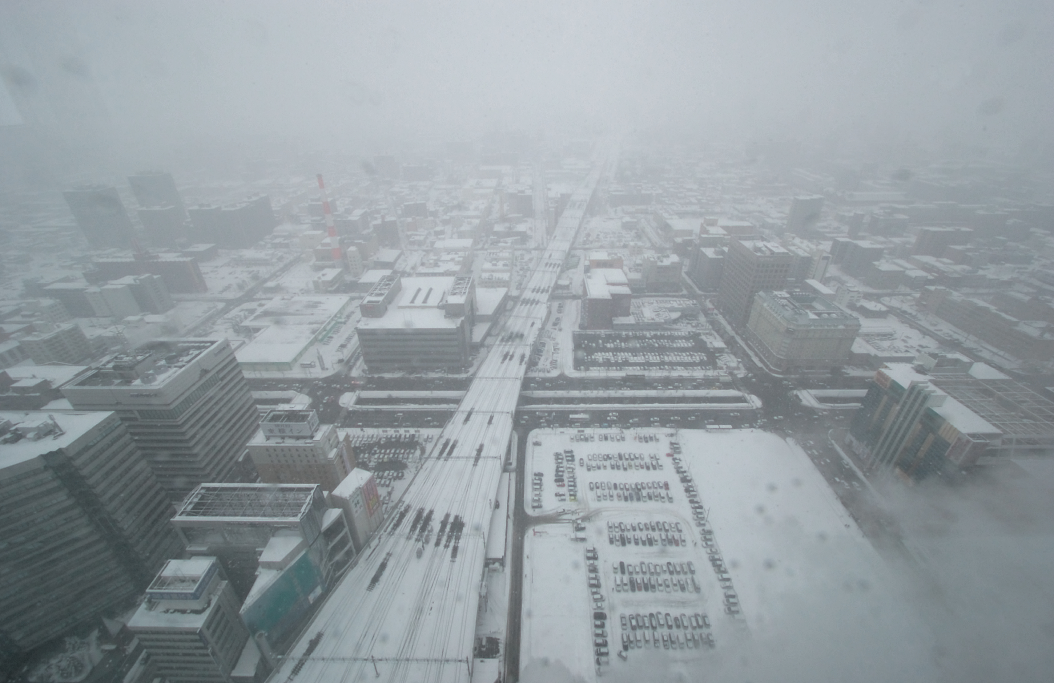 吹雪の札幌市です。JR札幌駅の上から撮影しました。