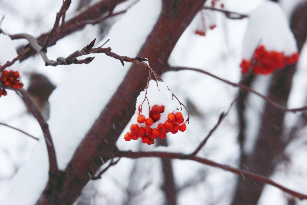 雪の中でも赤い実を付けるナナカマドです。