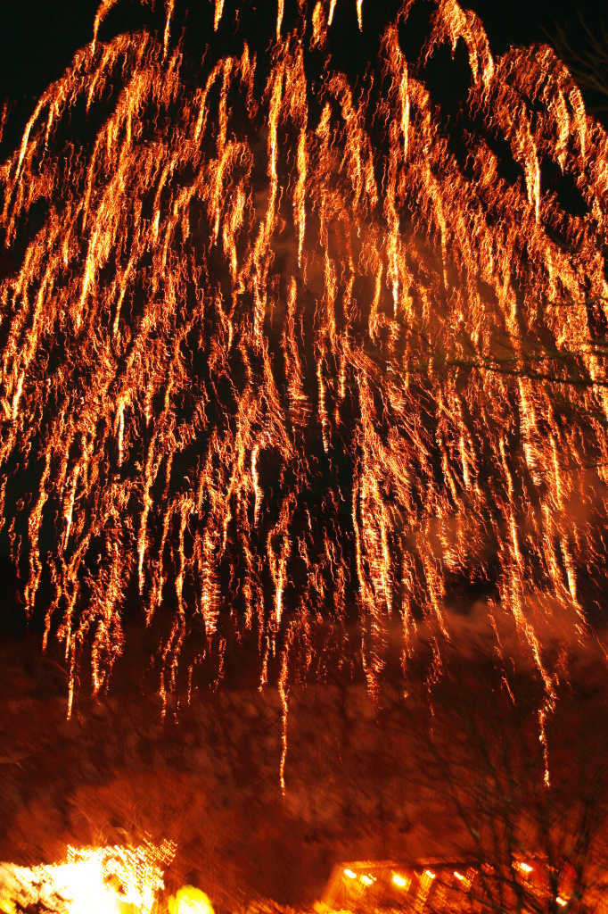 燃える炎が幾筋も残る巨大な花火です。