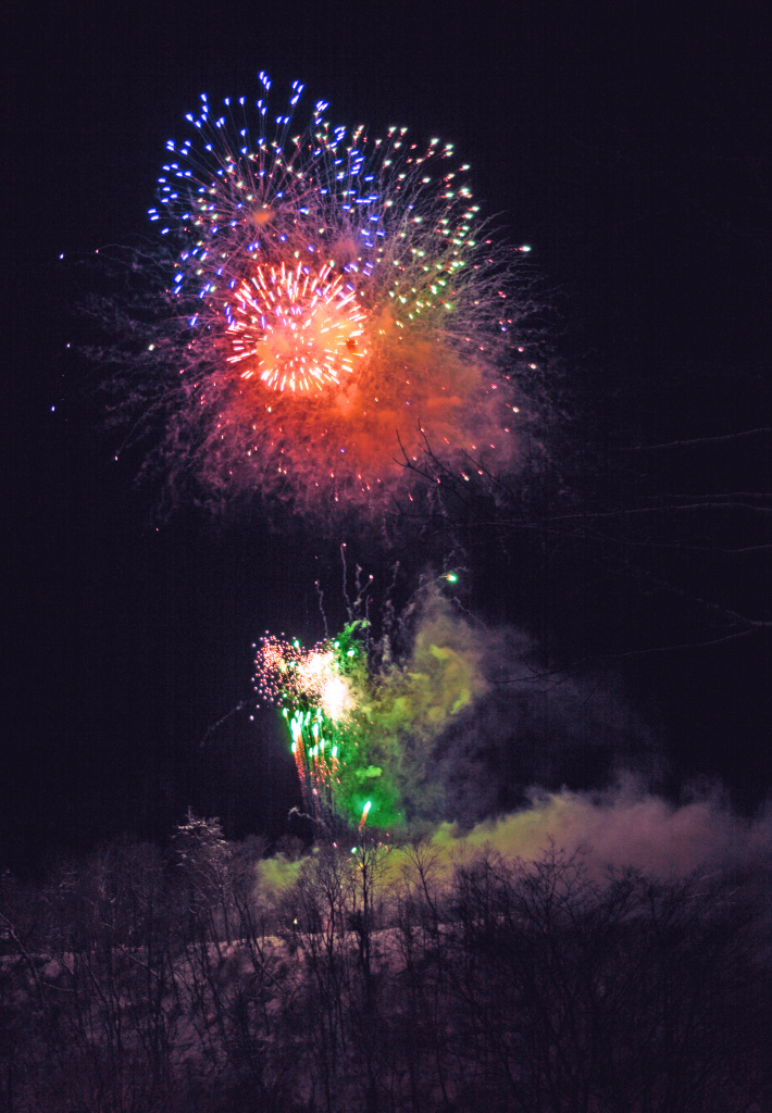 支笏湖畔で行われた真冬の花火大会です。雪山から、綺麗な花火が打ち上げられる幻想的な風景です。