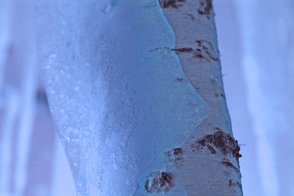 白樺も氷のコートを纏ってしまうほどの寒さです。