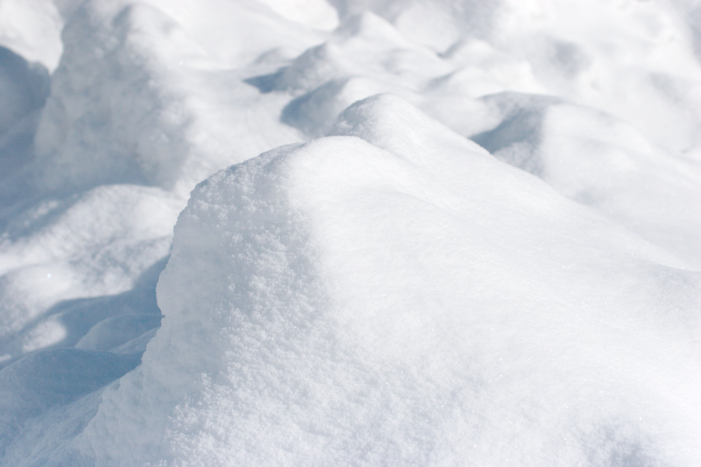 一面の雪です。こちらは太陽が出ているところなので、雪の結晶が輝いています。