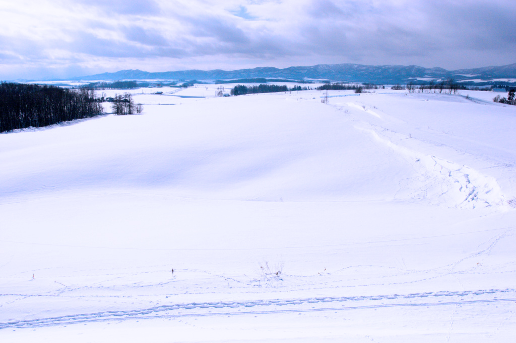 丘の上からは、美瑛の雪原を一望できます。
