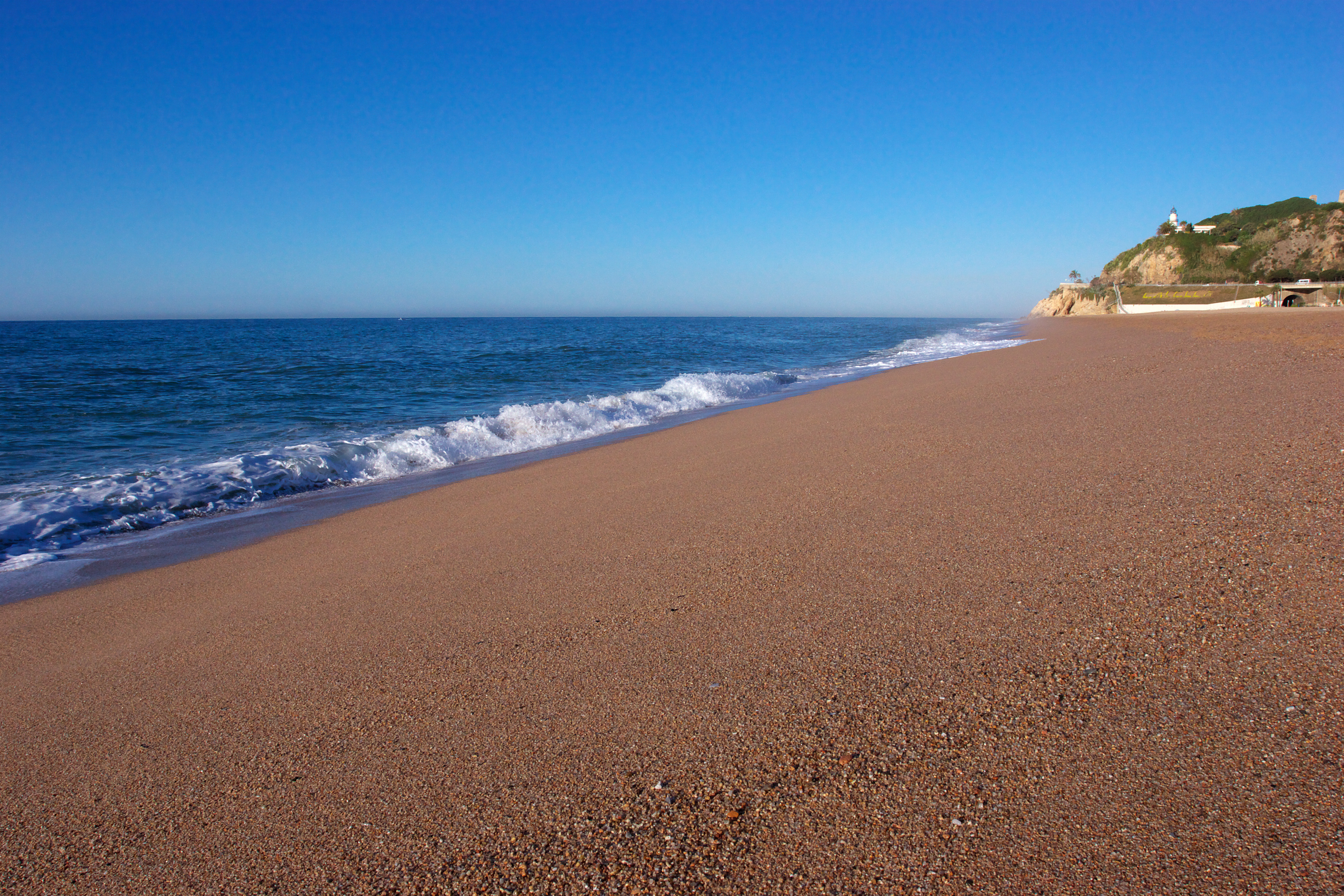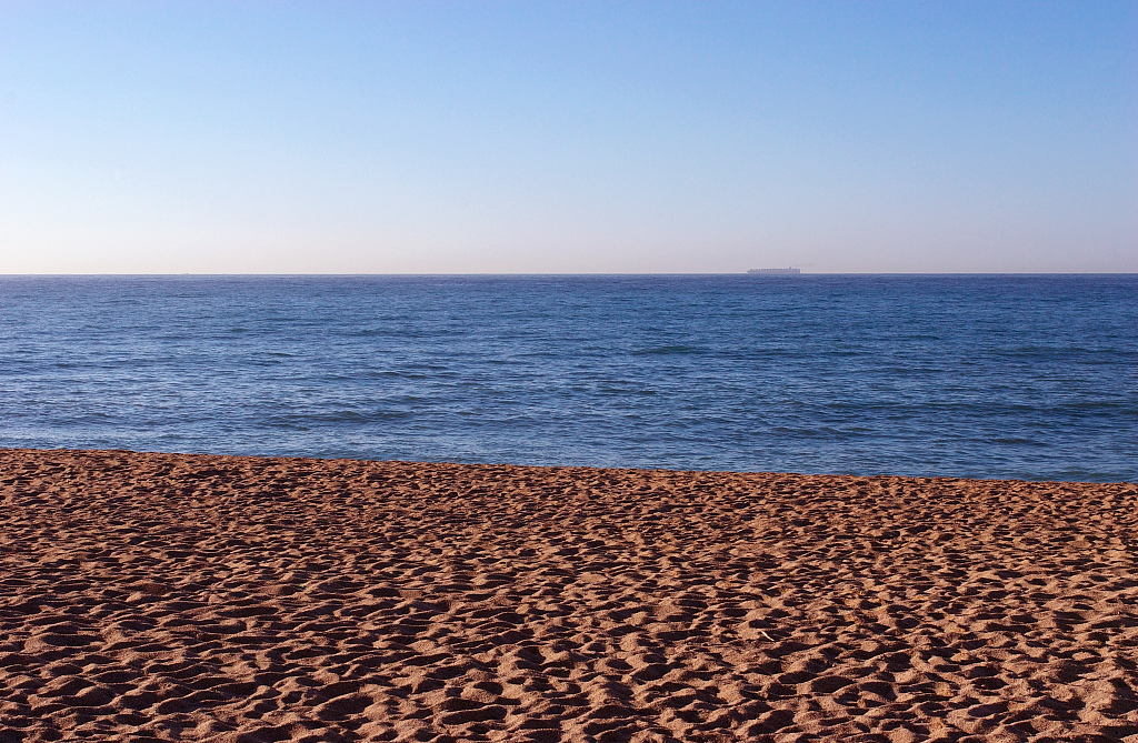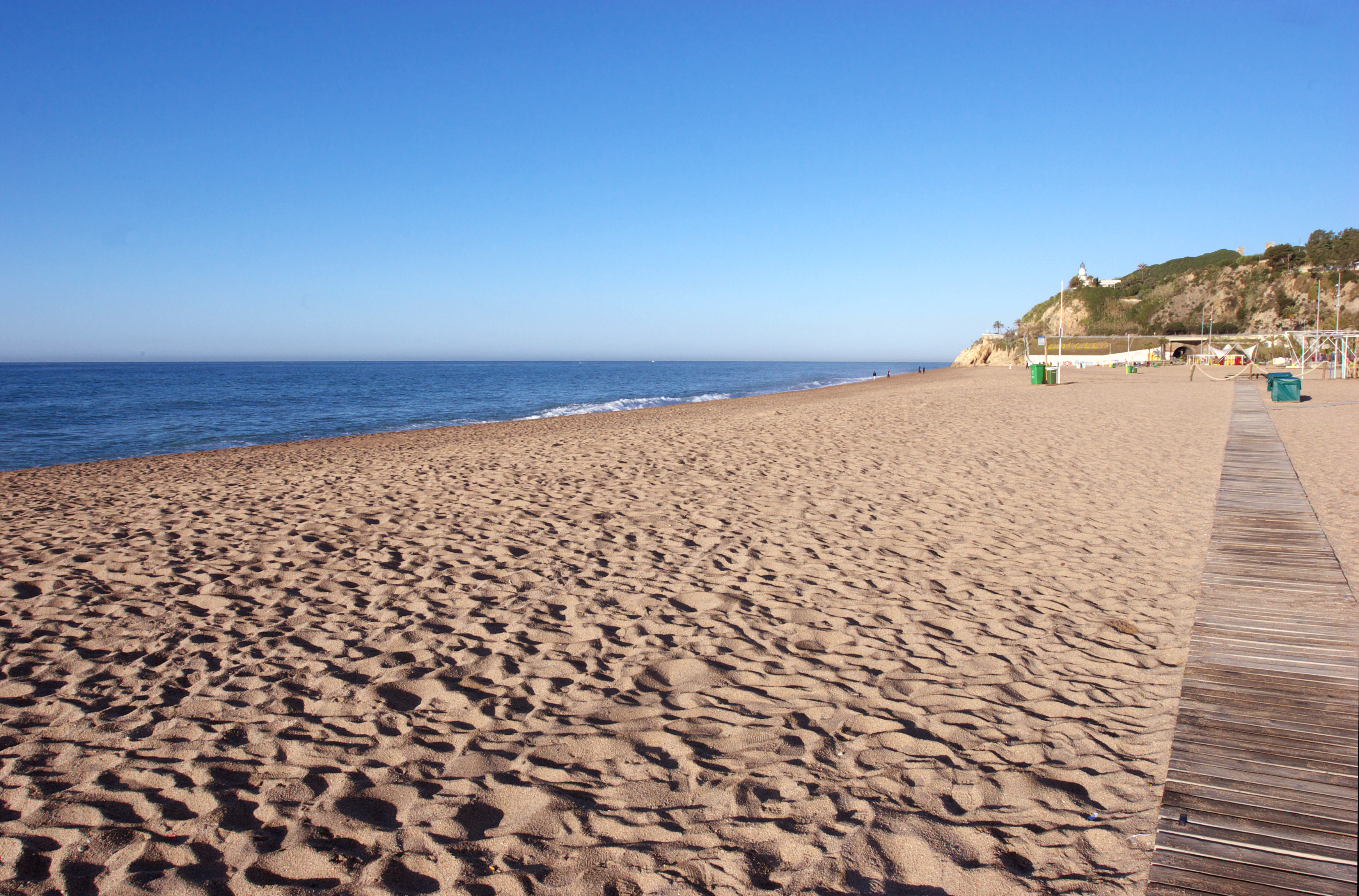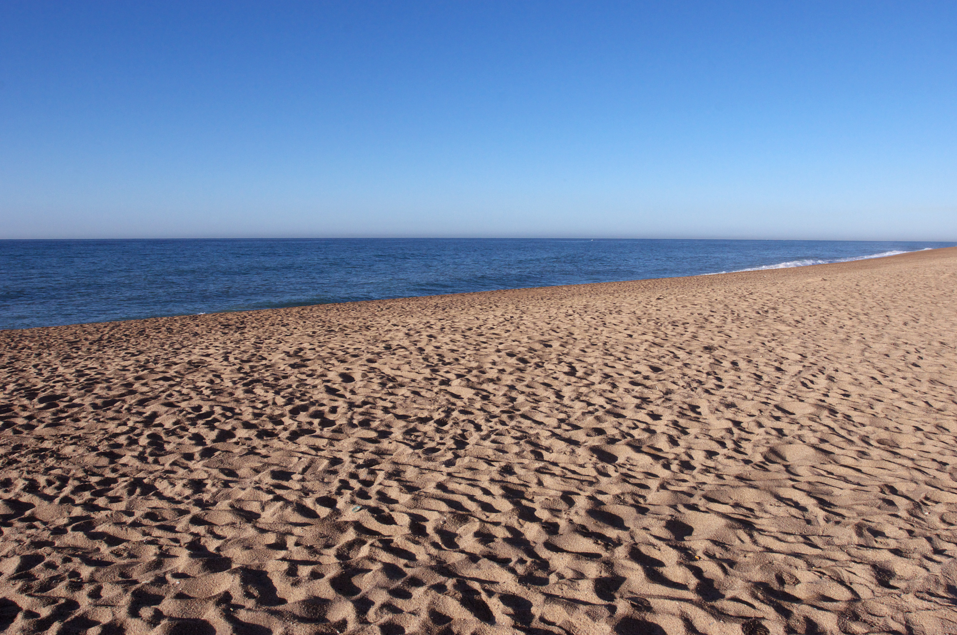 バルセロナ郊外のリゾート地の砂浜です。朝早い時間帯だと砂浜には誰もいません。犬を散歩している人が多いです。