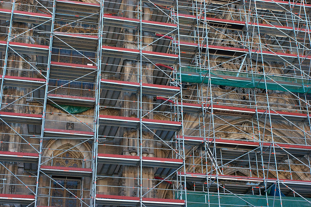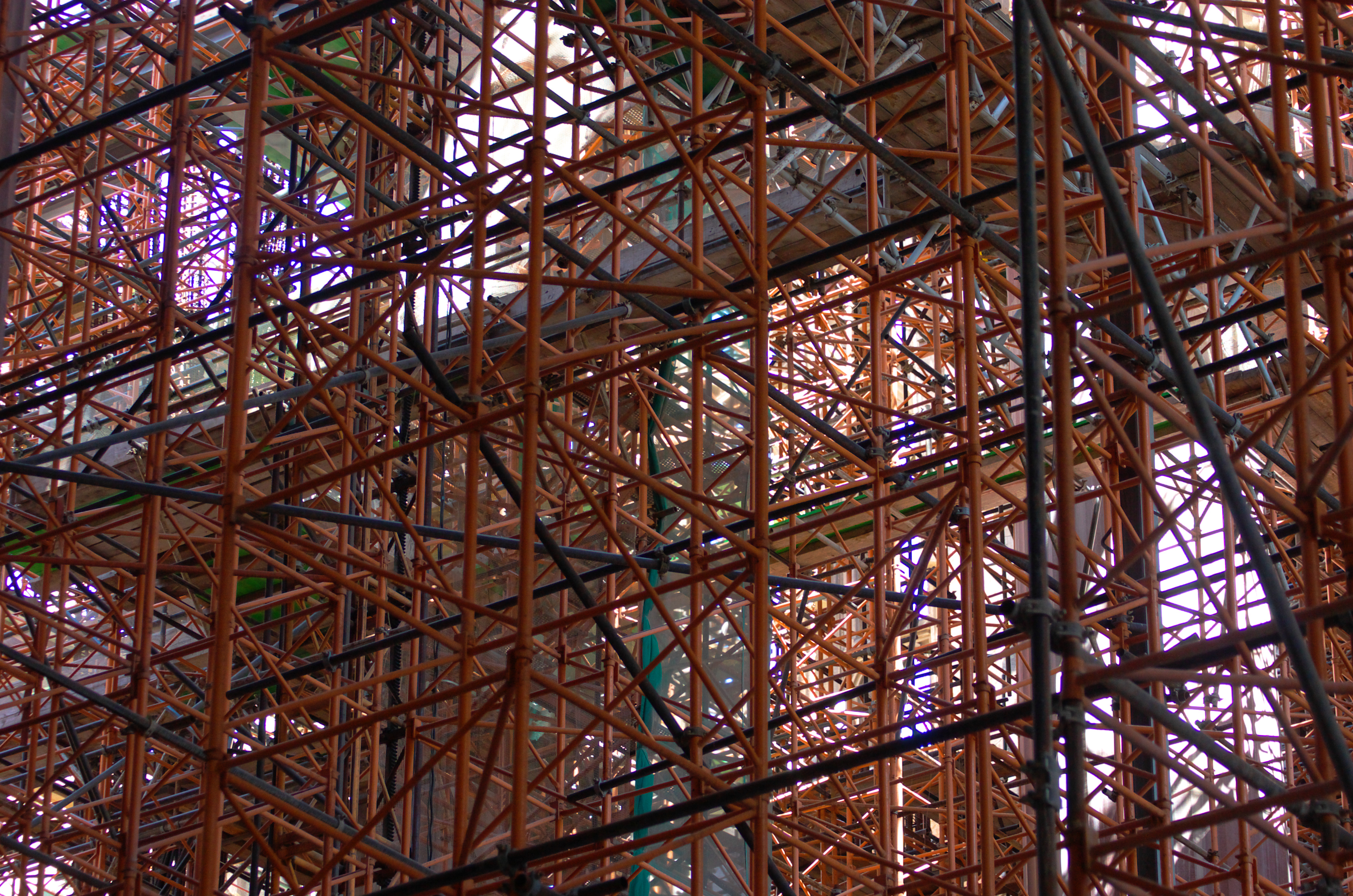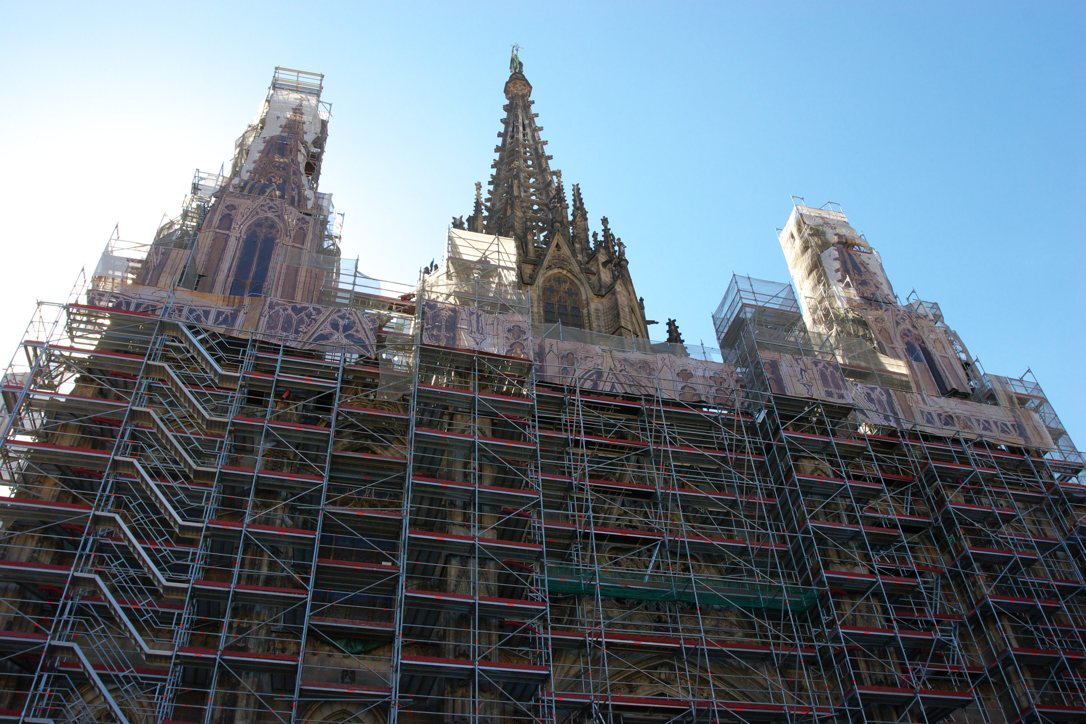 本来は中世の雰囲気漂うカテドラルなのですが、このときは工事中でした。足場の中に囚われているかのようです。